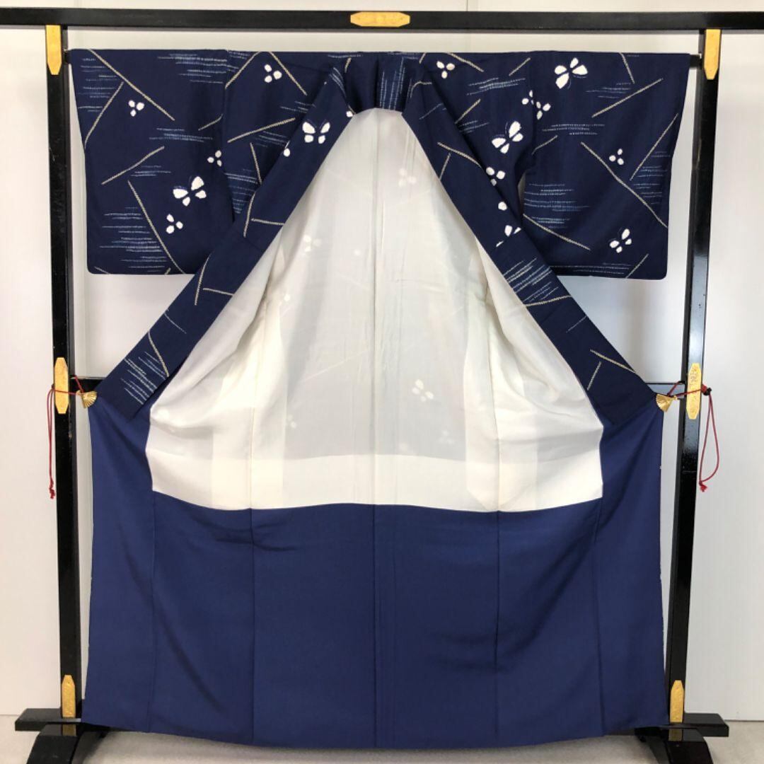 小紋 雰囲気の良い絞り柄 蝶々 紺桔梗色 鈴乃屋お誂え K-5440 着物 きもの kimono 和服 和装 中古 リサイクル着物 【送料無料】
