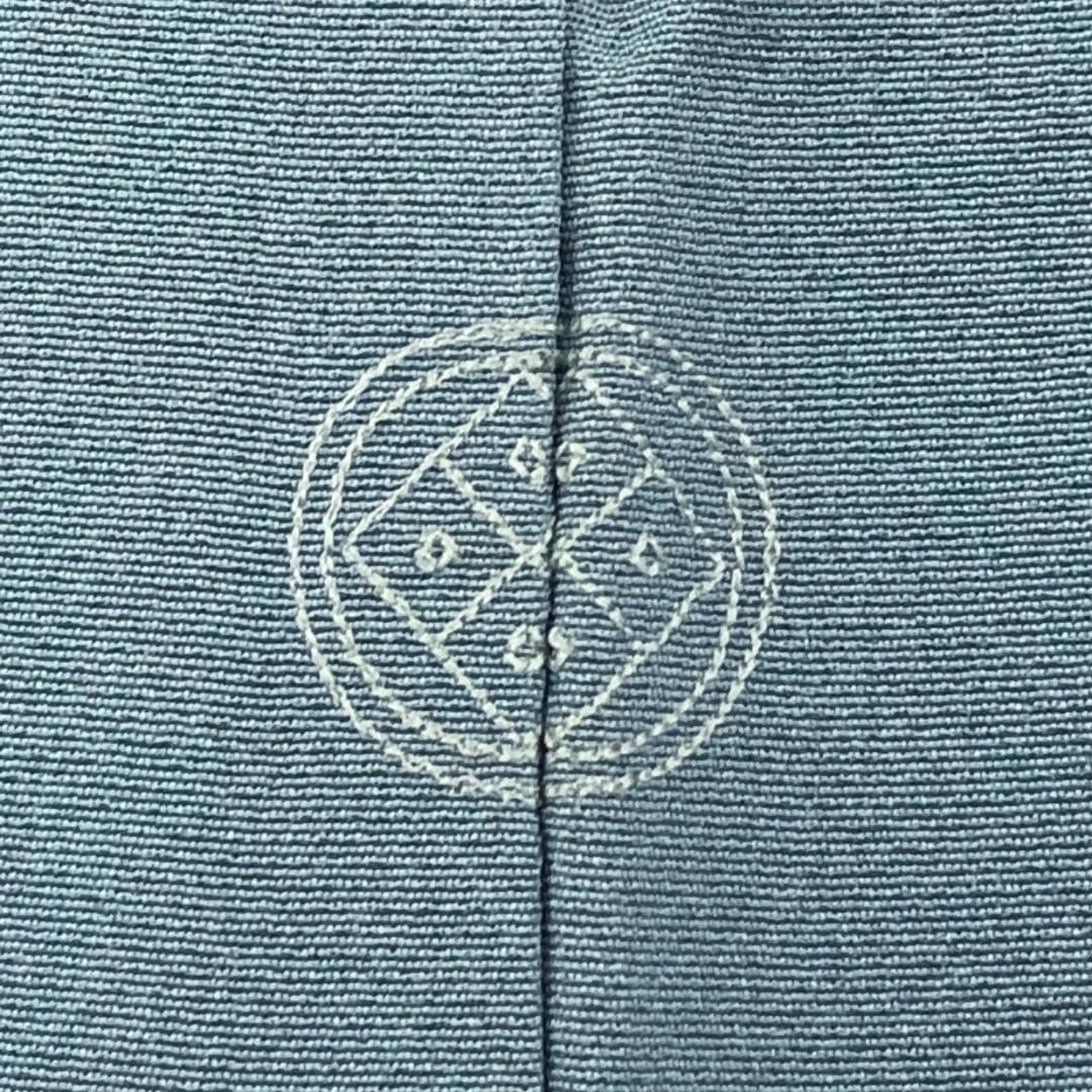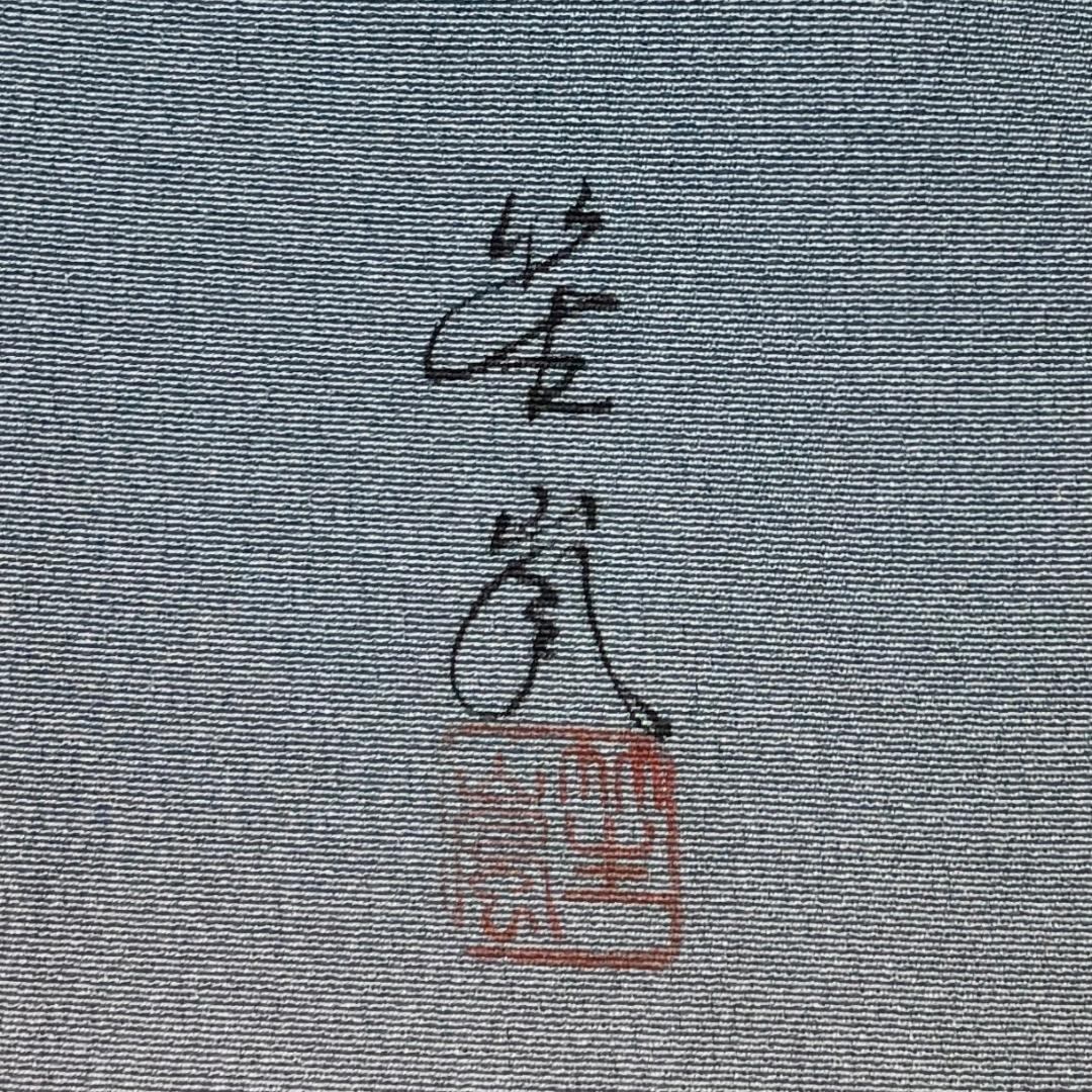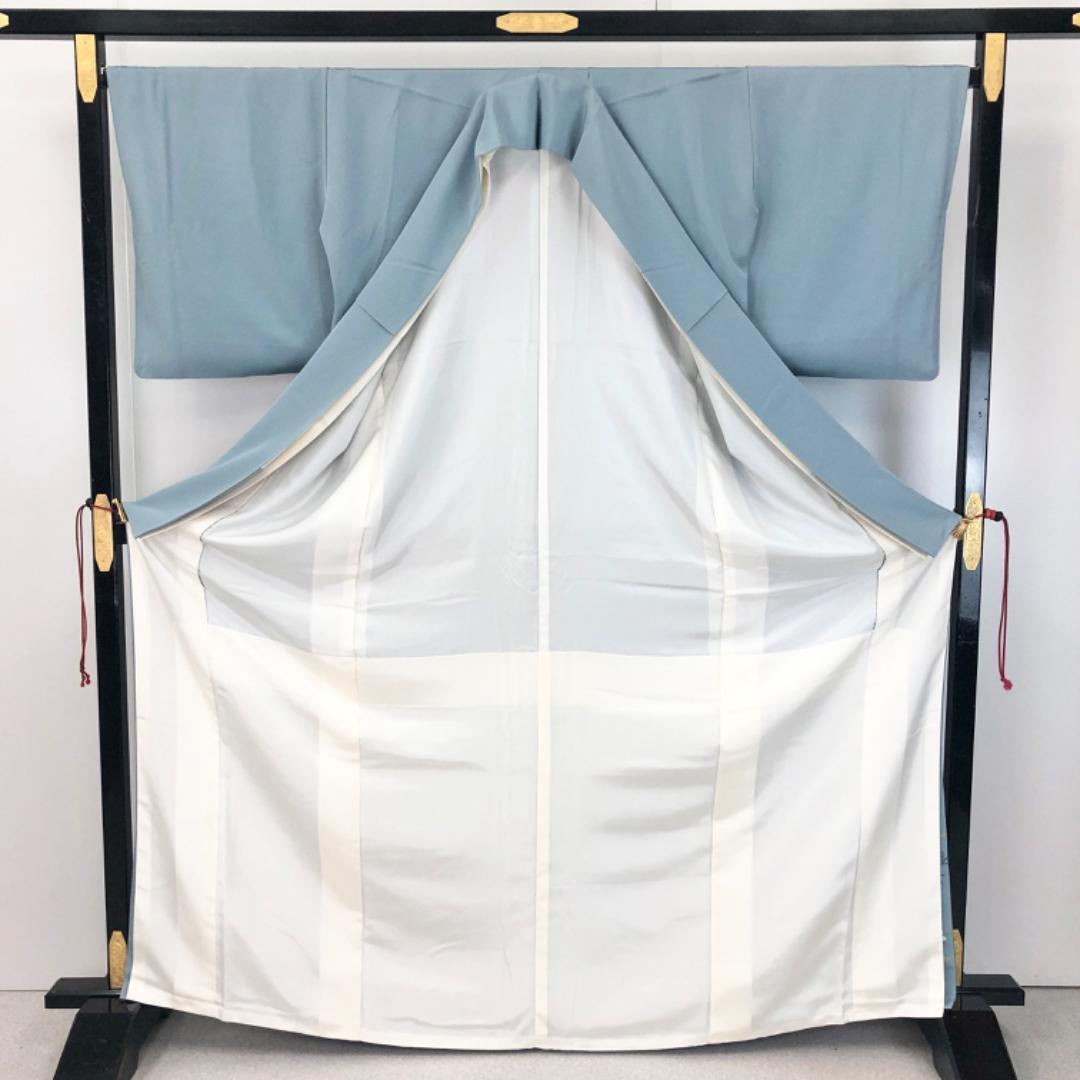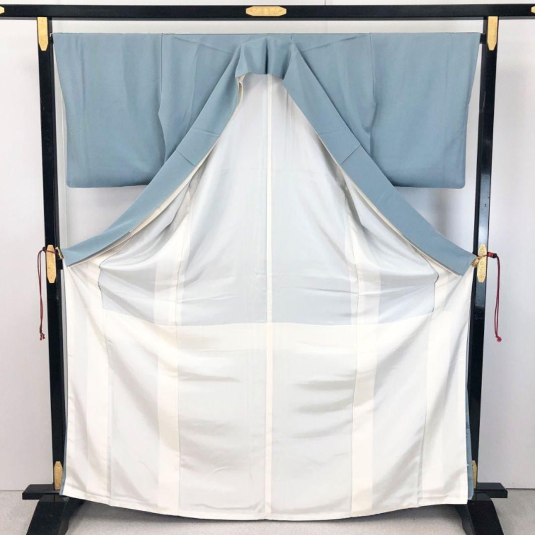 空色鼠の上品なお色味に暈し、扇子に花模様の柄裄がデザインされた雰囲気の良い素敵なお品でございます。
