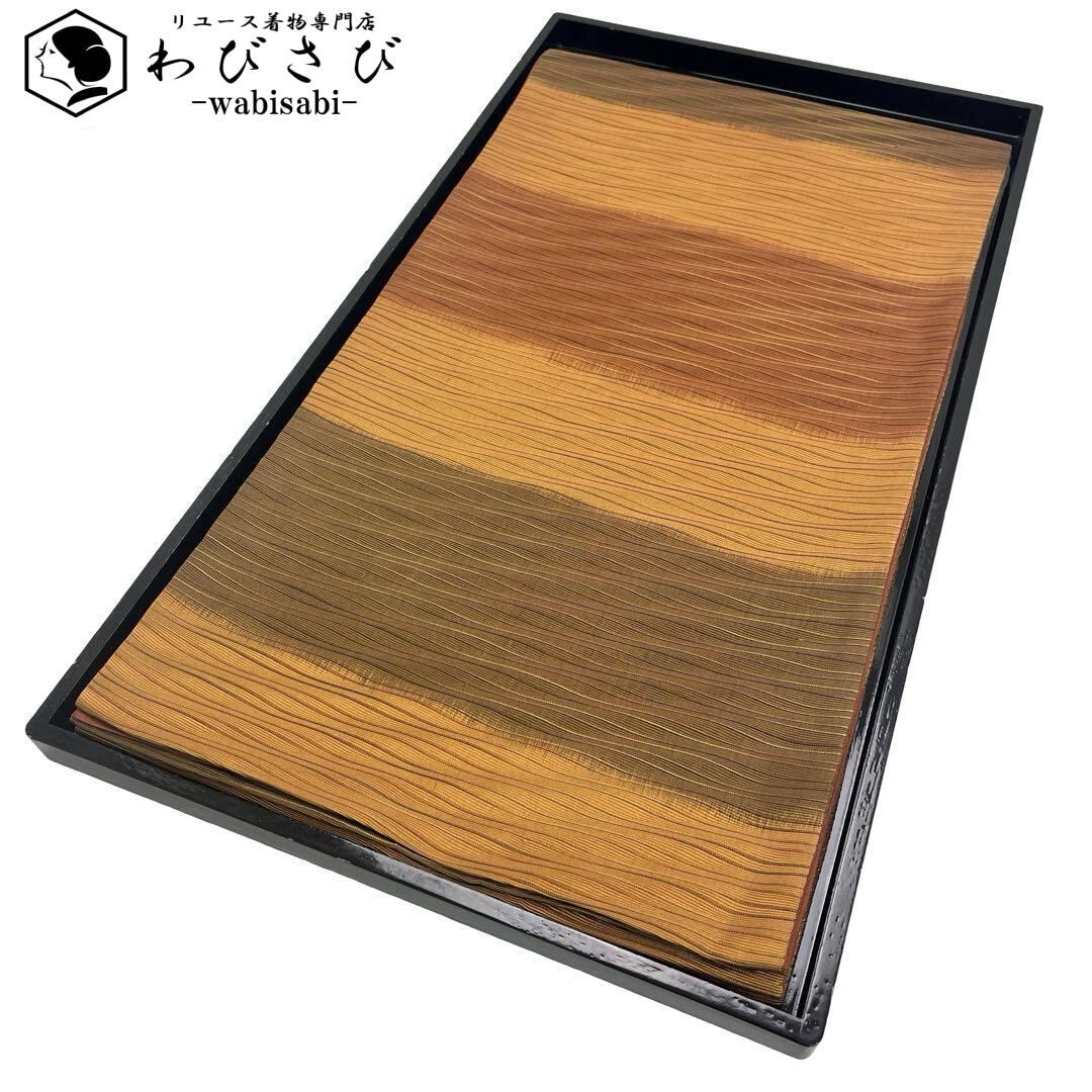 袋帯 横段柄 よれ縞織模様 落ち着きのある色彩 琥珀色 O-4710 着物 きもの kimono 和服 和装 中古 リサイクル着物 【送料無料】