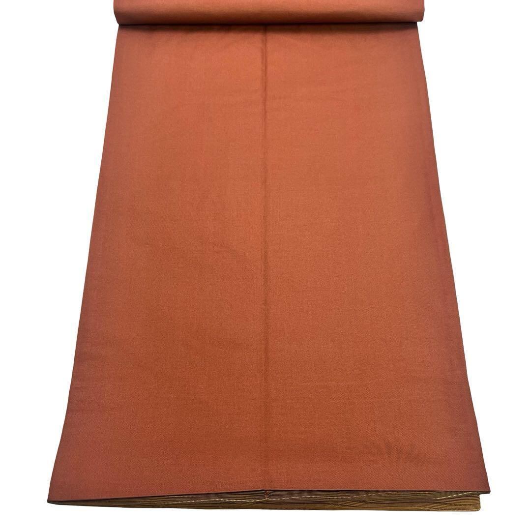 琥珀色ベースの落ち着きのある色彩に横段柄のよれ縞の織模様がデザインされた雰囲気の良い素敵なお品でございます。
