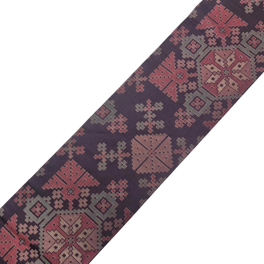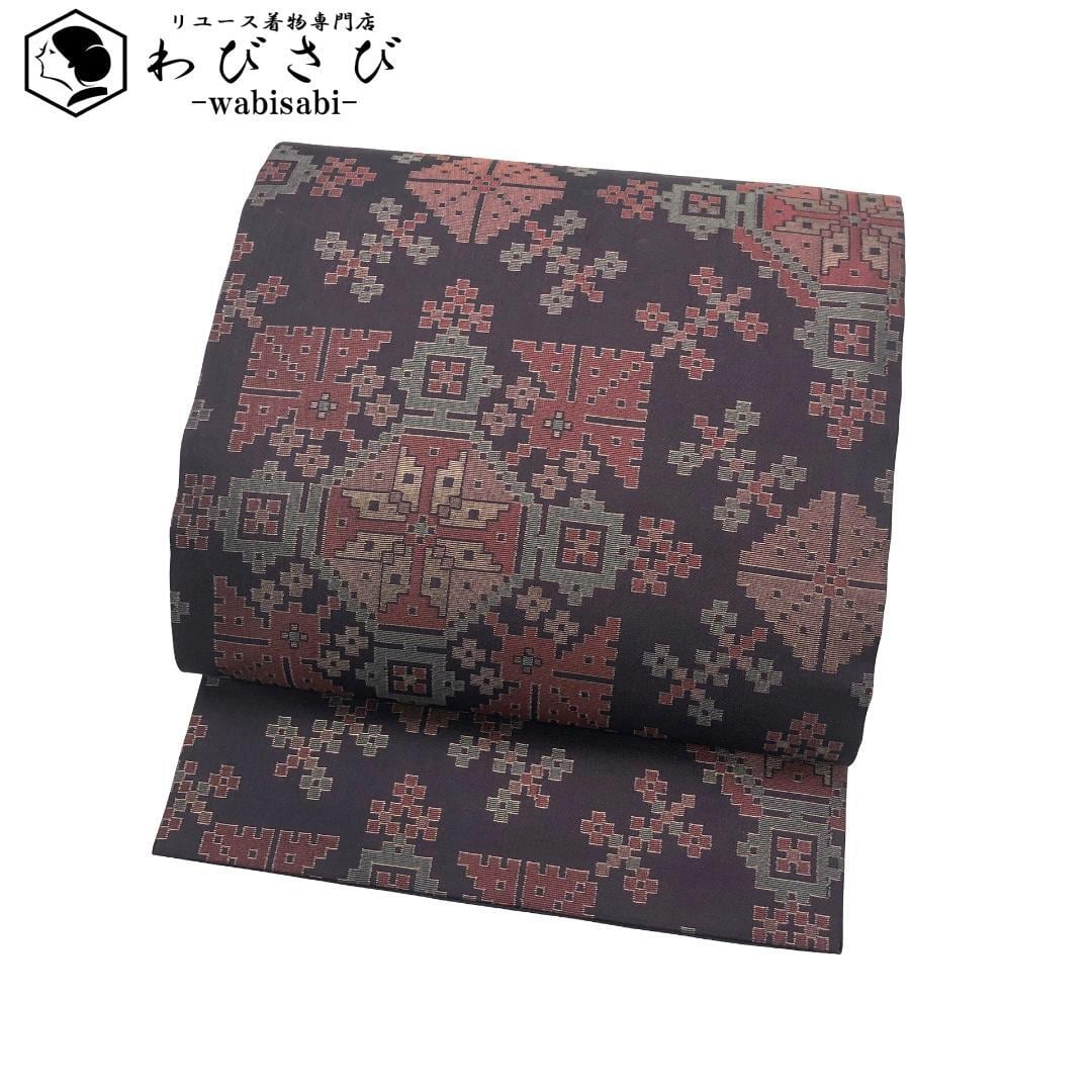 名古屋帯 抽象華模様 総柄 滅紫色 金糸 O-5577 着物 きもの kimono 和服 和装 中古 リサイクル着物 【送料無料】