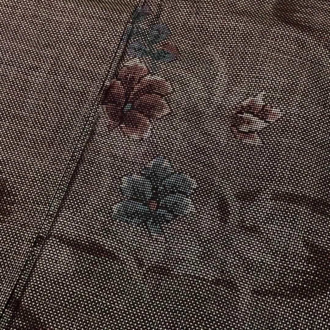 茶泥染の雰囲気の良いお色味に縦横の絣の花模様がデザインされた素敵なお品でございます。
