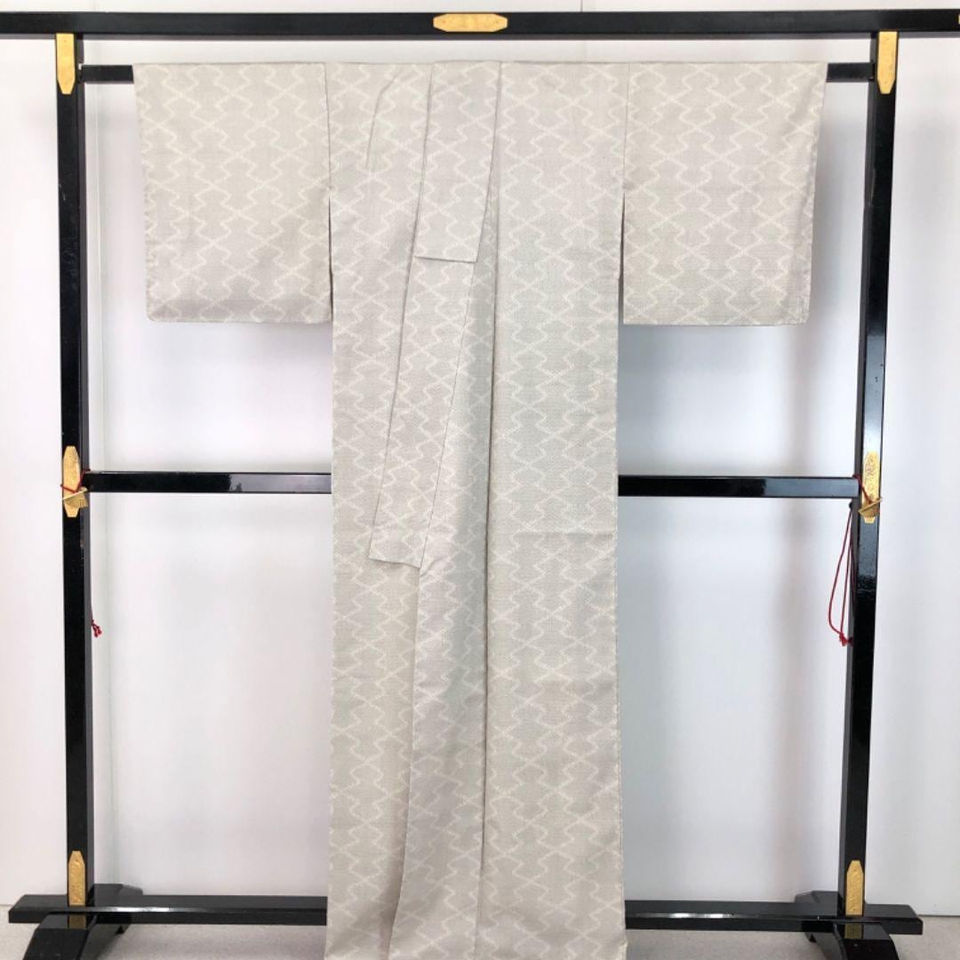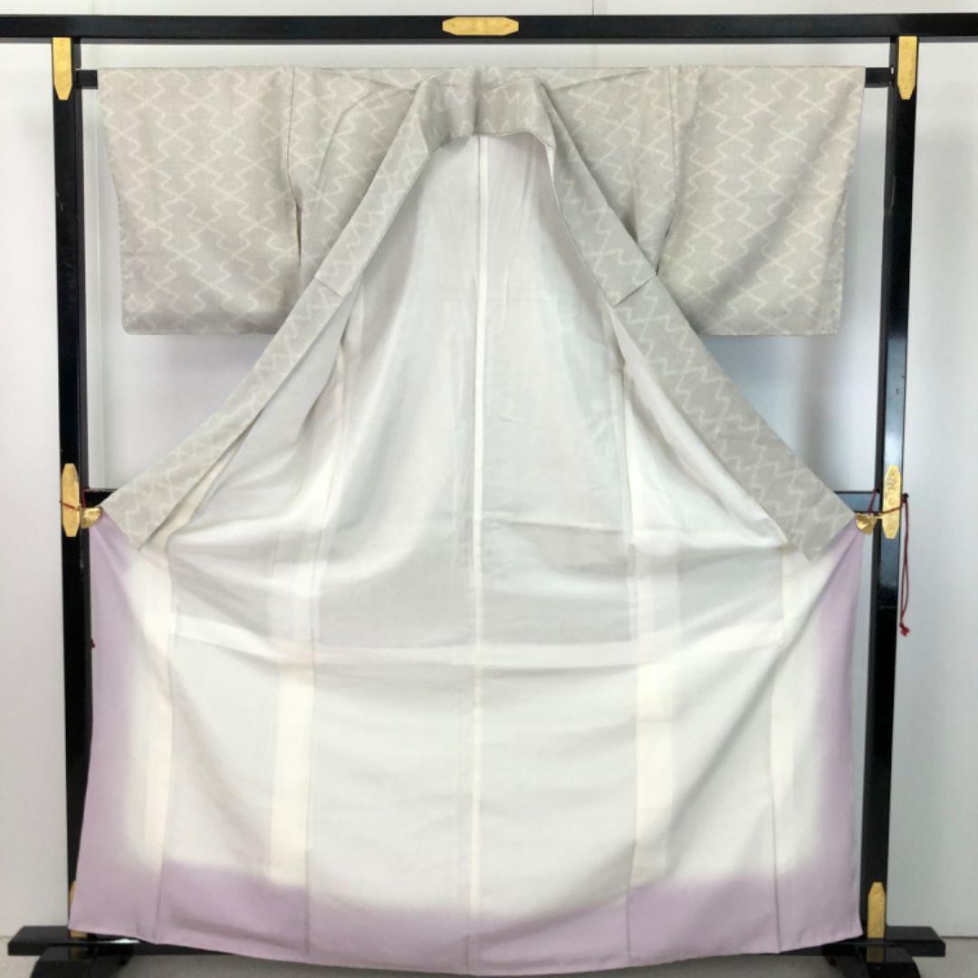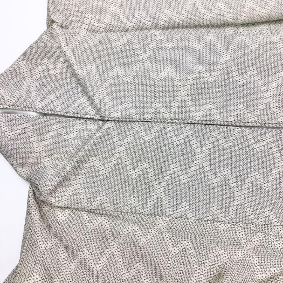 象牙色のお色味に松皮菱、亀甲の柄裄がデザインされた素敵なお品でございます。