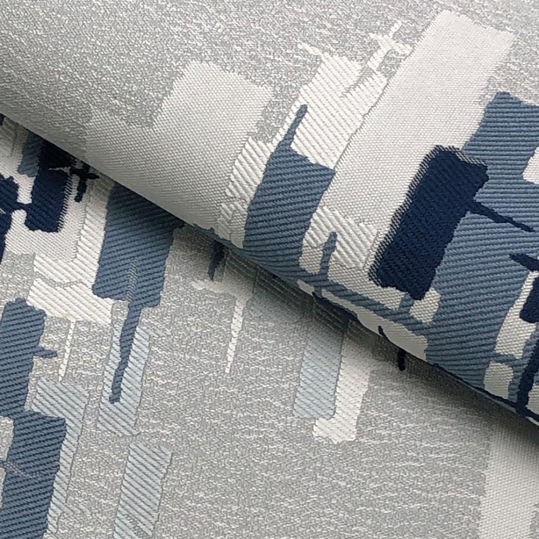 銀白色の上品なお色味に四角柄の藍染の柄行がデザインされた雰囲気の良い素敵なお品でございます。