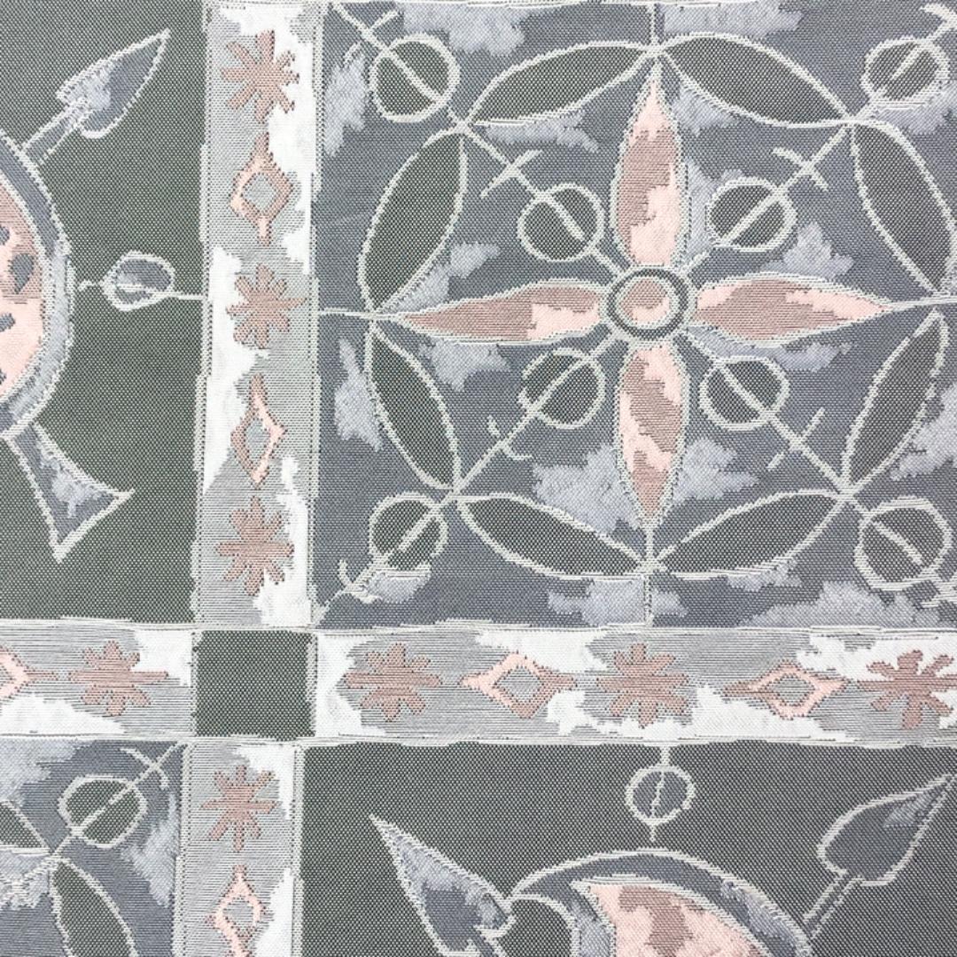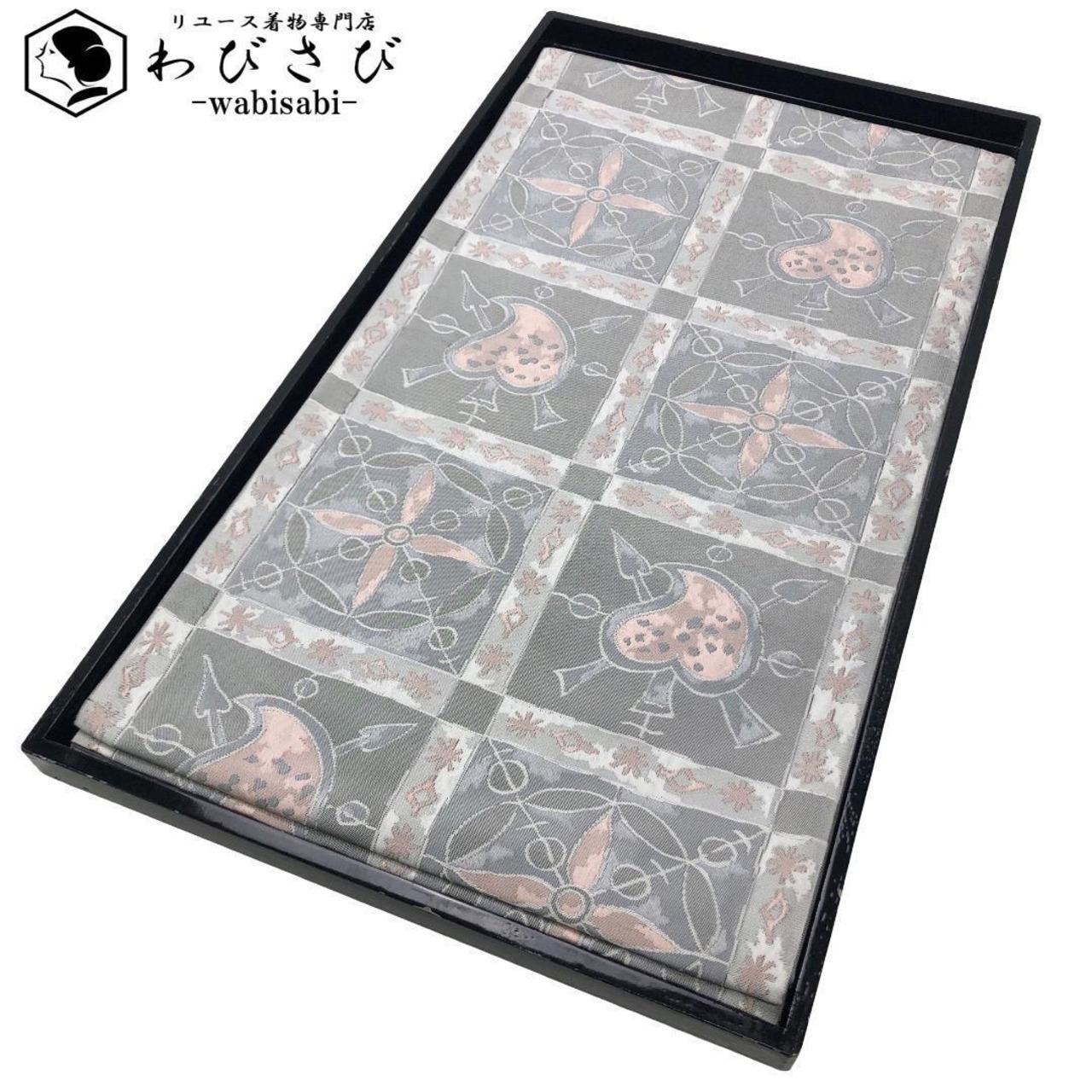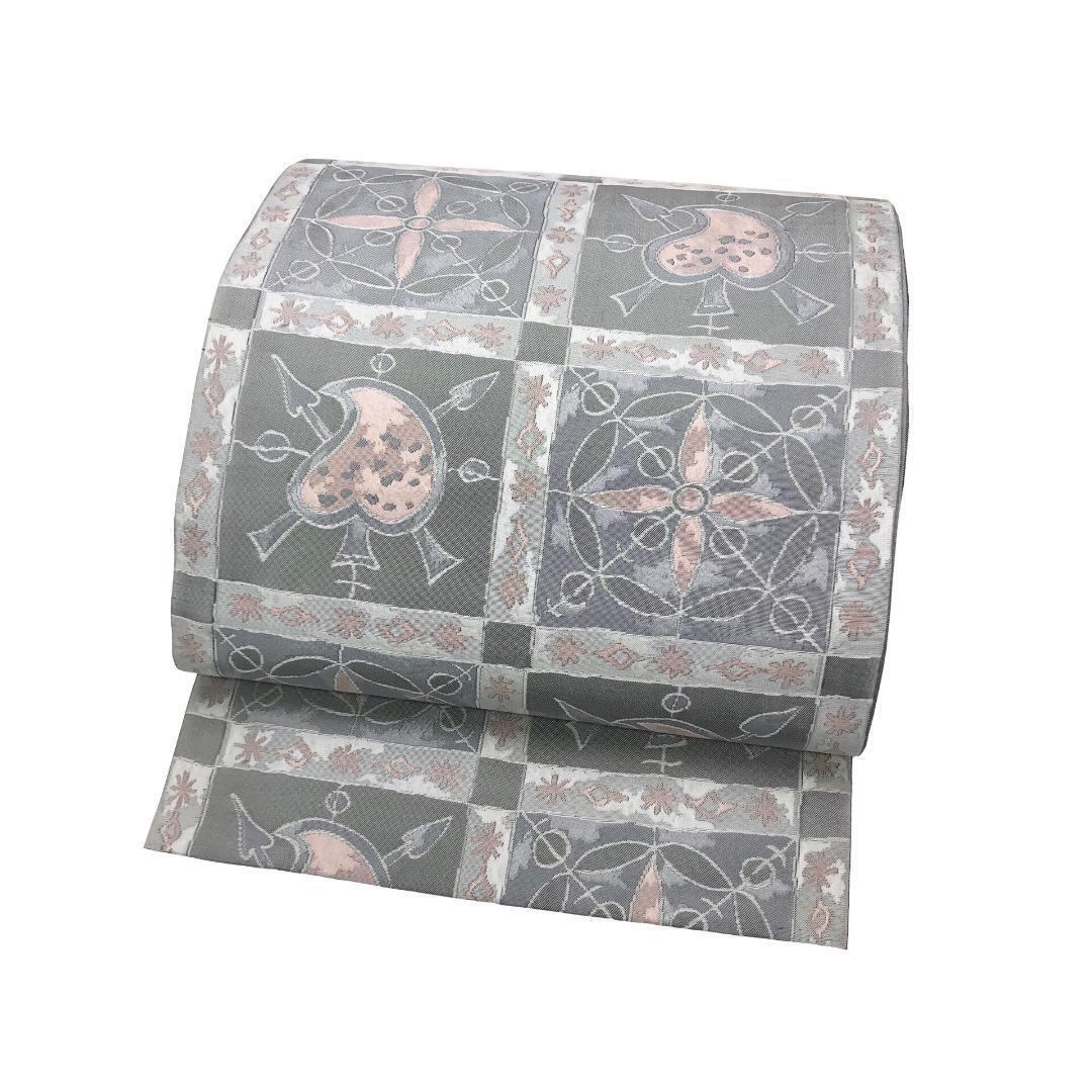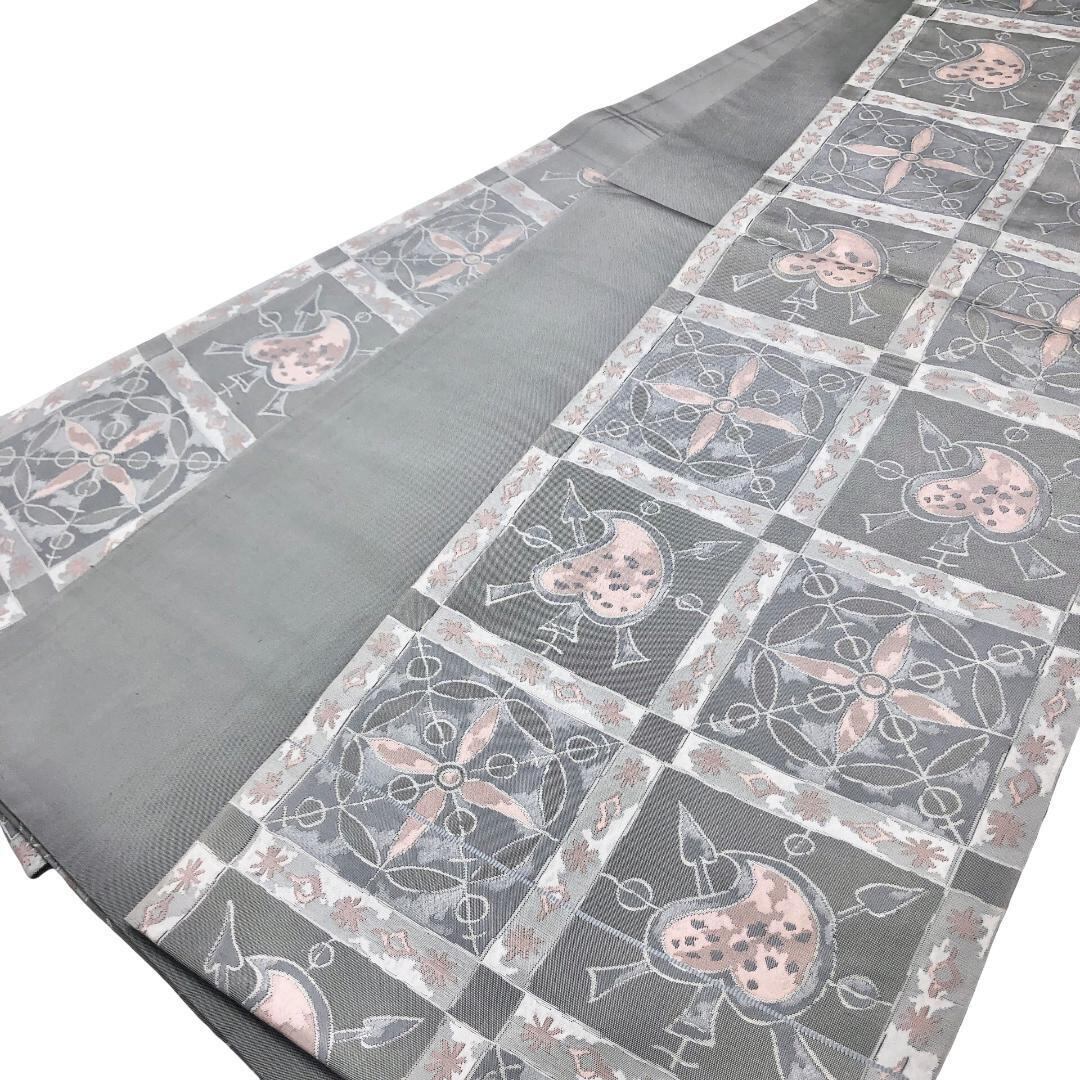 灰色ベースのお色味にスペードのような抽象柄がデザインされた素敵な柄裄のお品でございます。