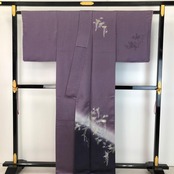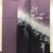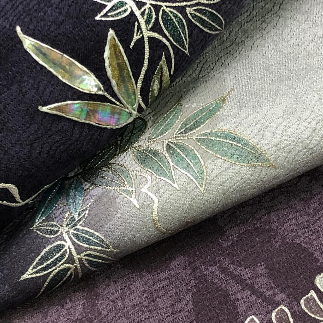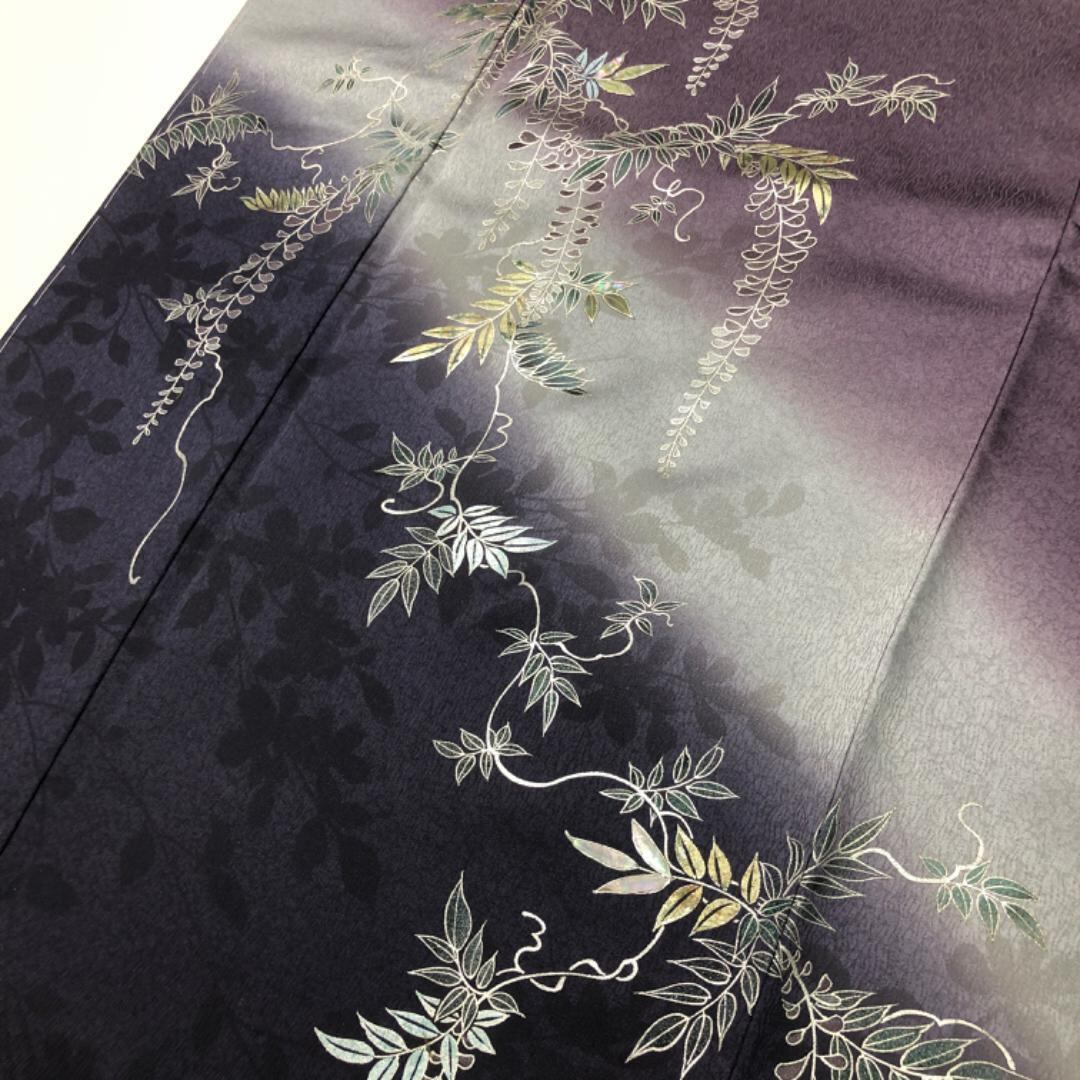 中紫色ベースのお色味に暈し、螺鈿、金彩が使われた藤の花模様がデザインされた雰囲気の良い素敵なお品でございます。