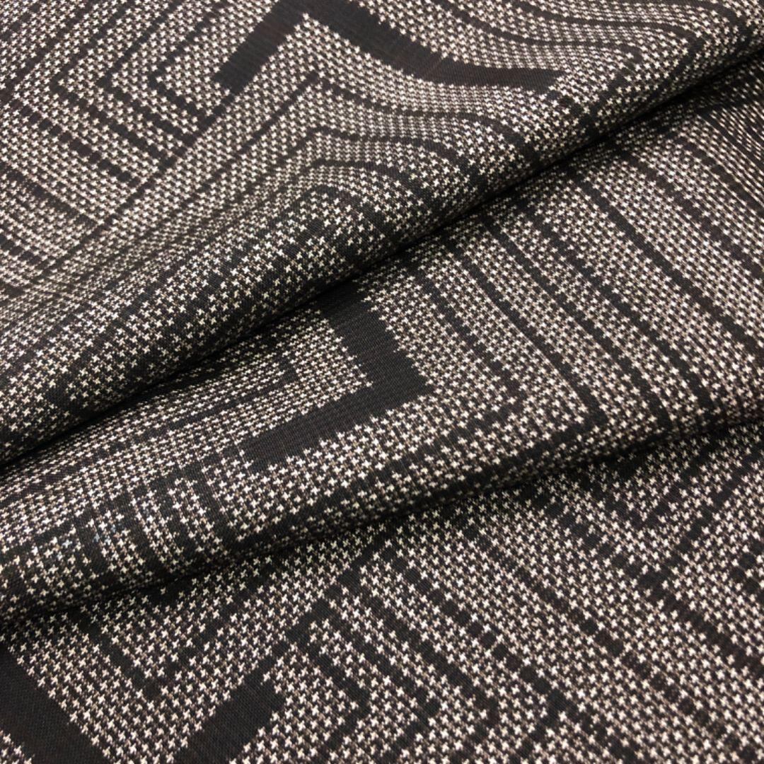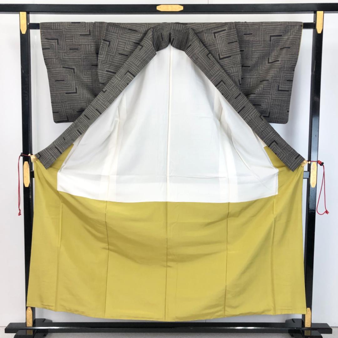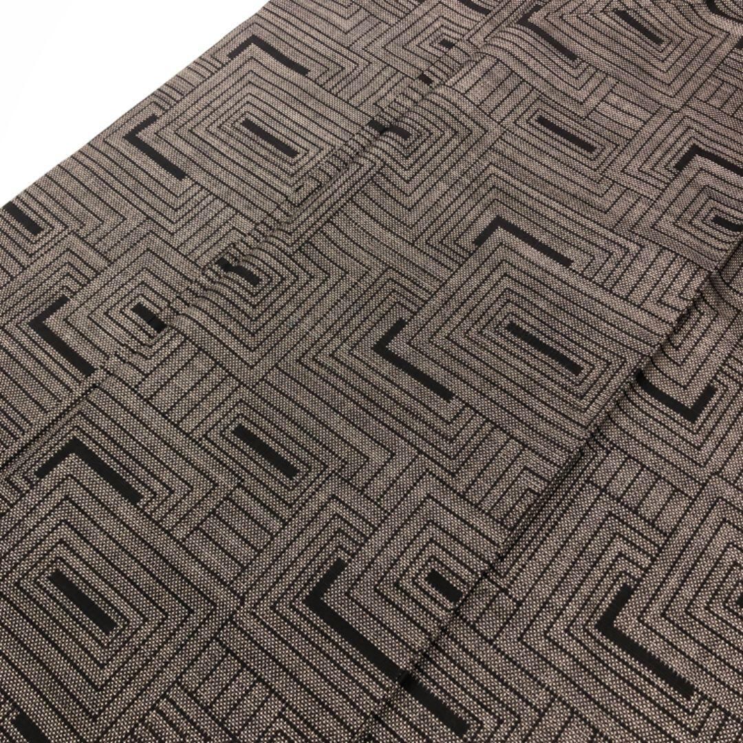 茶泥染の焦茶色のお色味、縦横の四角模様の絣柄がデザインされた雰囲気の良い素敵なお品でございます。