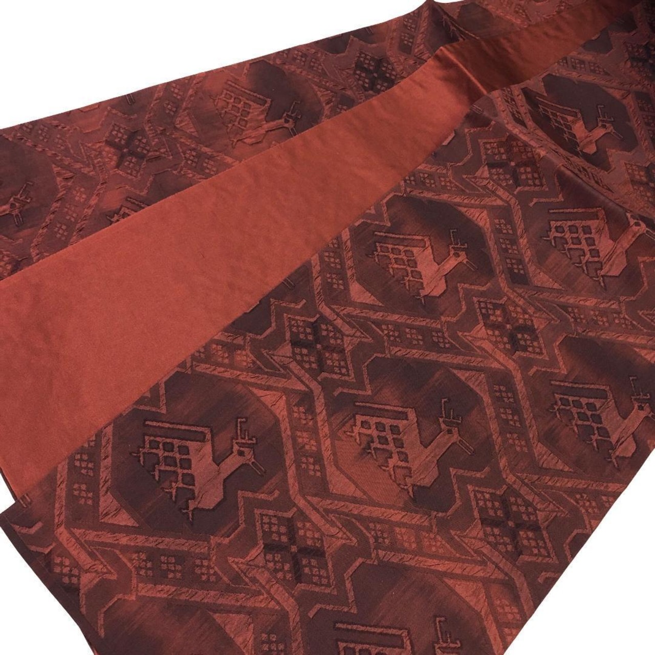朱殷色ベースの落ち着きのあるお色味に有栖川がデザインされた素敵なお品でございます。