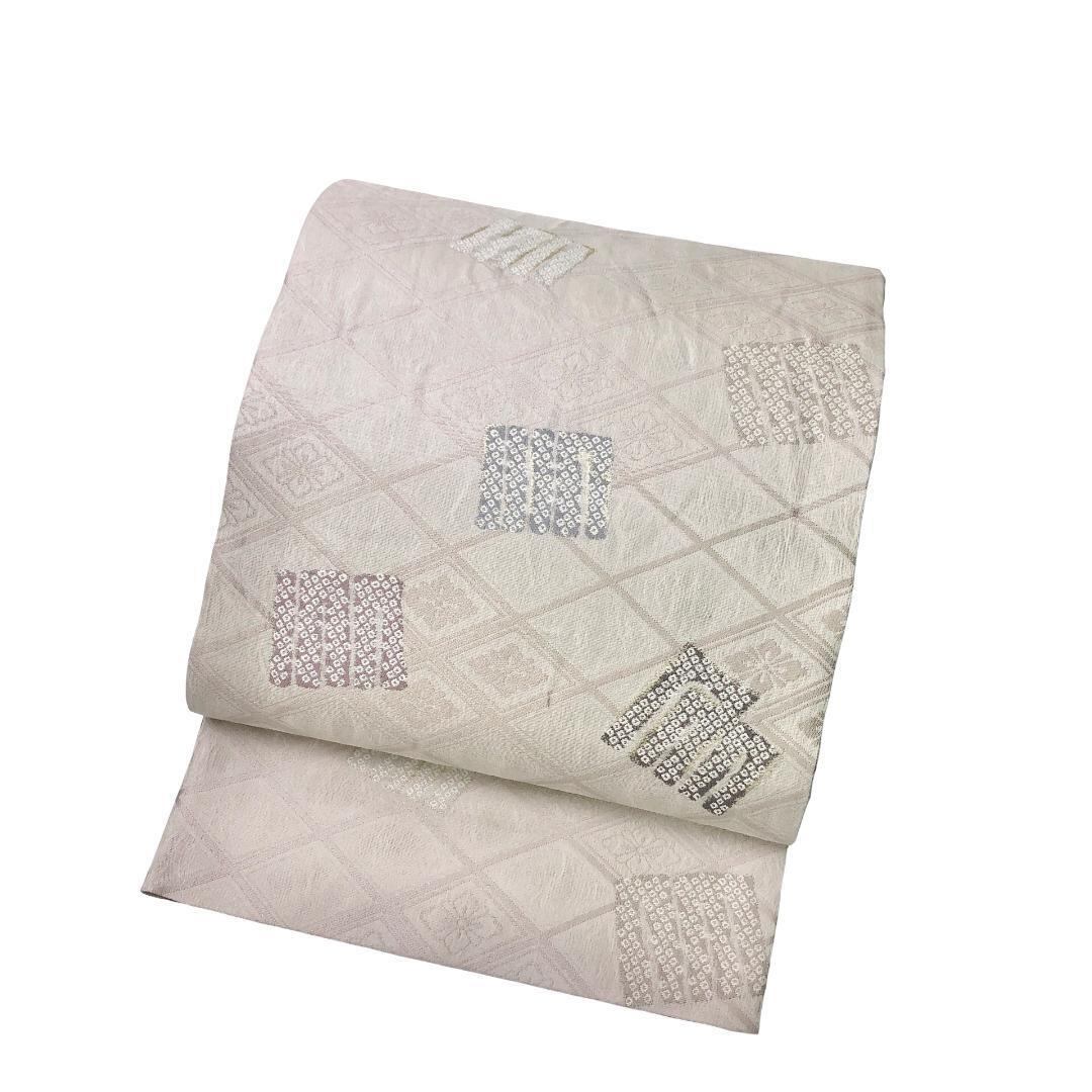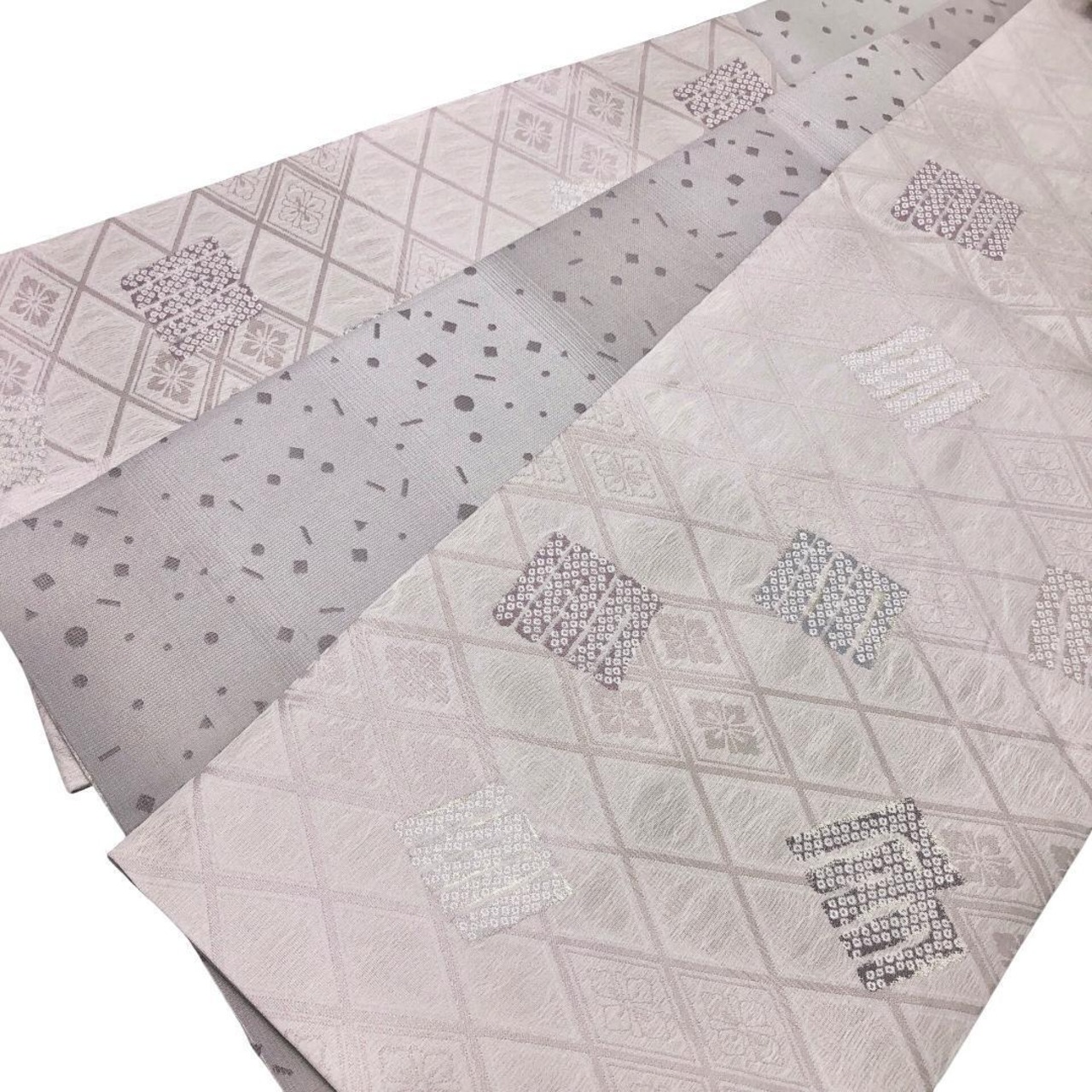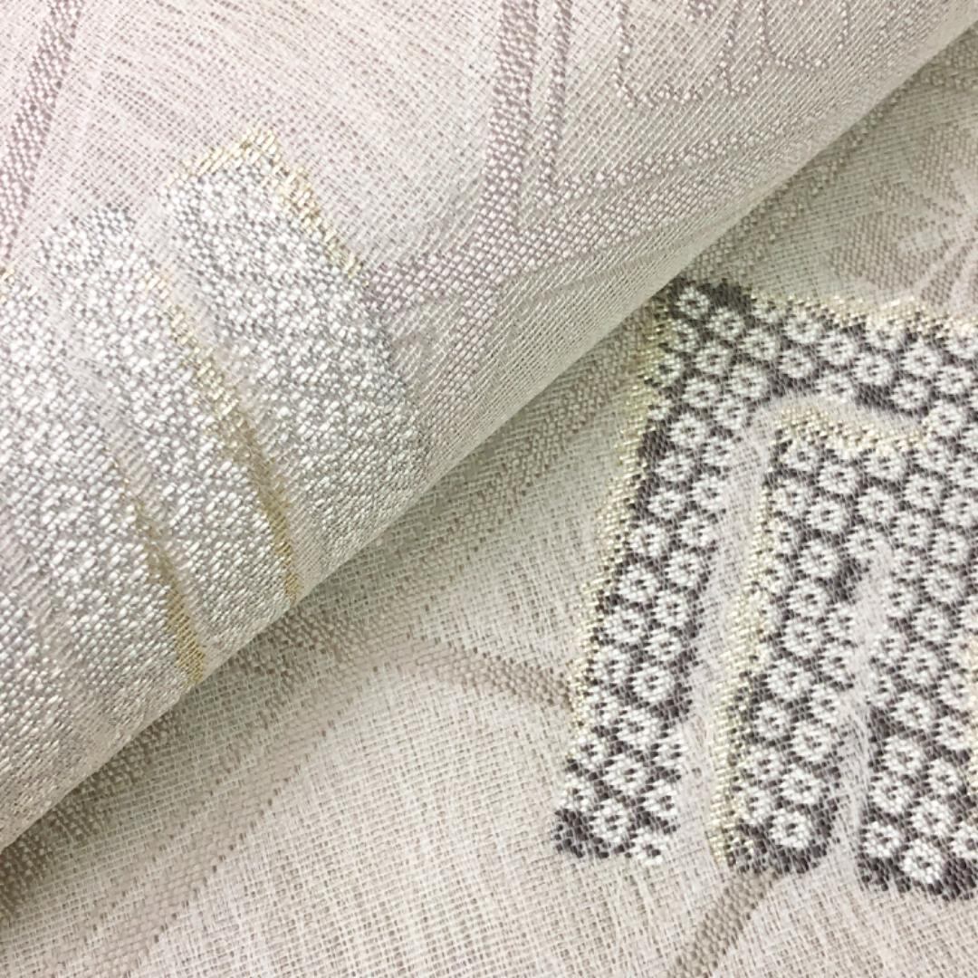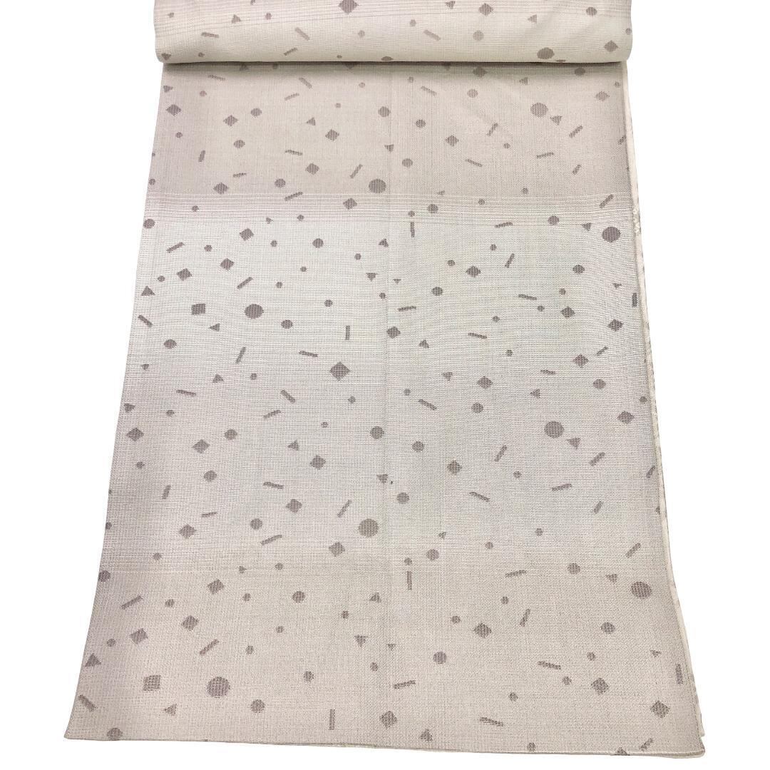 白茶色ベースの上品なお色味、花菱、源氏香の柄裄がデザインされた雰囲気の良い素敵なお品でございます。
