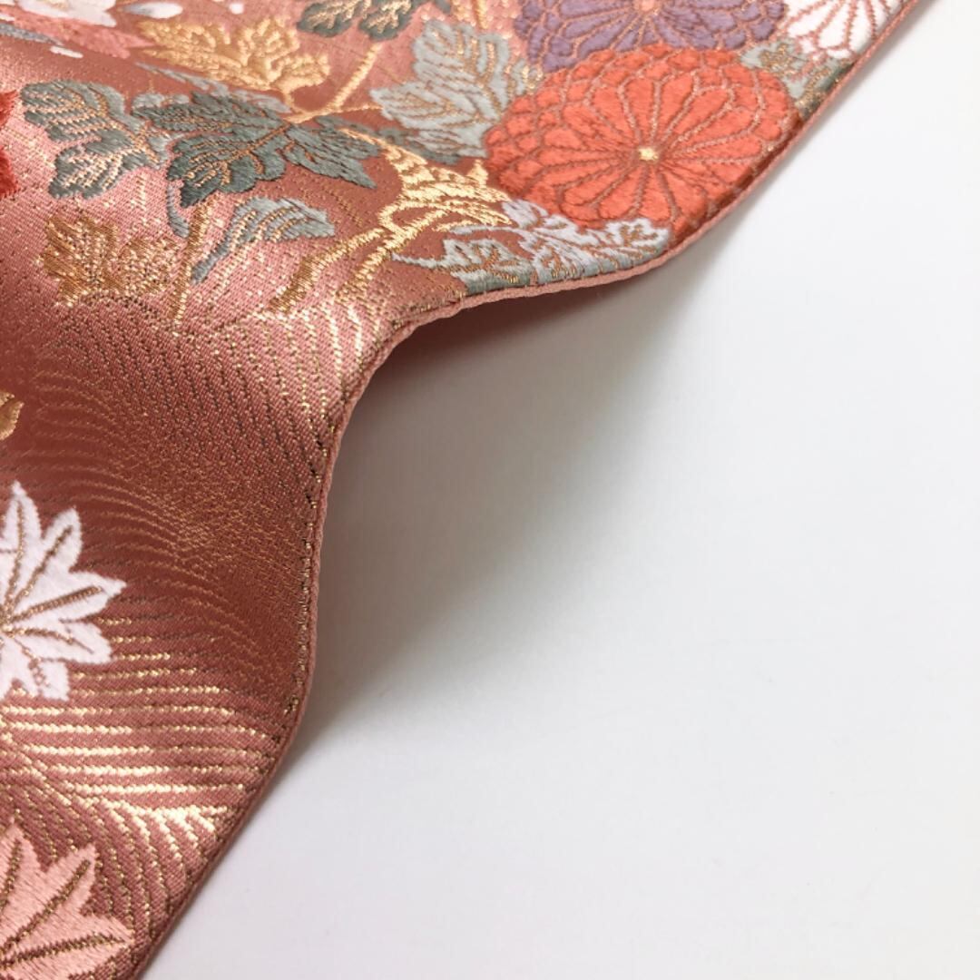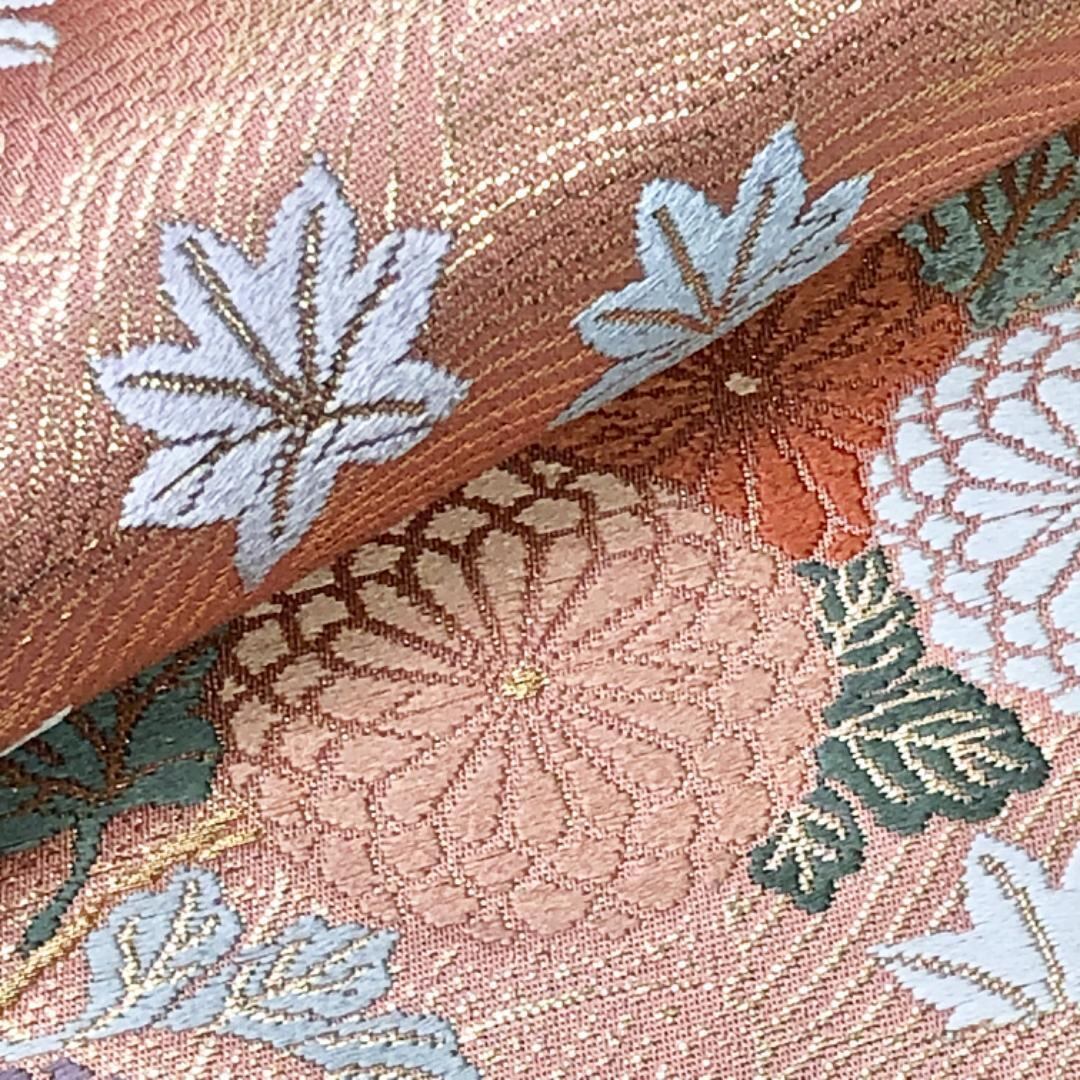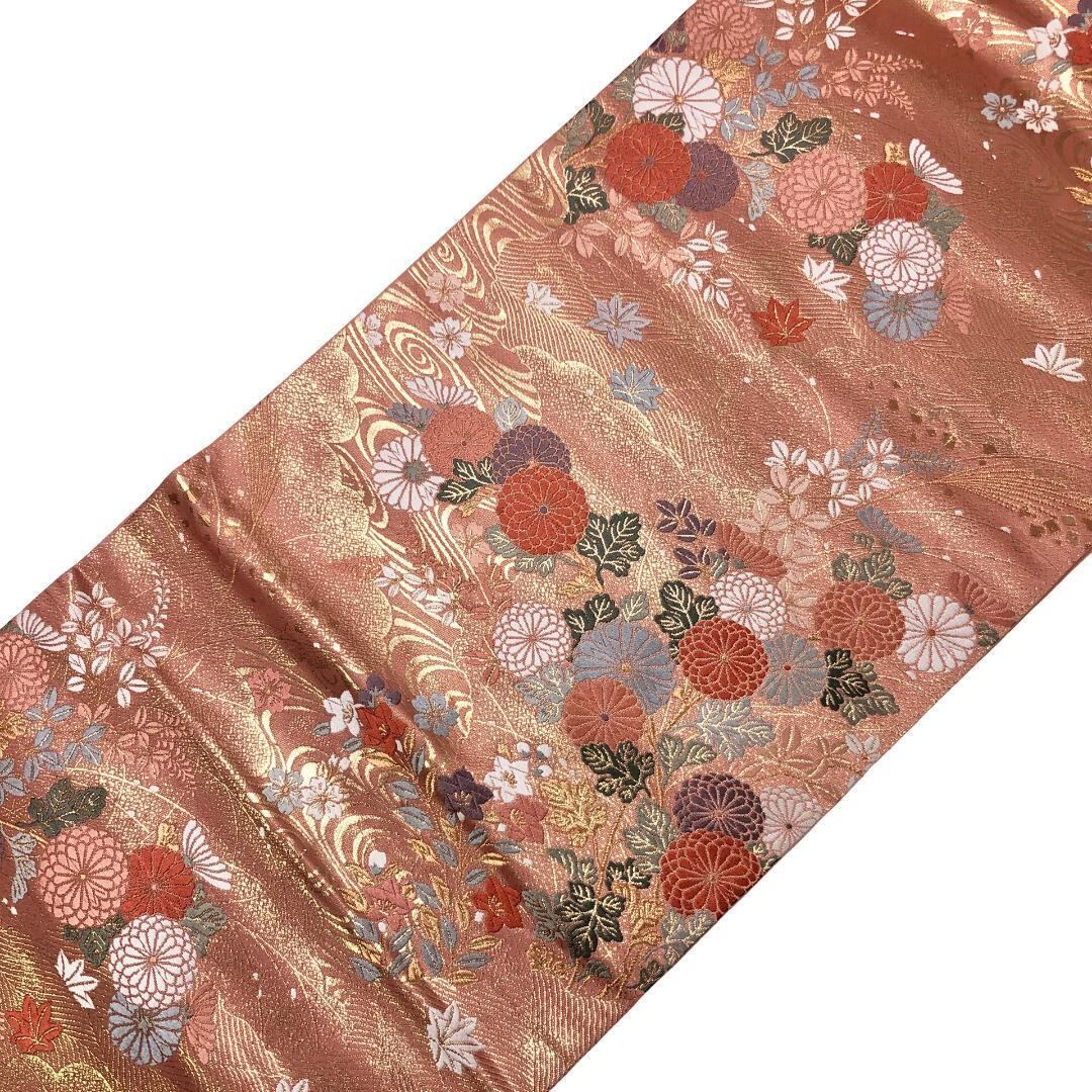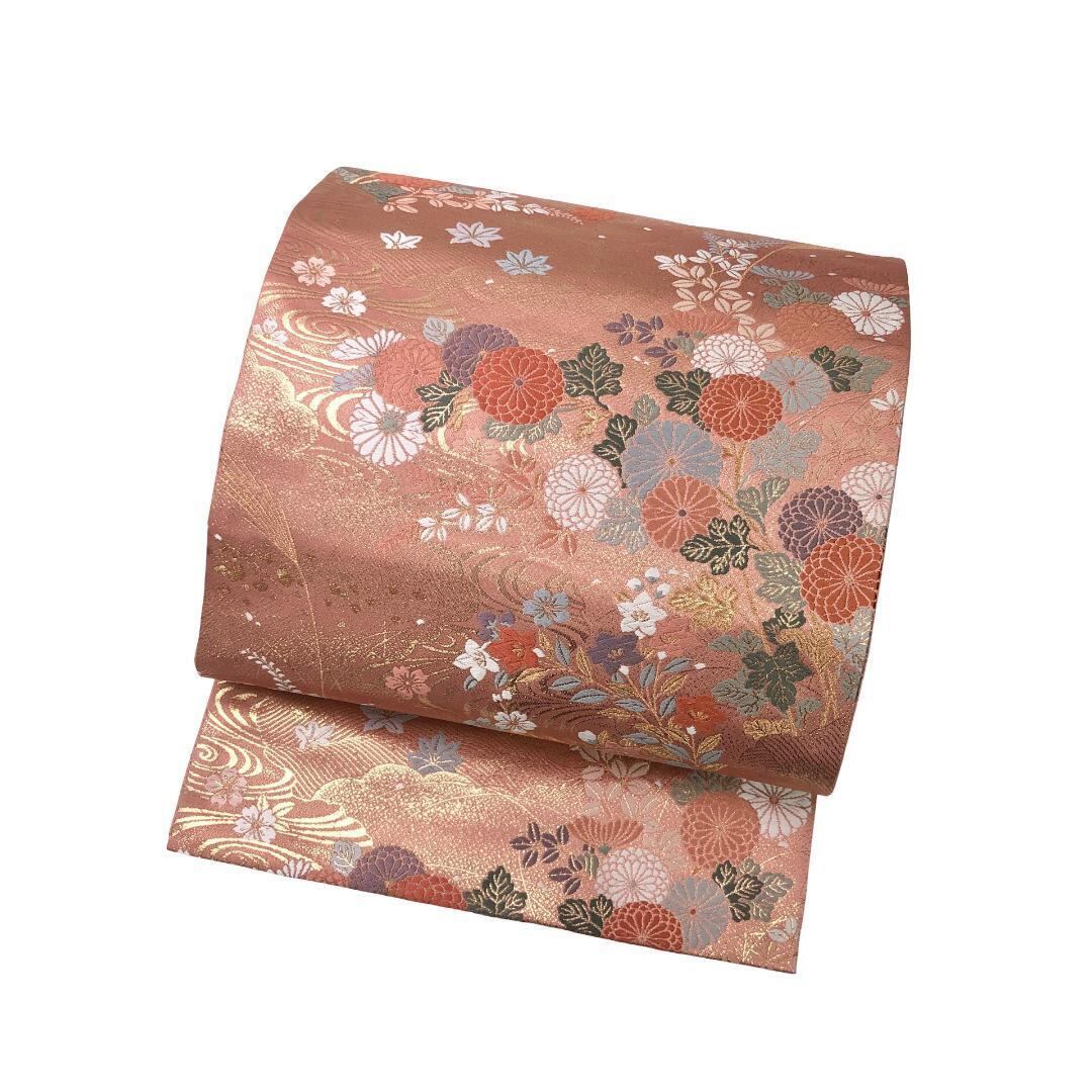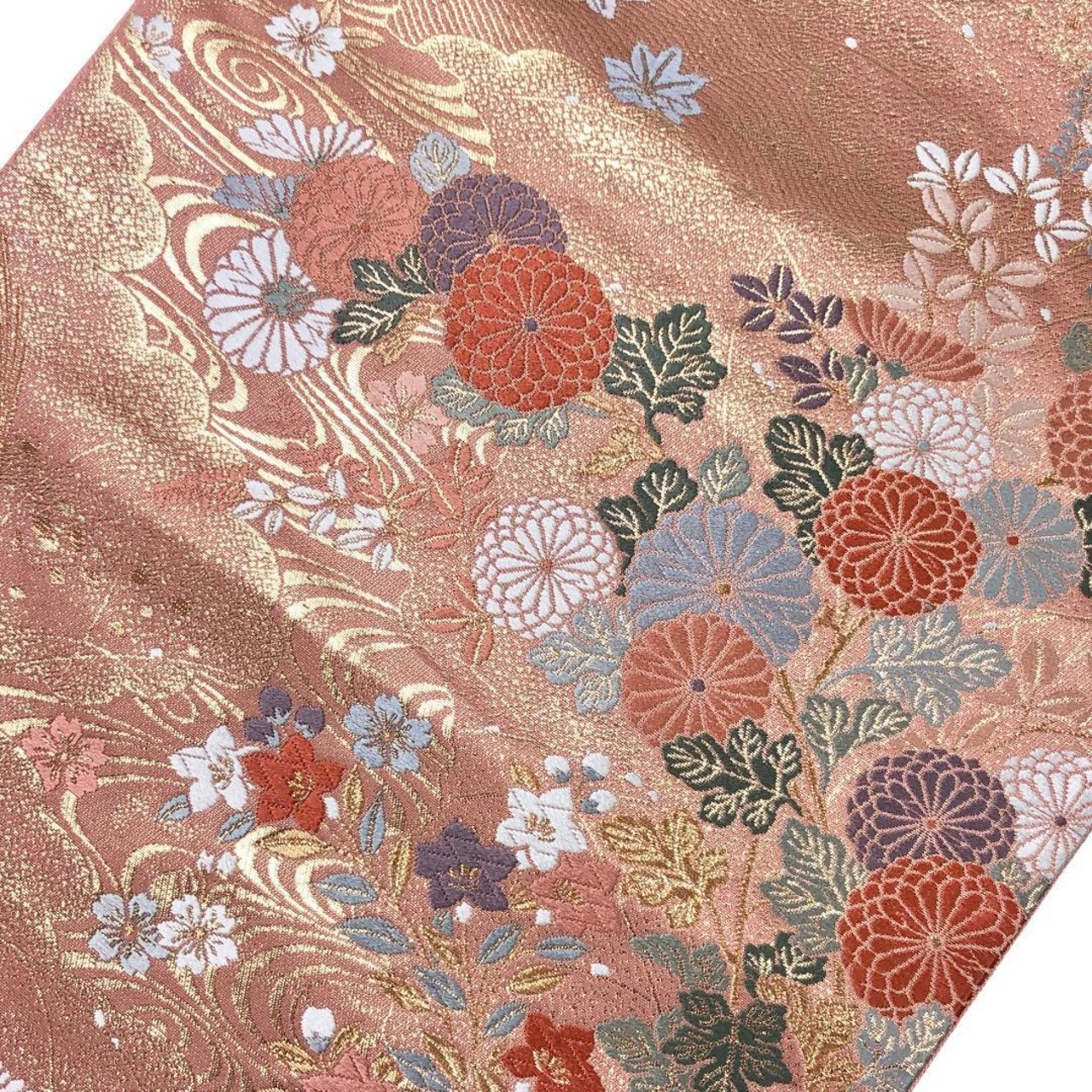桃染色のお色味に流水に花模様がデザインされた素敵なお品でございます。