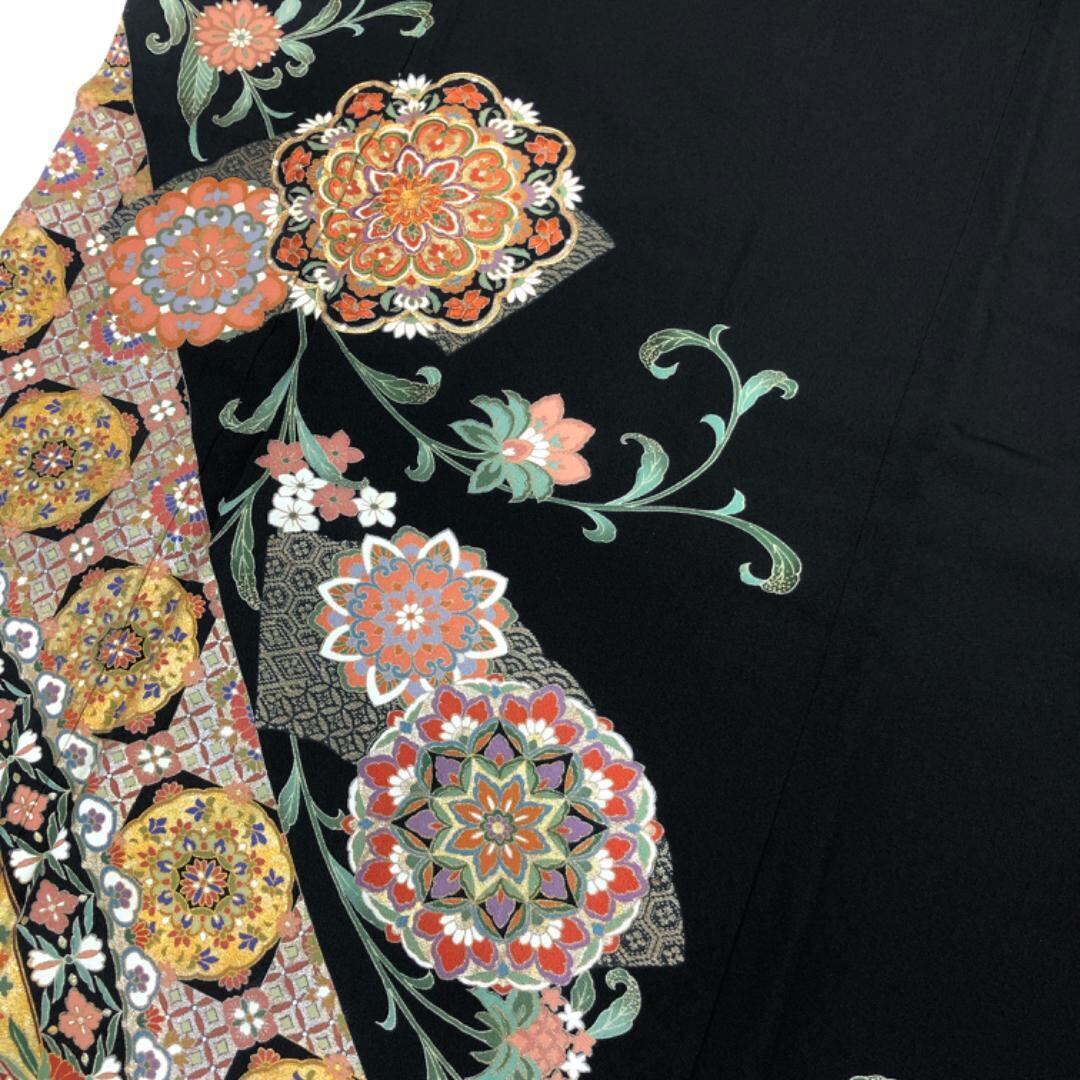 珠宝華文と題された金駒刺繍、金彩が使われた煌びやかで美しい華柄模様がデザインされた素敵な柄裄のお品でございます。