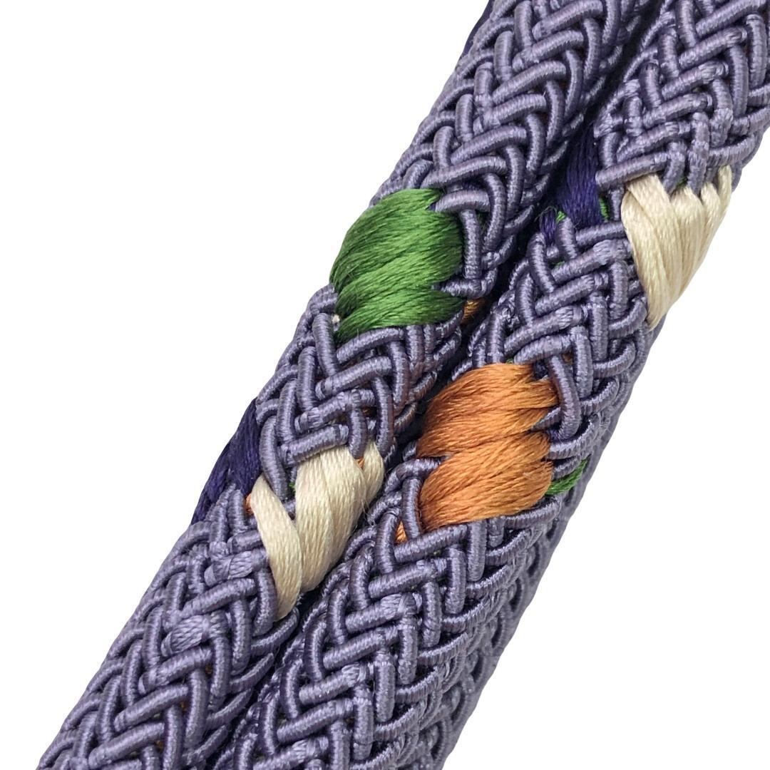 藤鳩羽色のお色味に丸組紐の素敵なお品でございます。