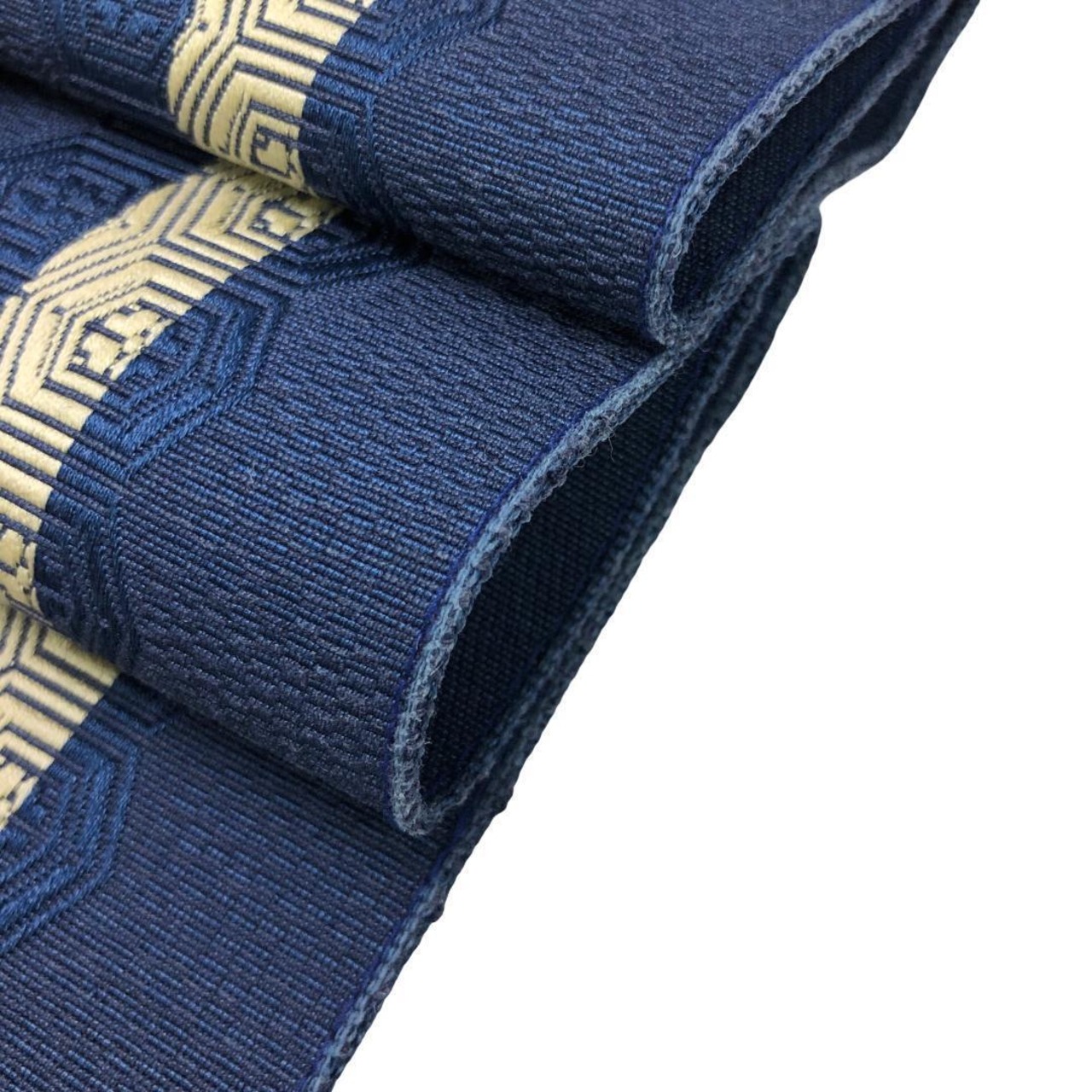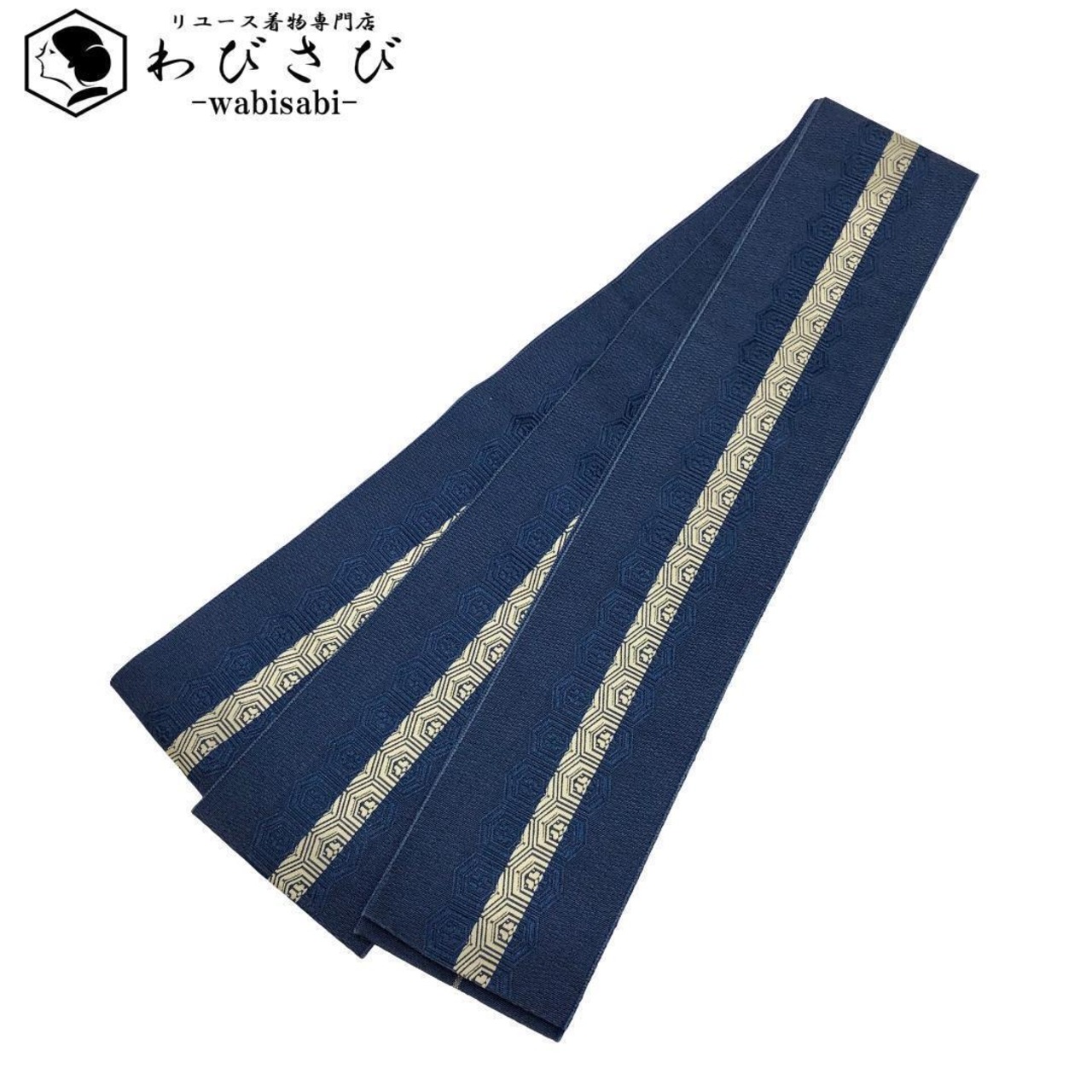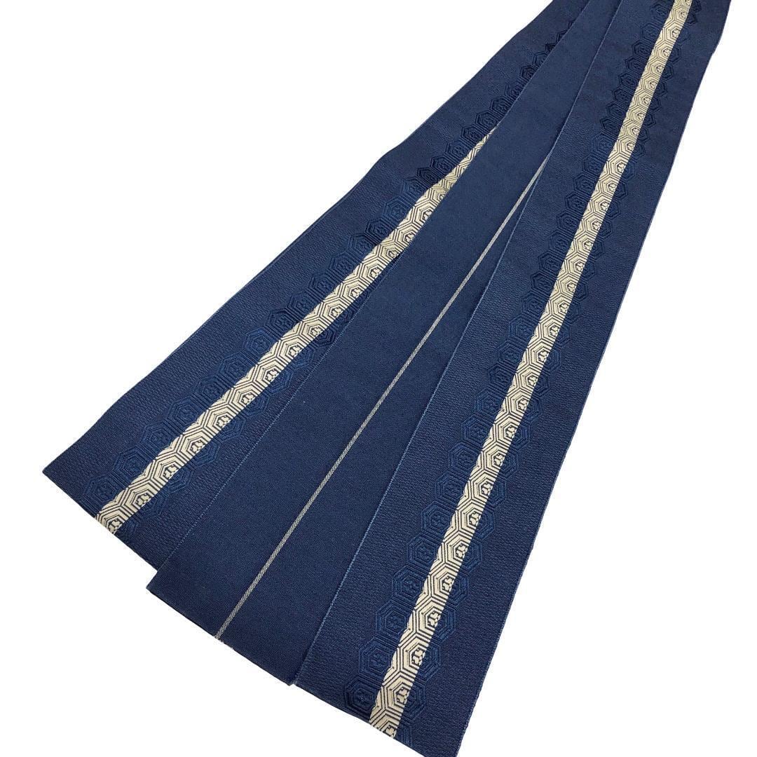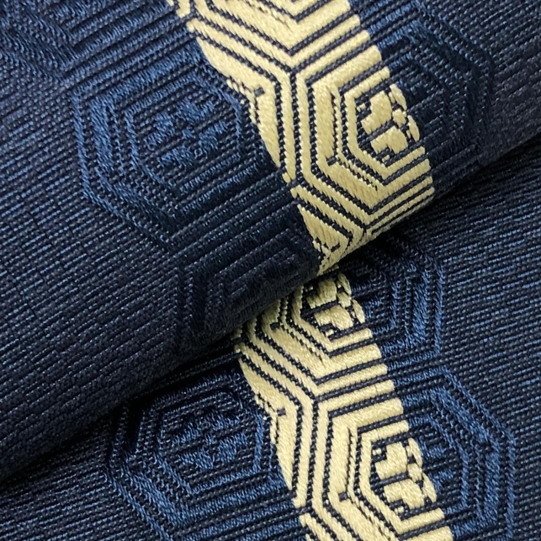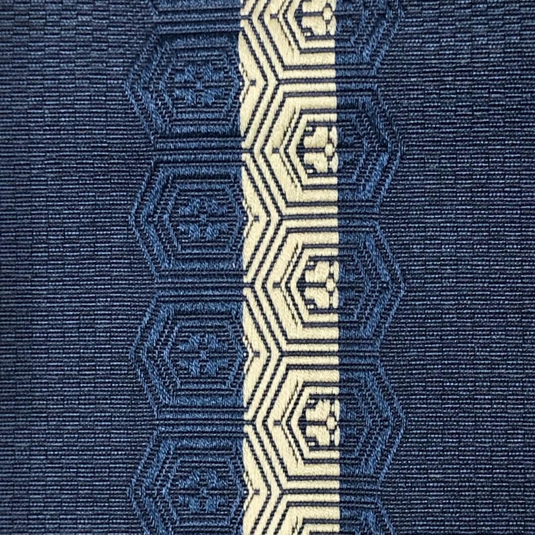 濃藍色のお色味に縦線、花亀甲がデザインされた素敵なお品でございます。