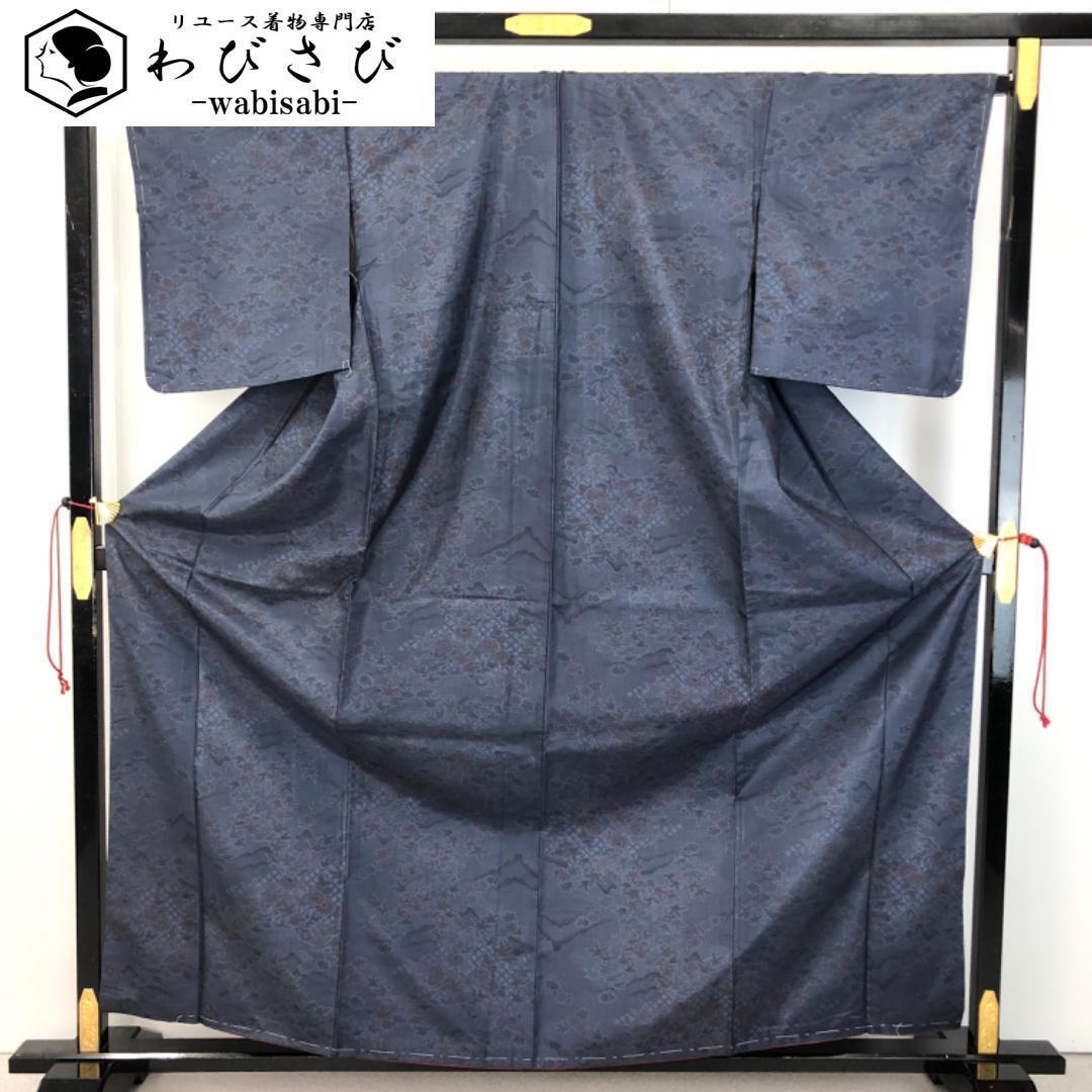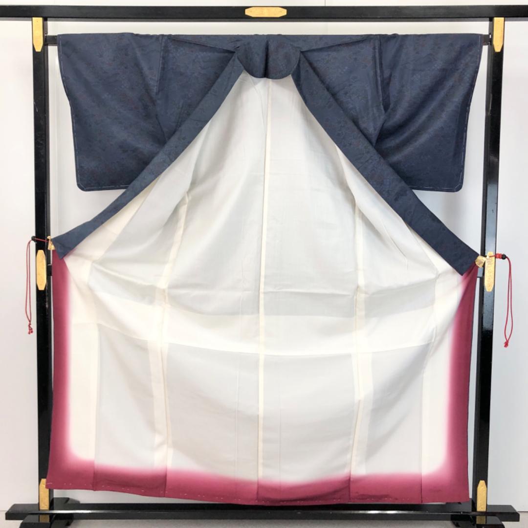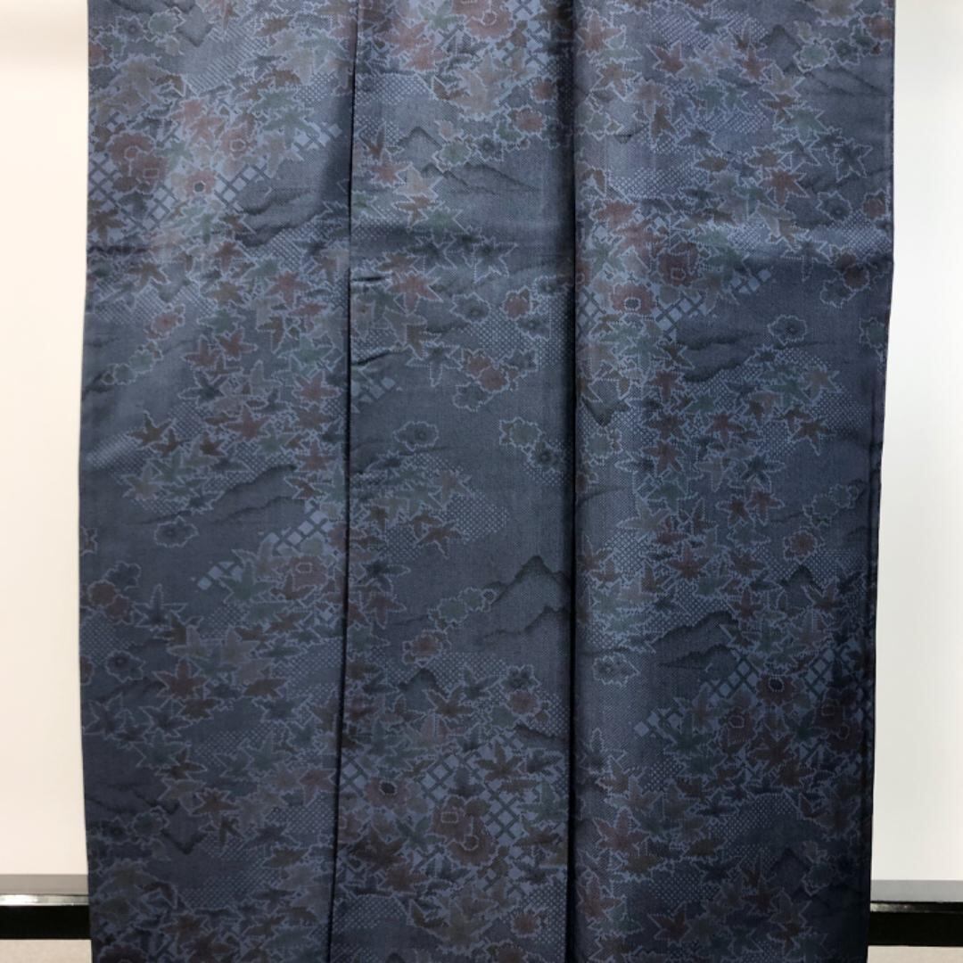 裏色の美しい青味のお色に四季の花模様の柄裄がデザインされた素敵なお品でございます。