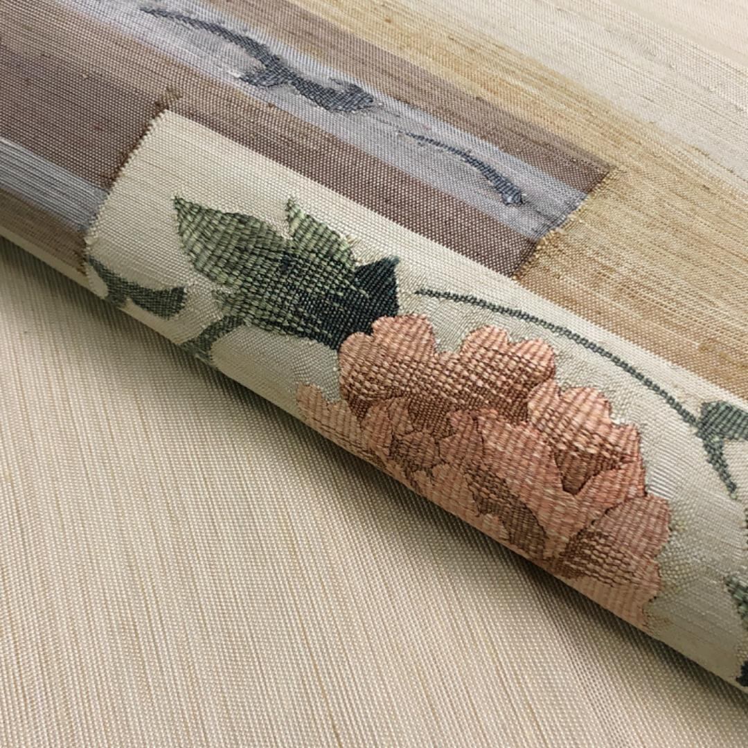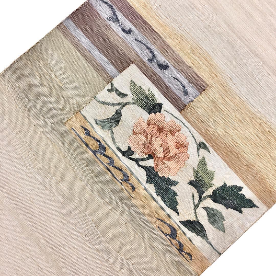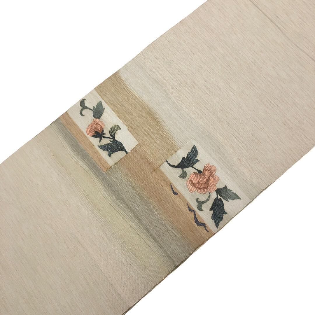 生成色ベースの品のあるお色味に花模様の柄裄がデザインされた素敵なお品でございます。