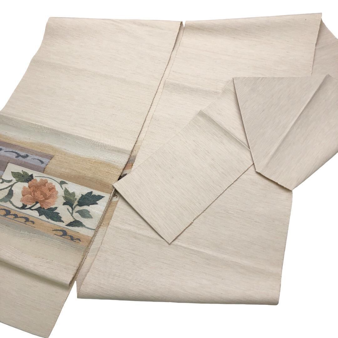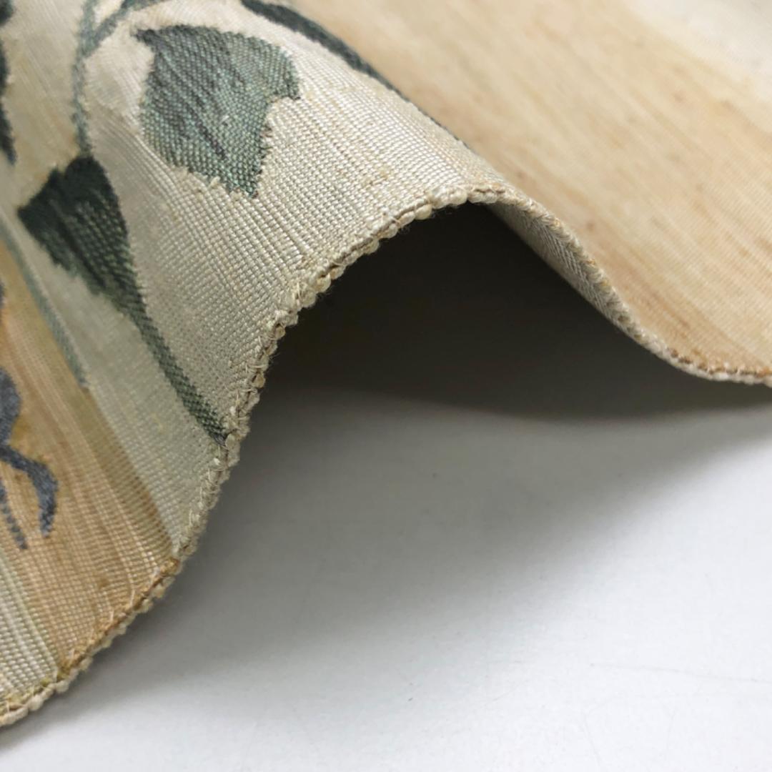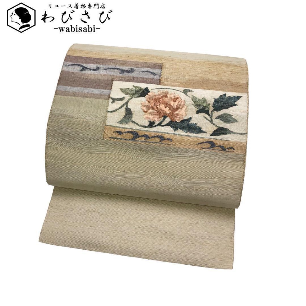 生成色ベースの品のあるお色味に花模様の柄裄がデザインされた素敵なお品でございます。