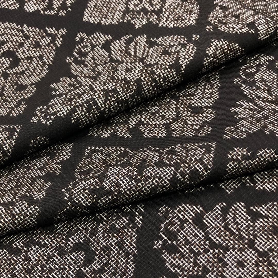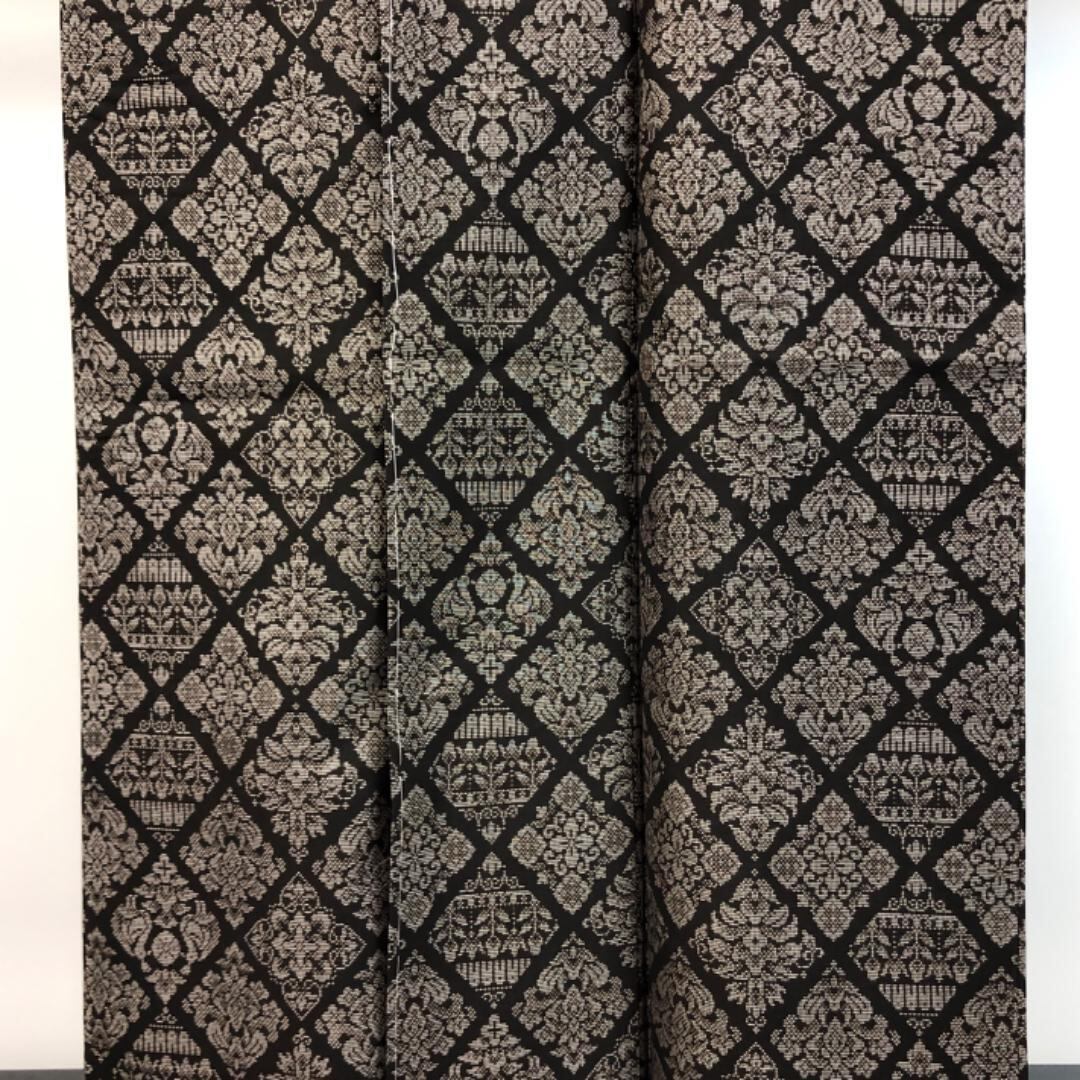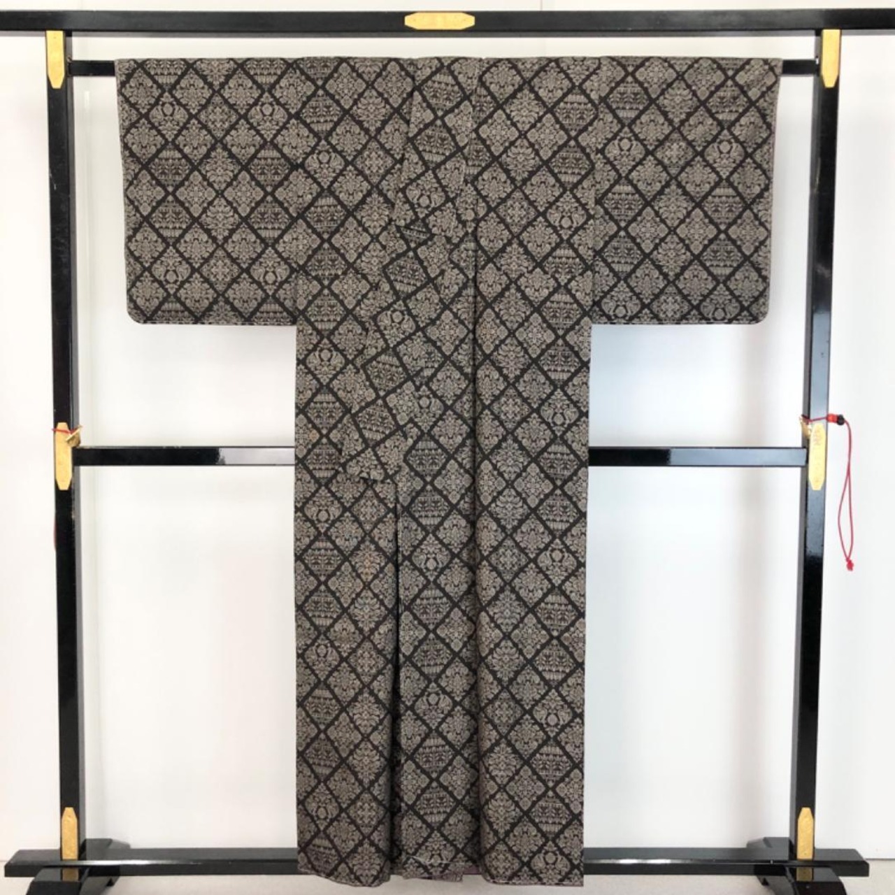 純泥染の雰囲気の良いお色味に菱形に花模様の縦横の絣柄がデザインされた素敵なお品でございます。