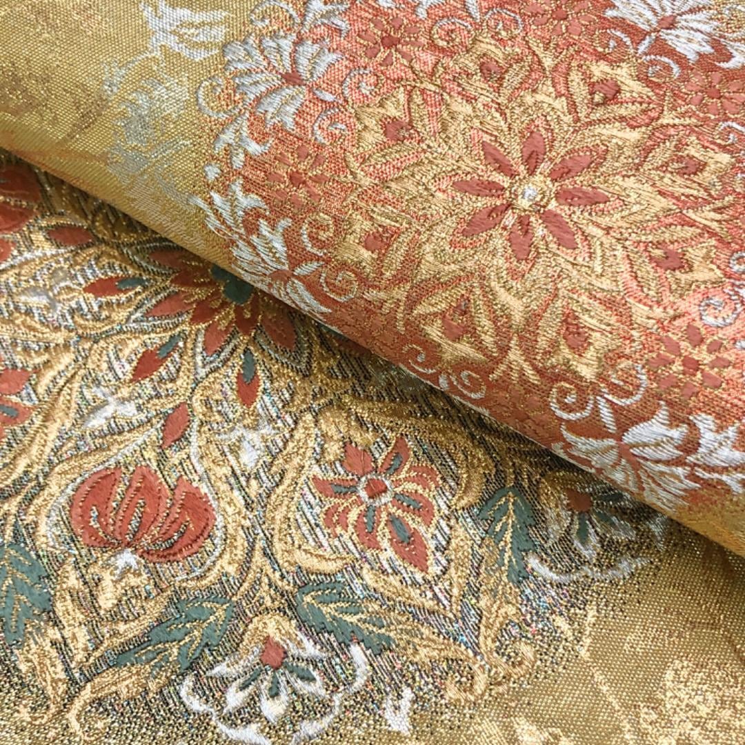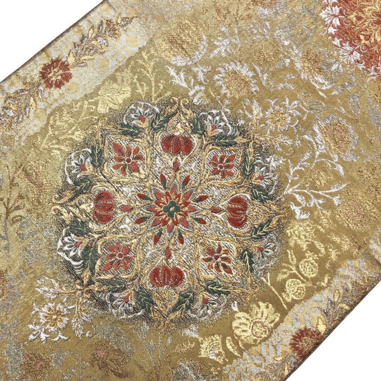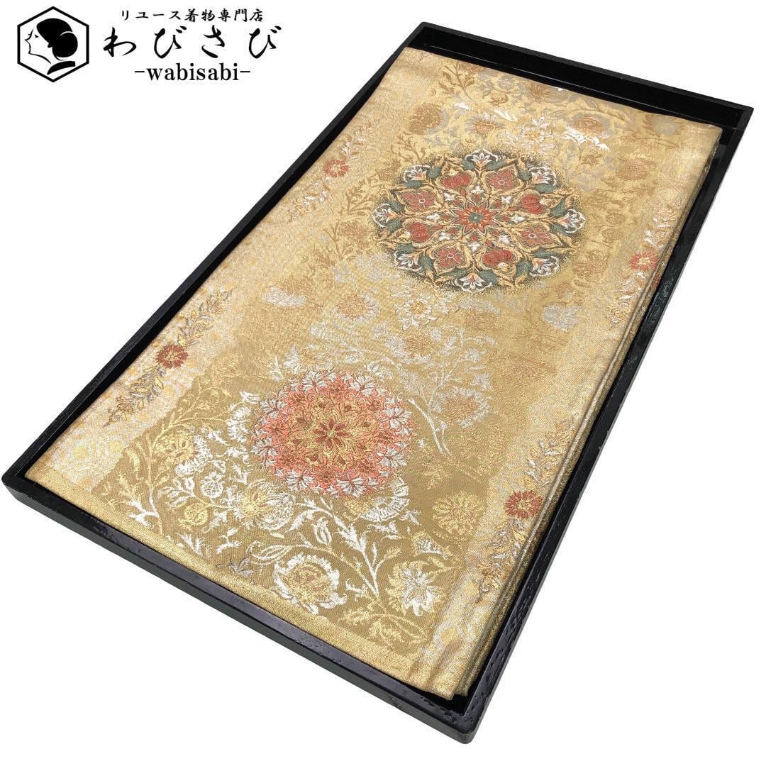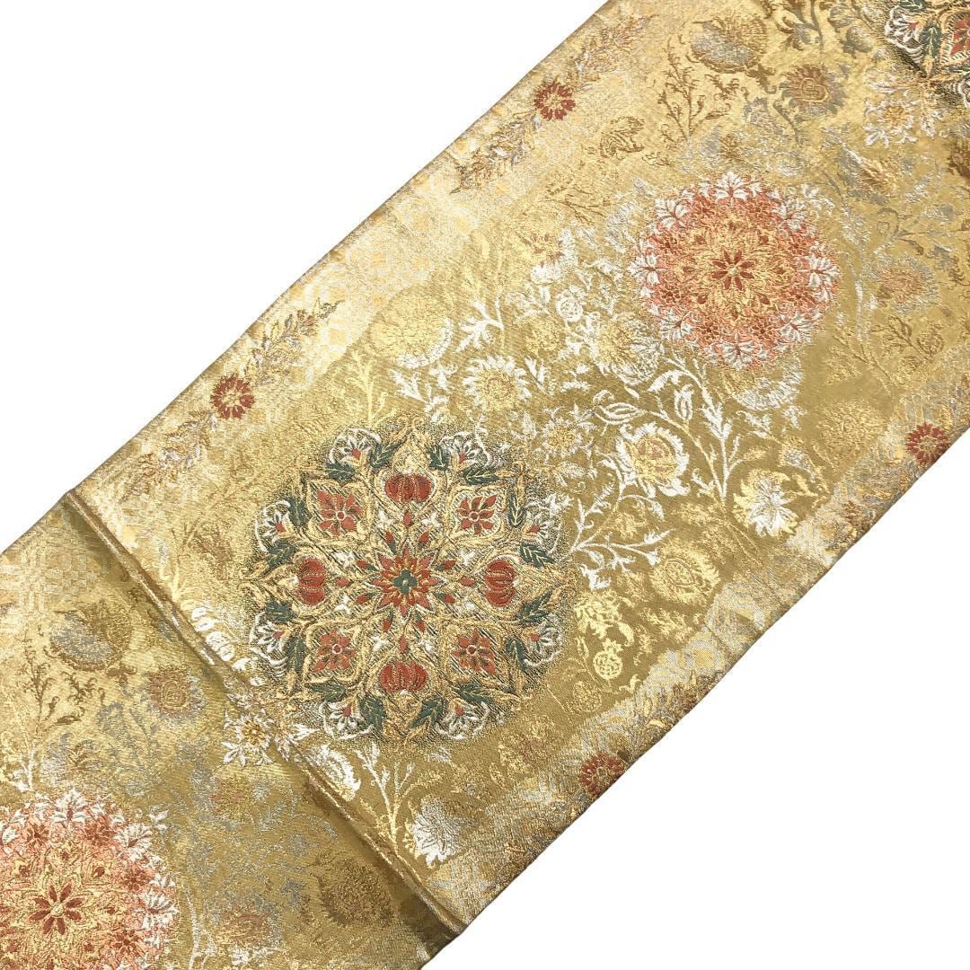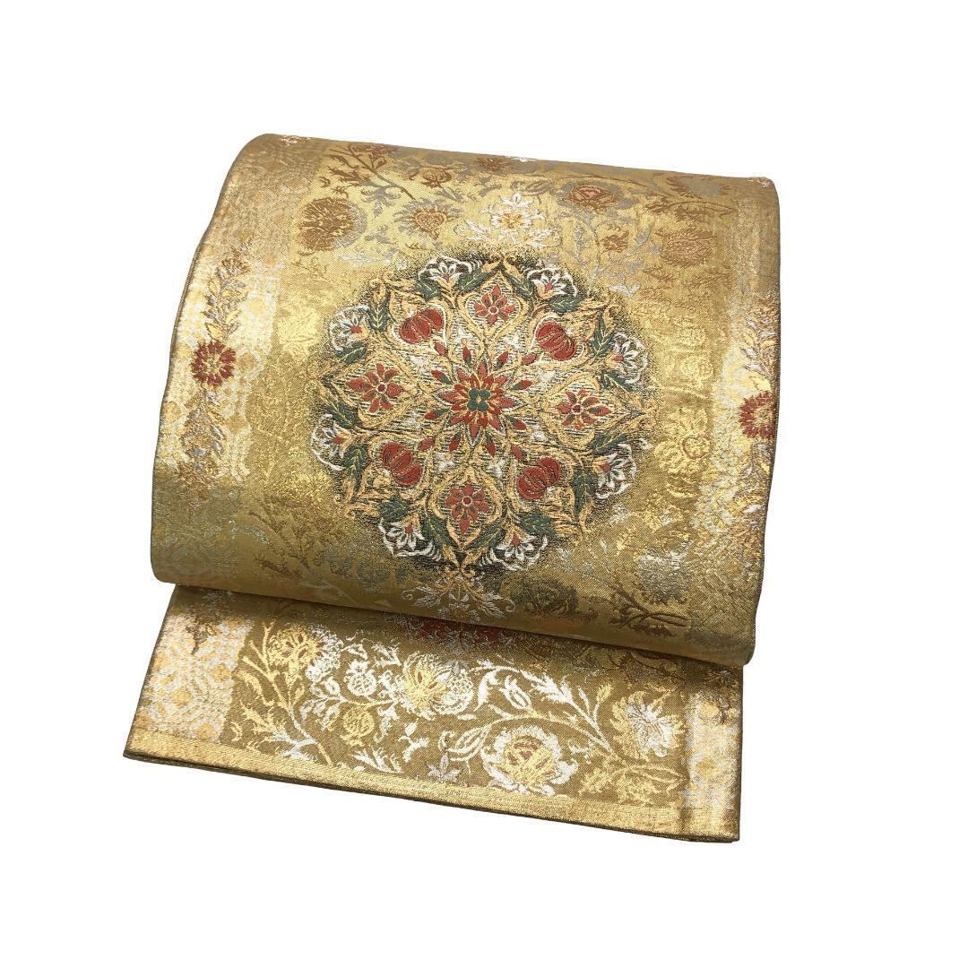 金色ベースのお色味に煌びやかな美しい華柄模様がデザインされた素敵なお品でございます。