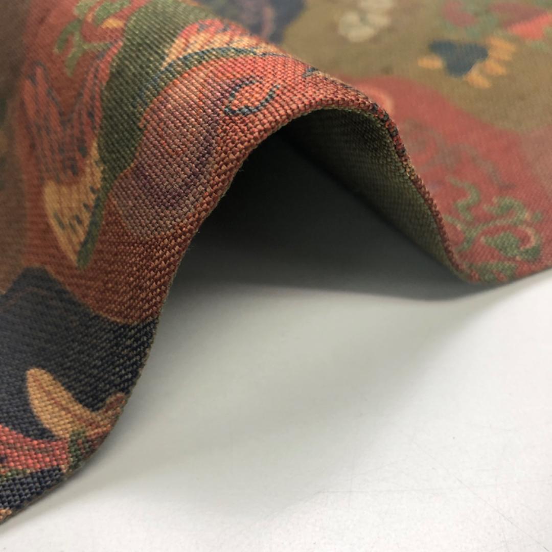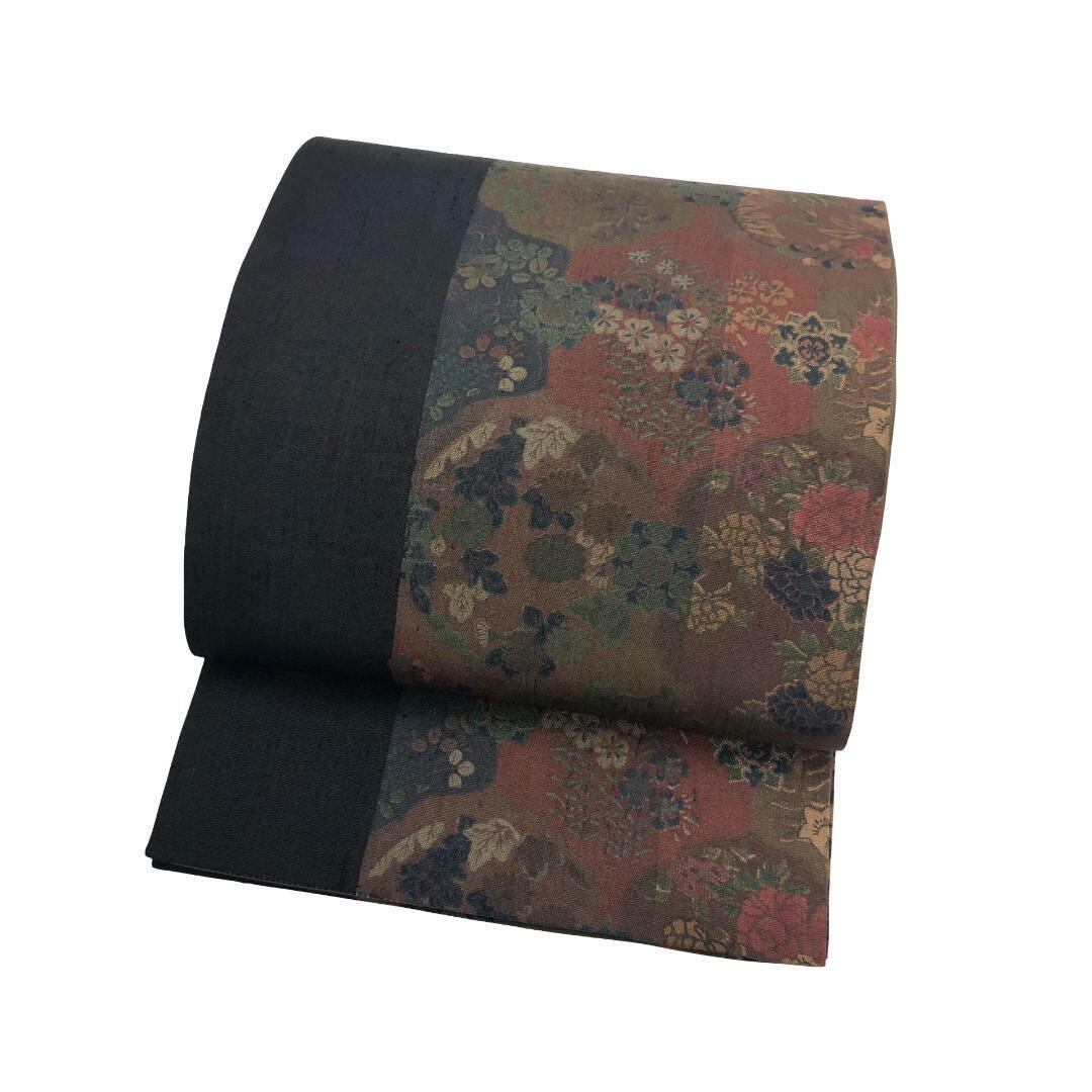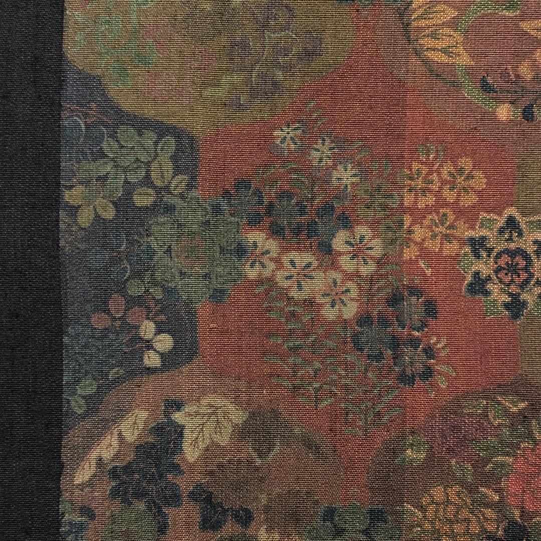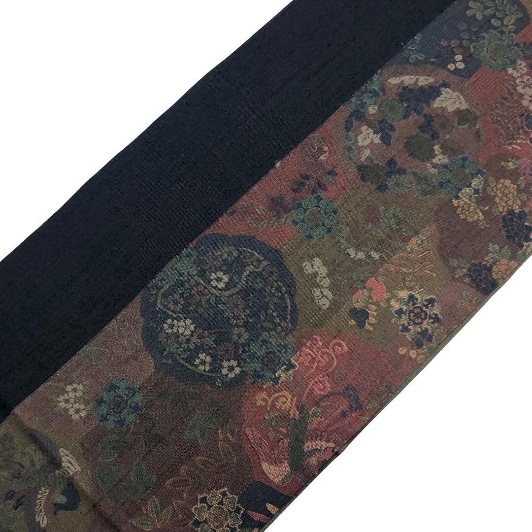 落ち着いた色彩、花柄模様に鳥などの柄裄がデザインされた雰囲気の良い素敵なお品でございます。