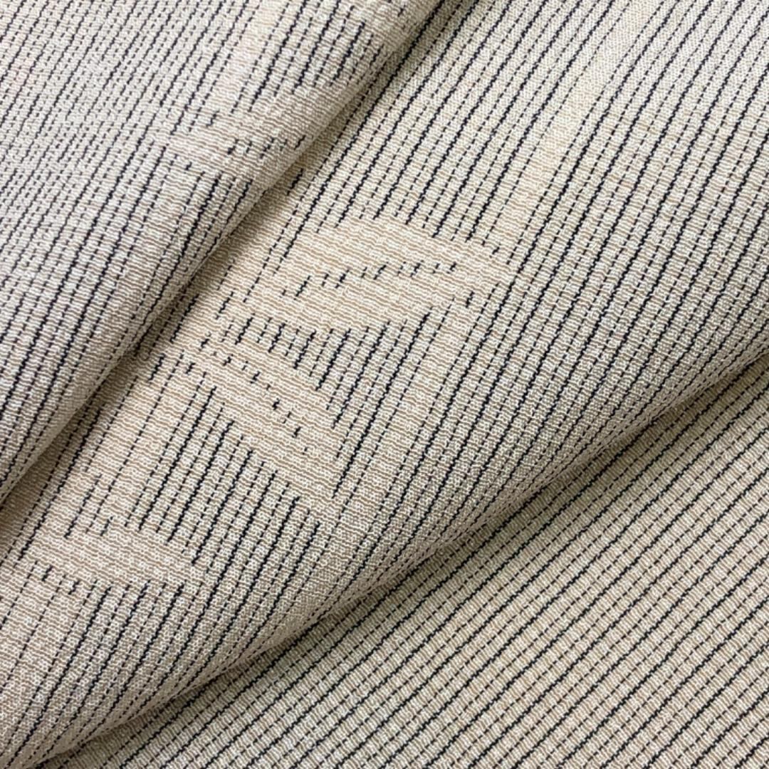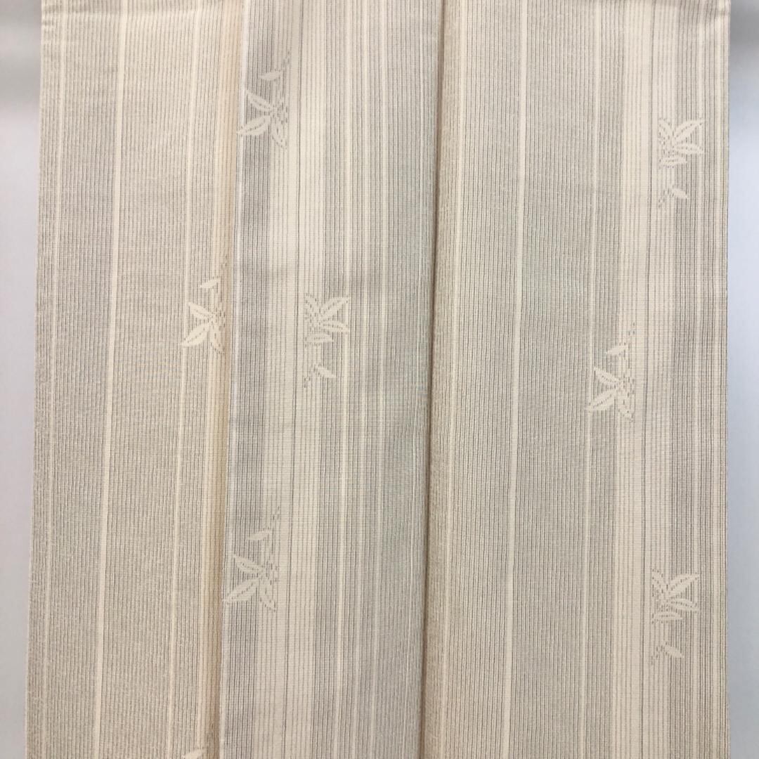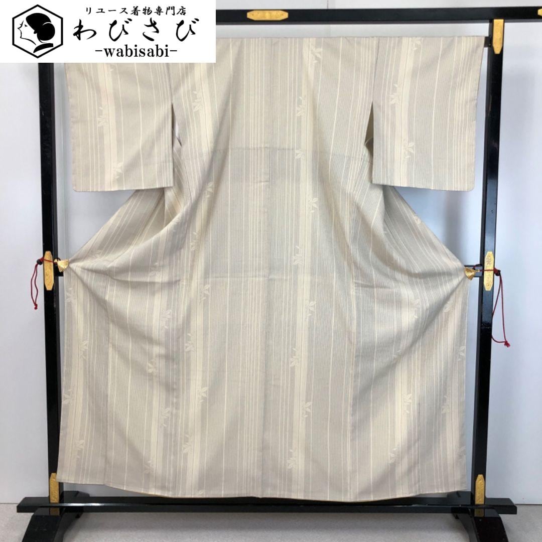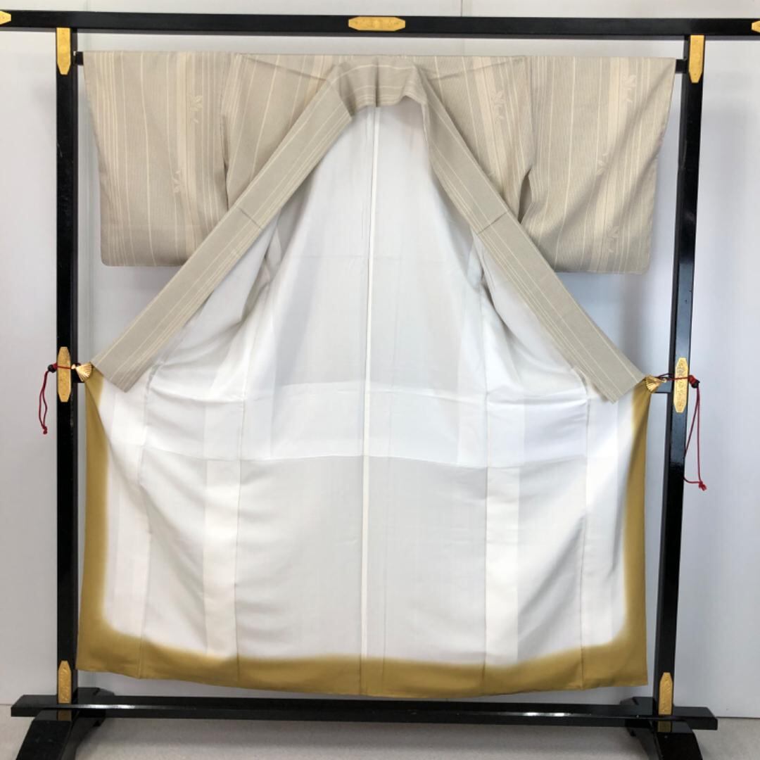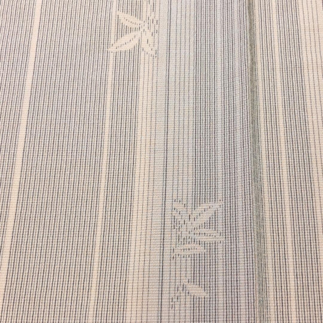 象牙色の上品なお色味に縦縞葉模様の柄裄がデザインされた雰囲気の良い素敵なお品でございます。