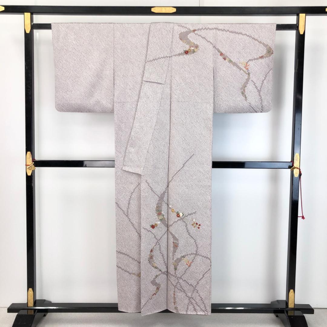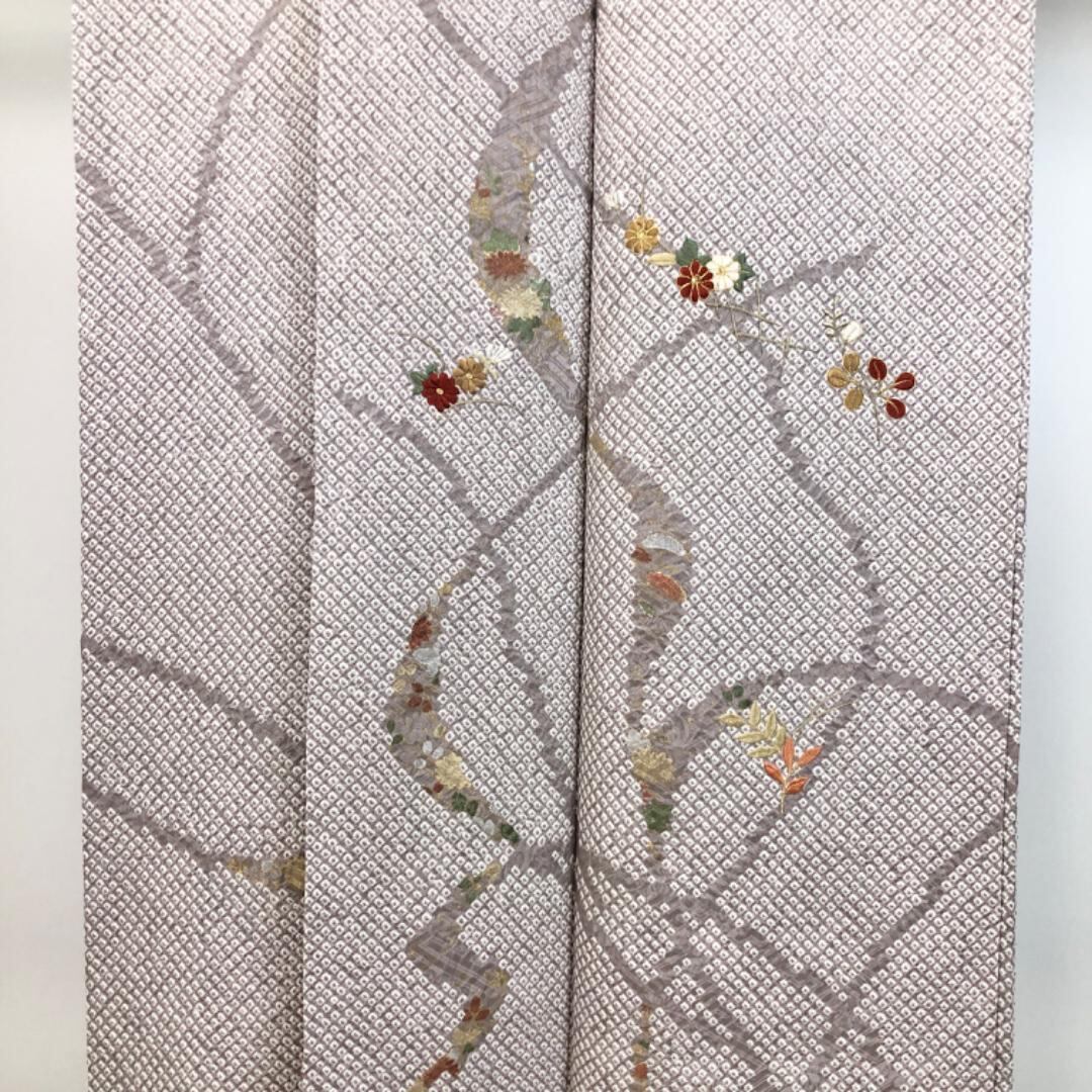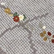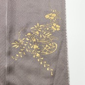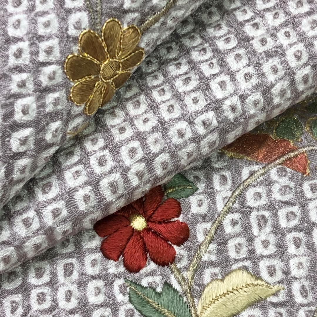 灰桜色の上品なお色味に刺繍の花模様がデザインされた雰囲気の良い素敵なお品でございます。