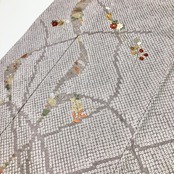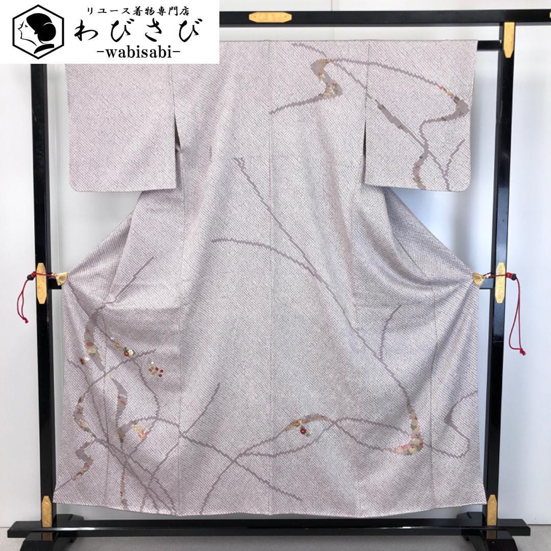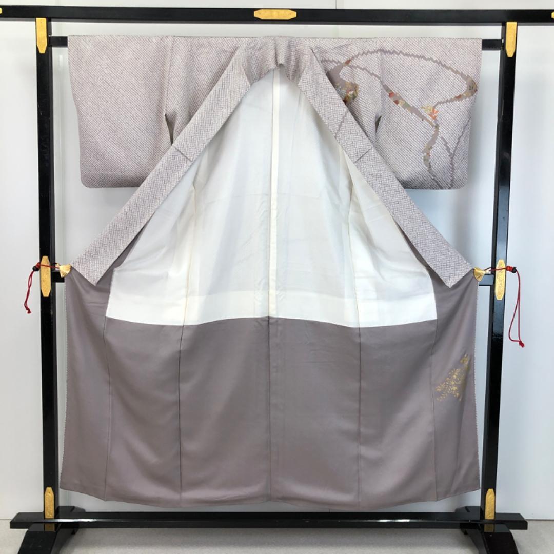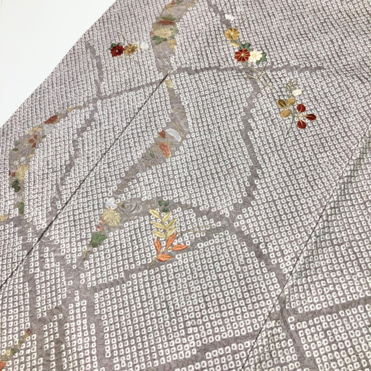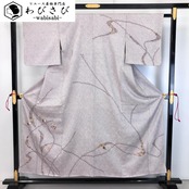 灰桜色の上品なお色味に刺繍の花模様がデザインされた雰囲気の良い素敵なお品でございます。