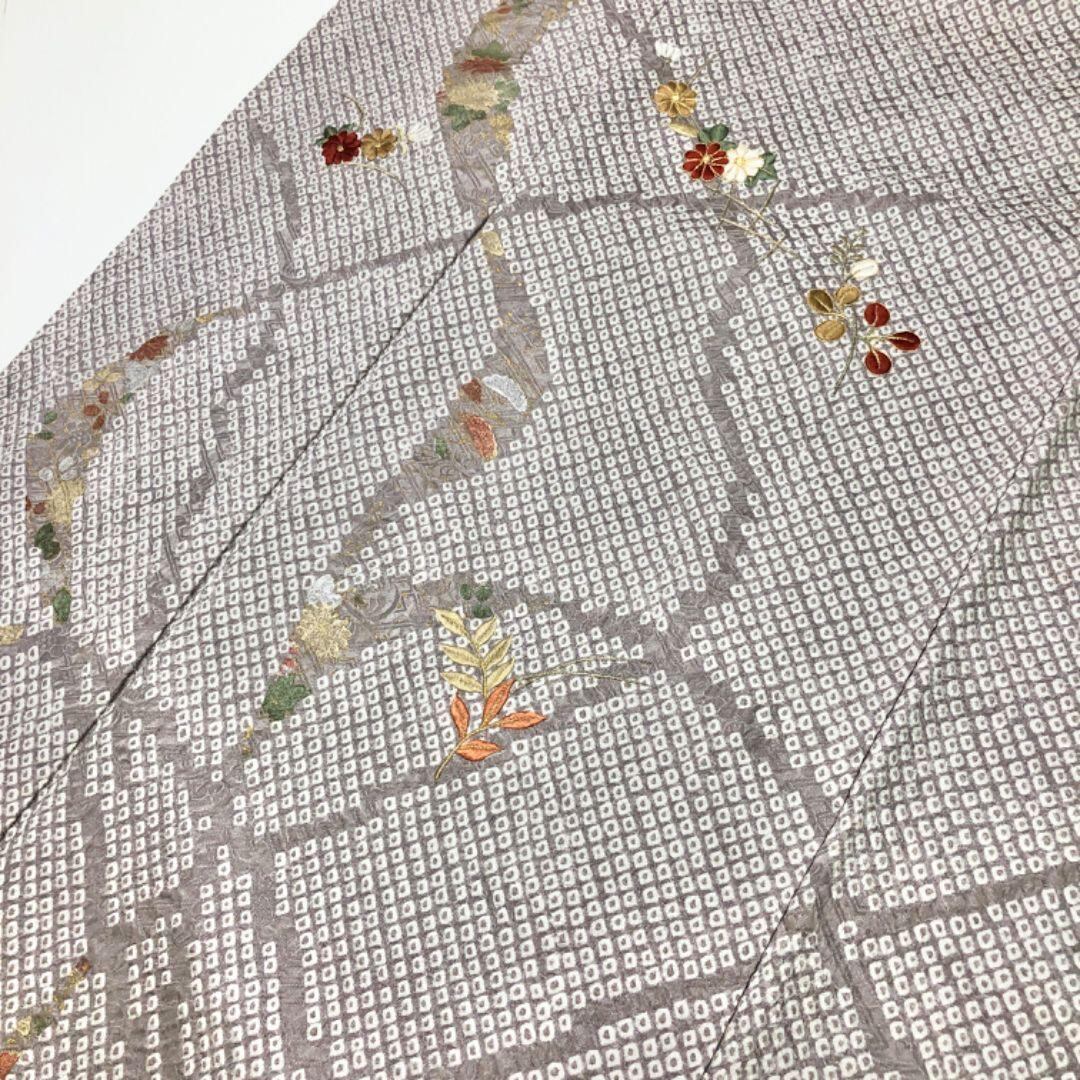 付下げ 総絞り 花模様 刺繍 灰桜色 金糸 金彩 K-5497 着物 きもの kimono 和服 和装 中古 リサイクル着物 【送料無料】