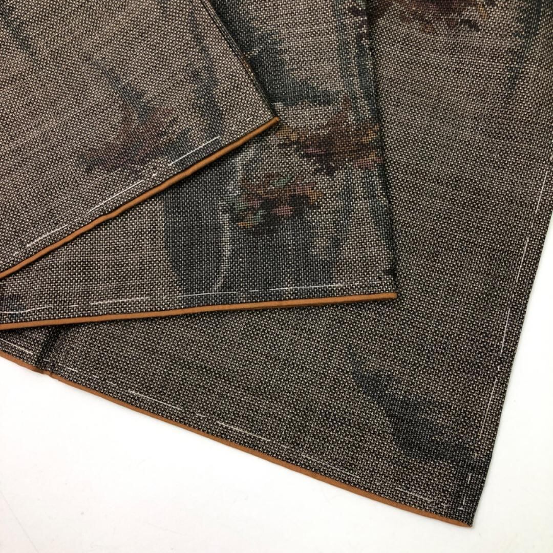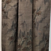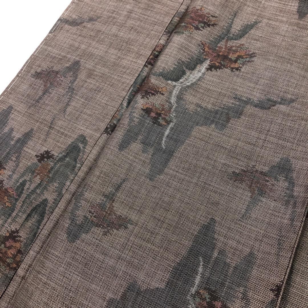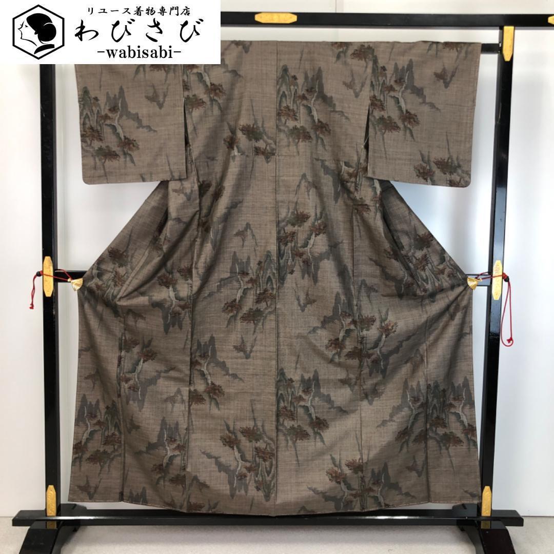 茶泥染の落ち着きあるお色味に風景模様の柄裄がデザインされた素敵なお品でございます。