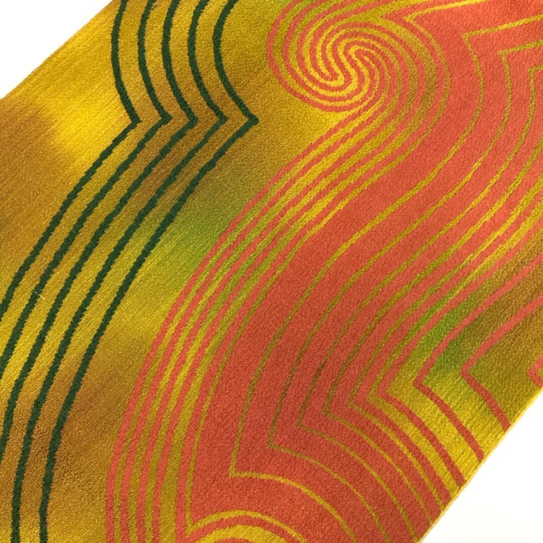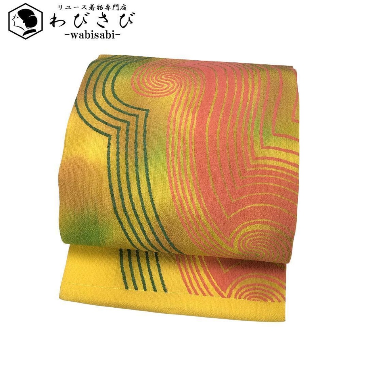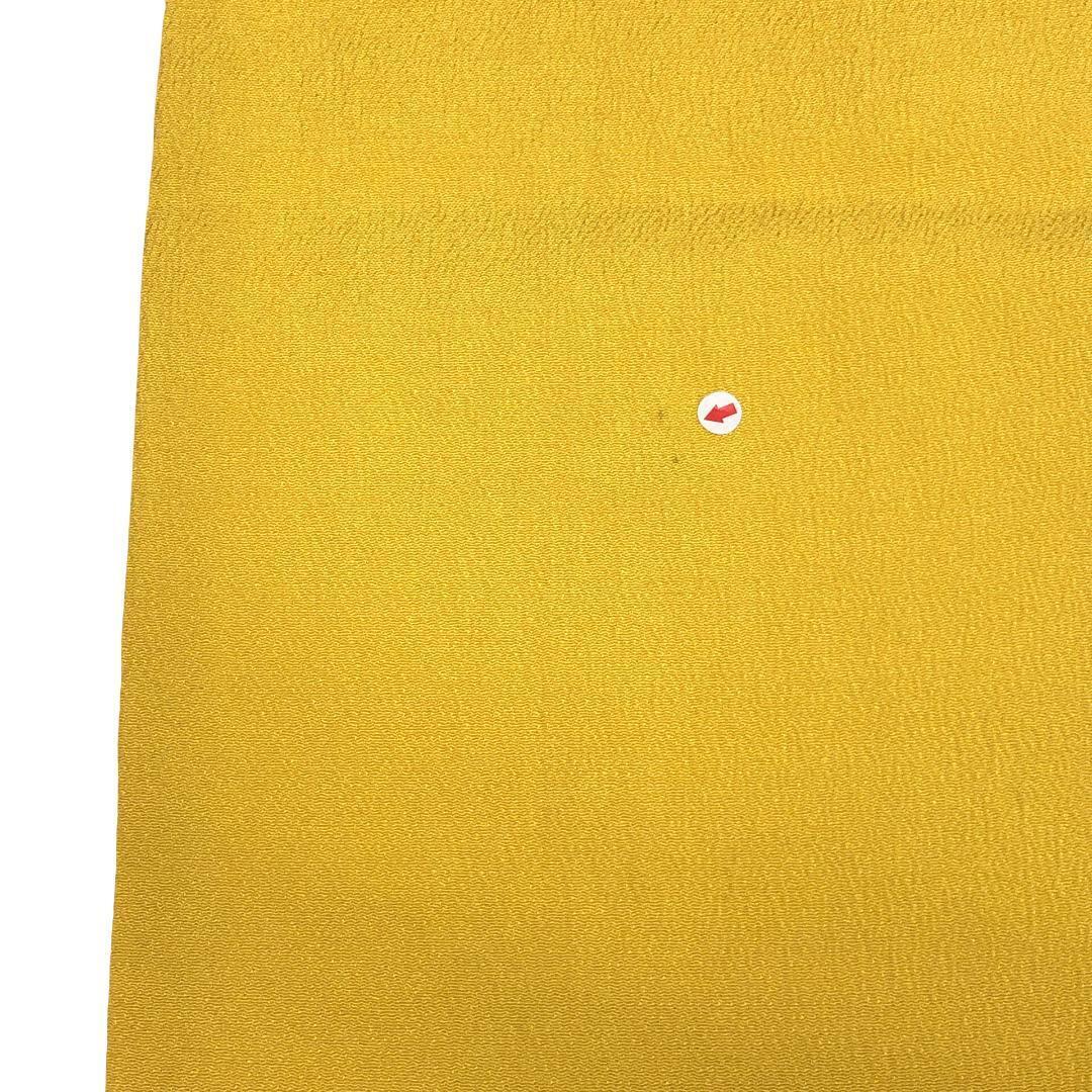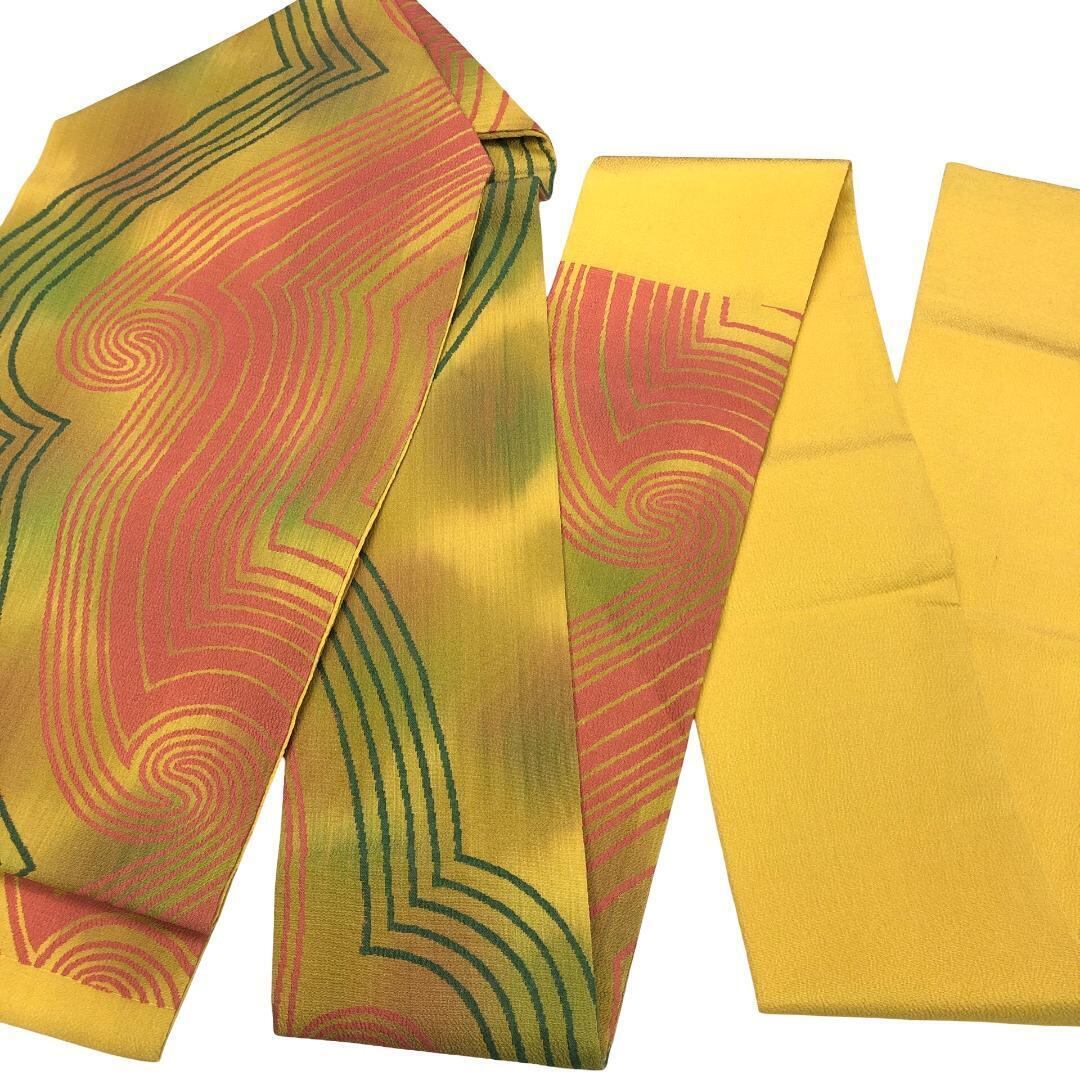 黄支子色ベースに暈しの縮緬地に曲線模様がデザインされた素敵な柄裄のお品でございます。