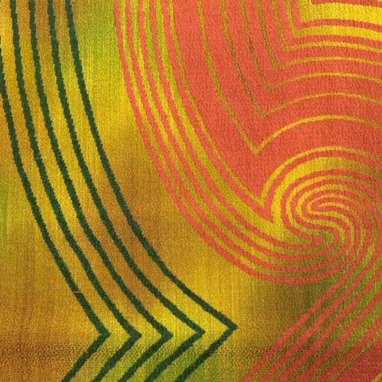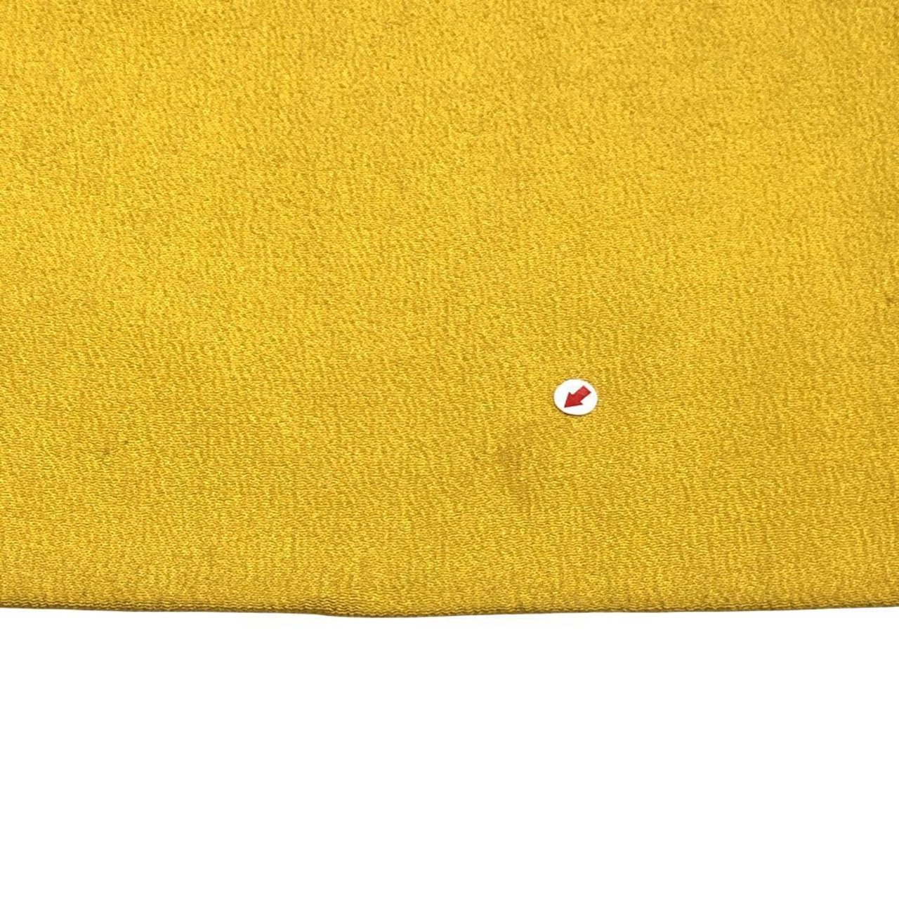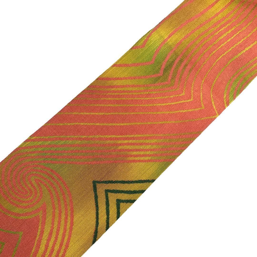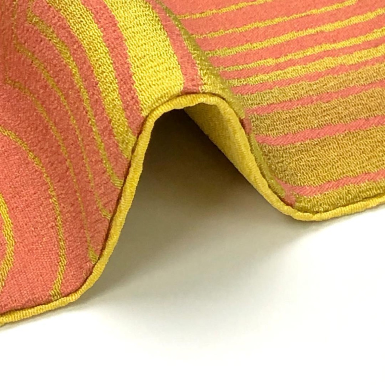 黄支子色ベースに暈しの縮緬地に曲線模様がデザインされた素敵な柄裄のお品でございます。