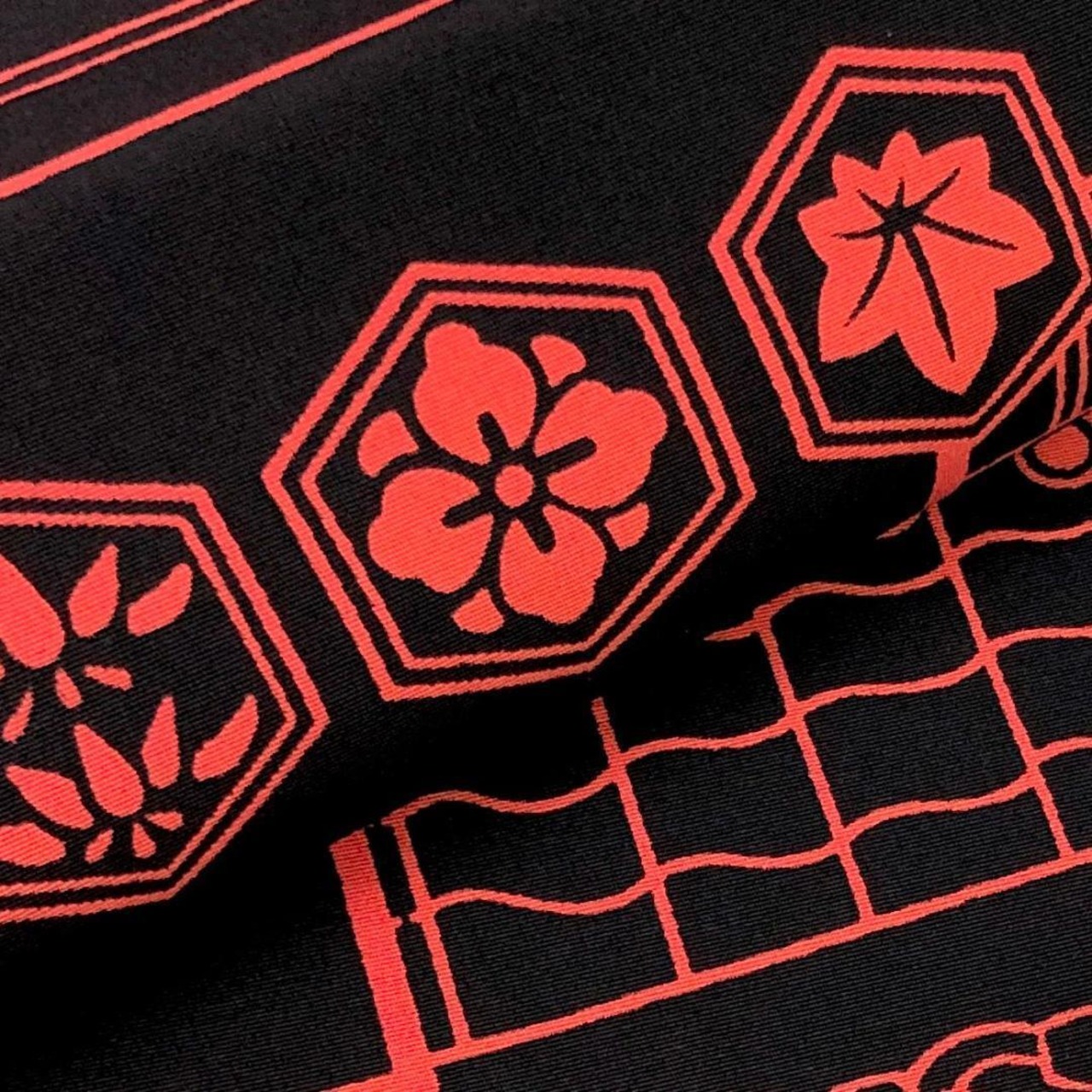 黒色のお色味に雰囲気の良い柄裄がデザインされた素敵なお品でございます。