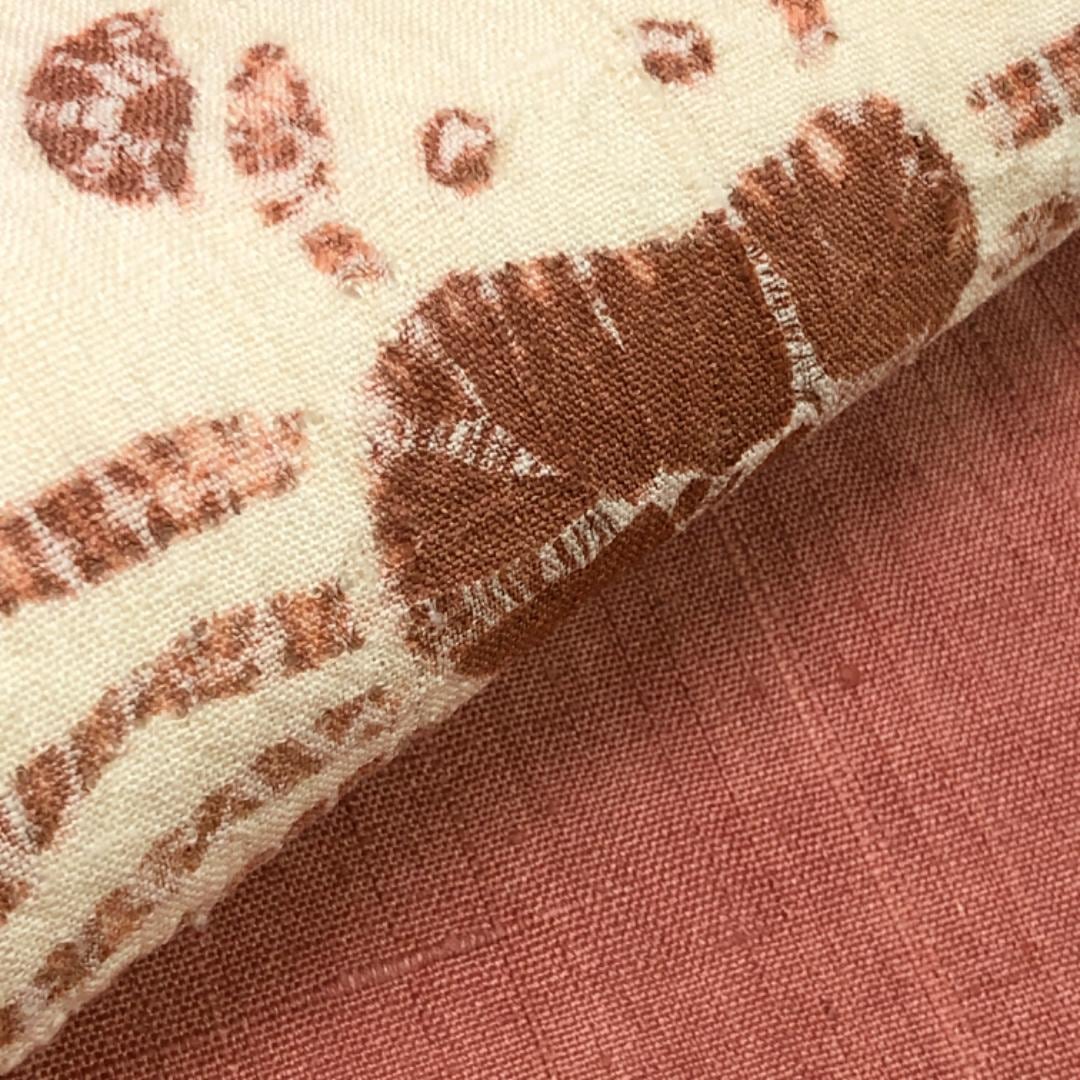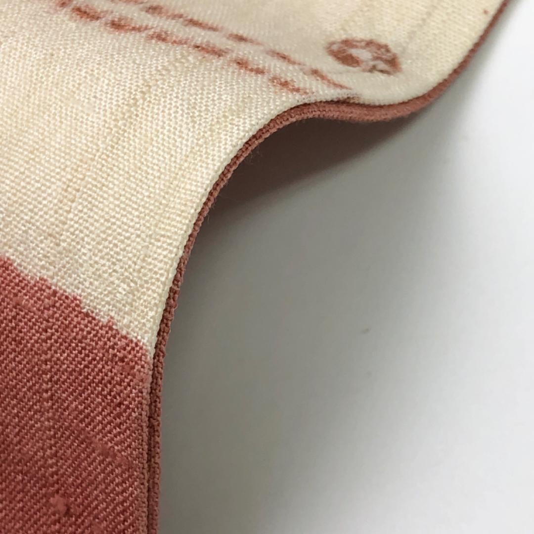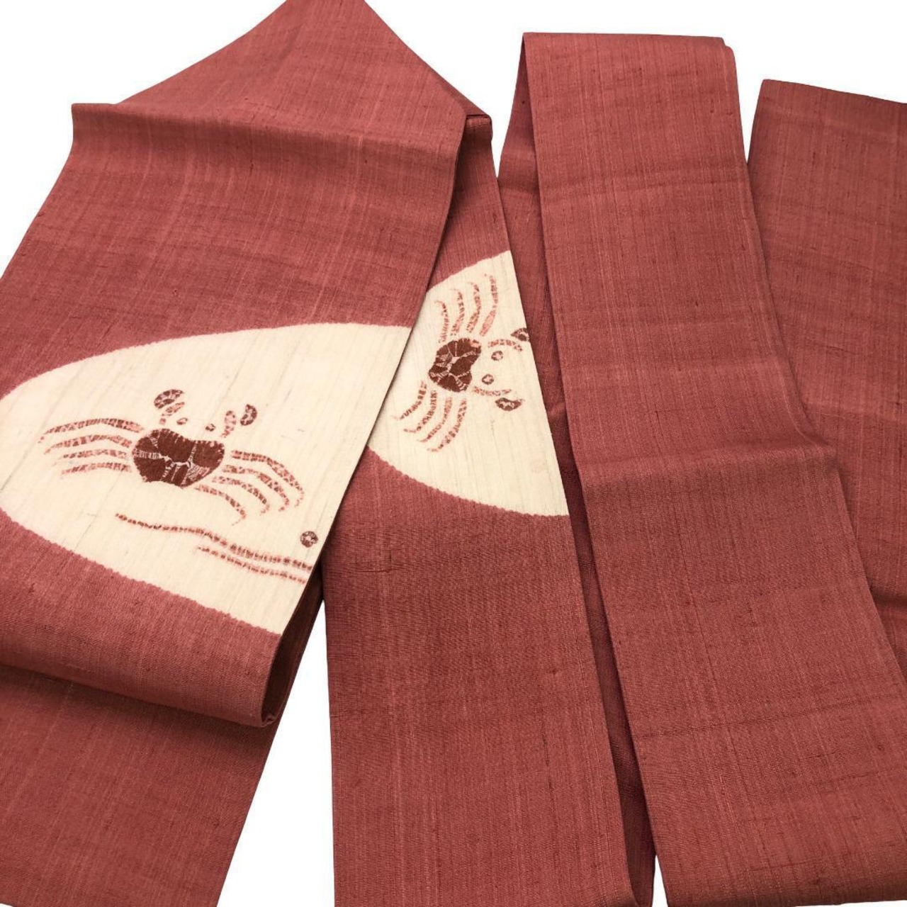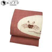 浅蘇芳色ベースのお色味に絞り柄の蟹がデザインされた雰囲気の良い素敵なお品でございます。