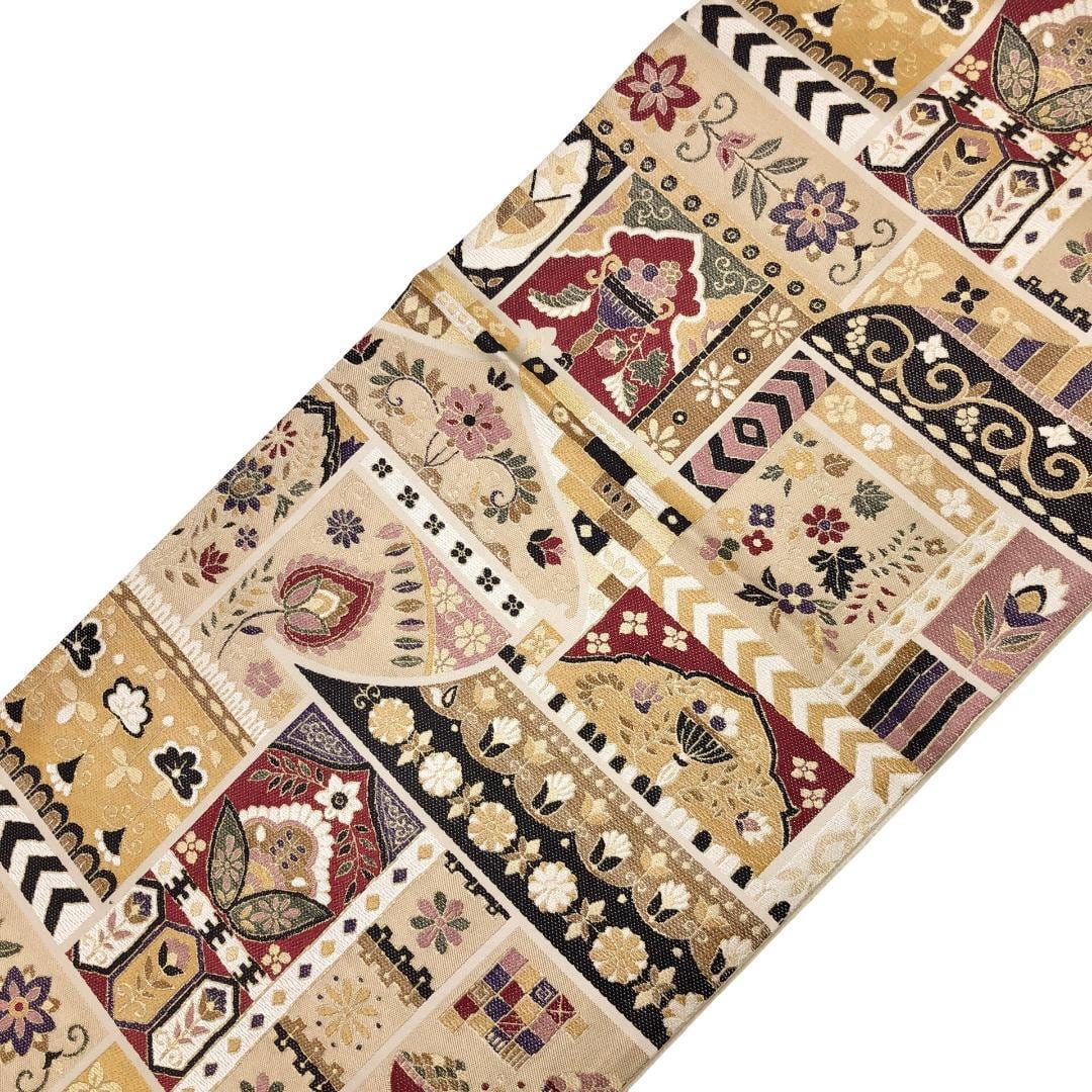 胡桃色ベースのお色味に織全九蔵文様の雰囲気の良い柄裄がデザインされた素敵なお品でございます。