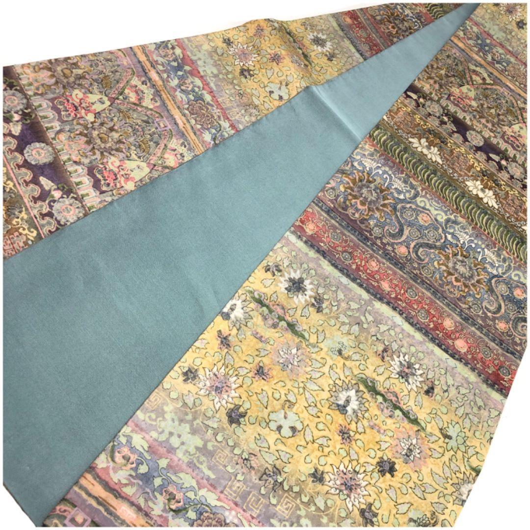 横縞に華柄模様、花唐草の雰囲気の良い柄行がデザインされた紙布の独特の手触りの素敵なお品でございます。