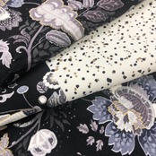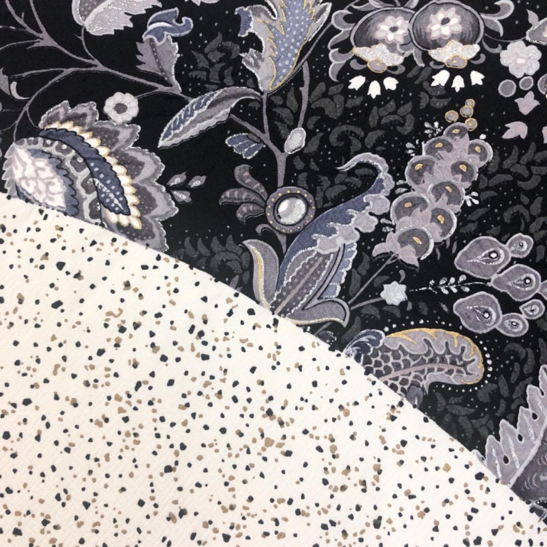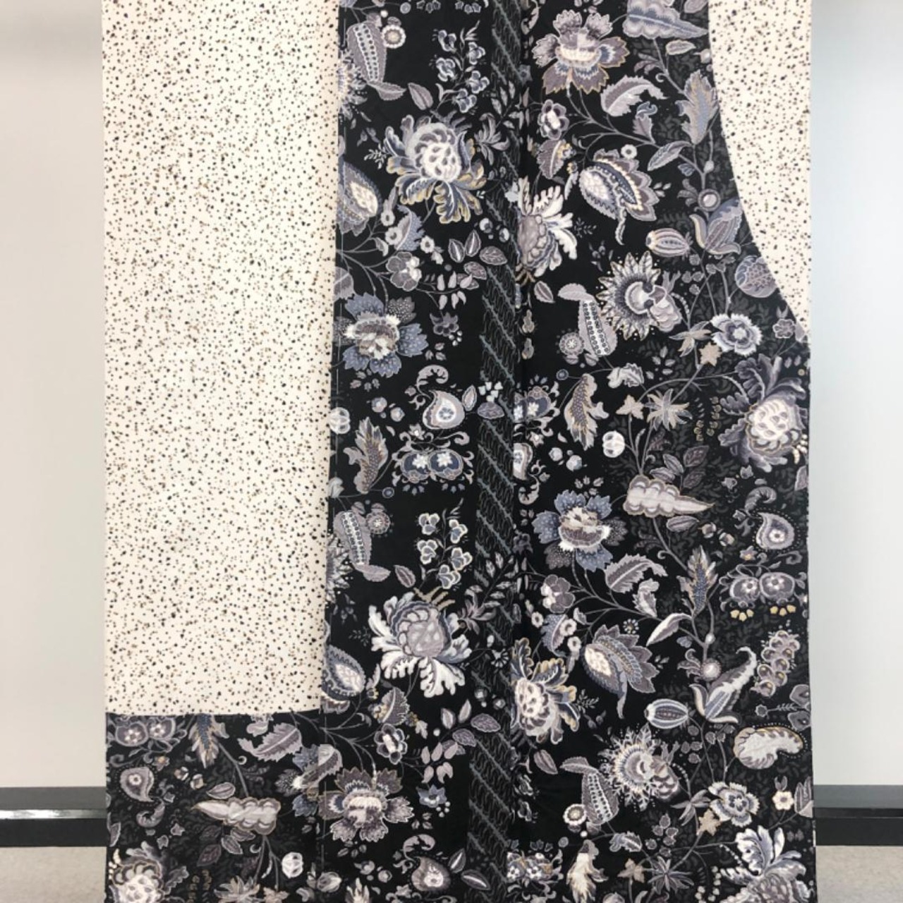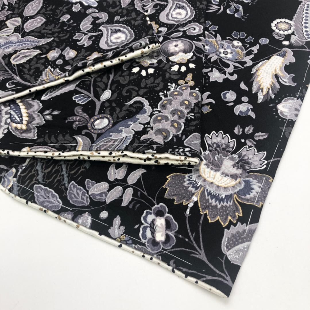 乳白色ベースのお色味に美しい花模様の柄裄がデザインされた雰囲気の良い素敵なお品でございます。