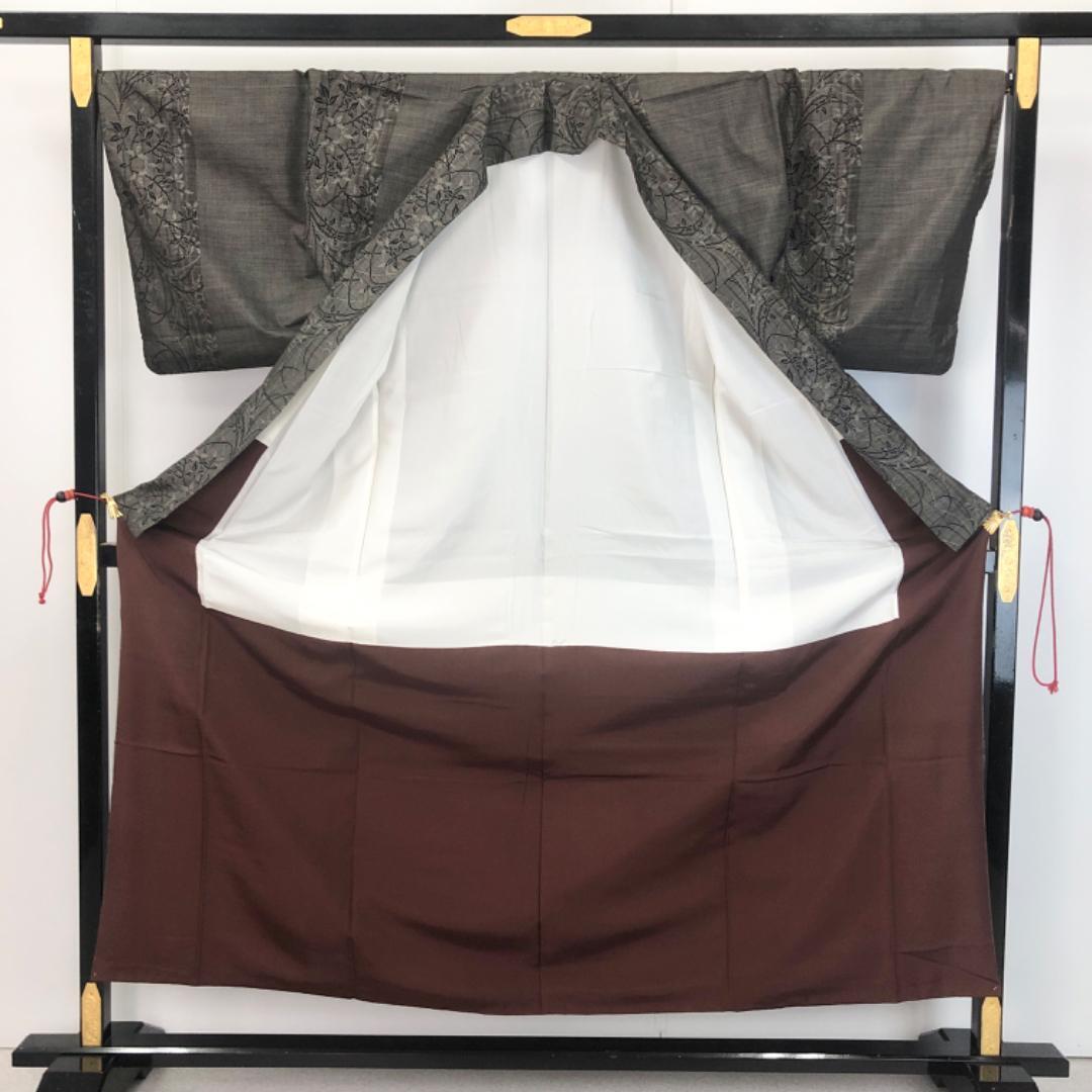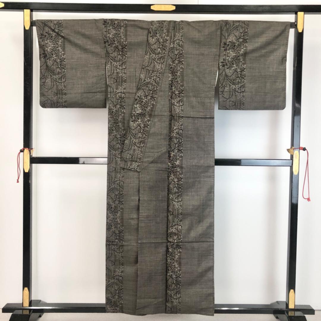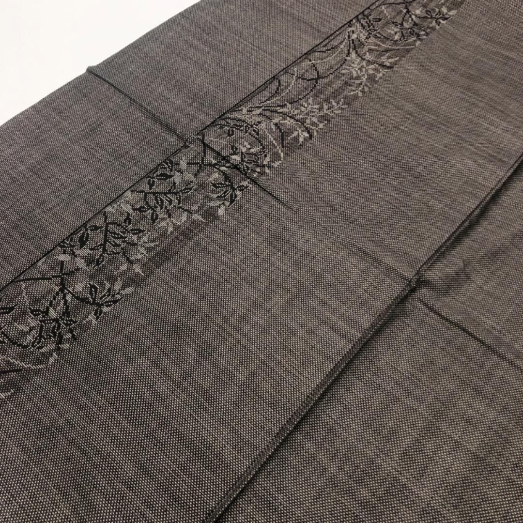 純泥染の雰囲気の良いお色味に縦柄の草花模様がデザインされた素敵なお品でございます。