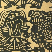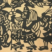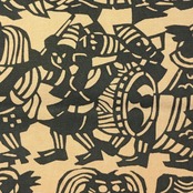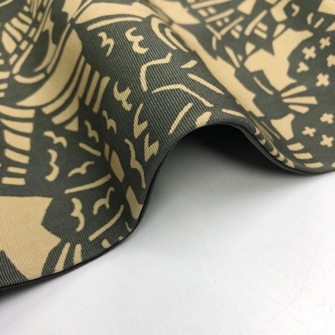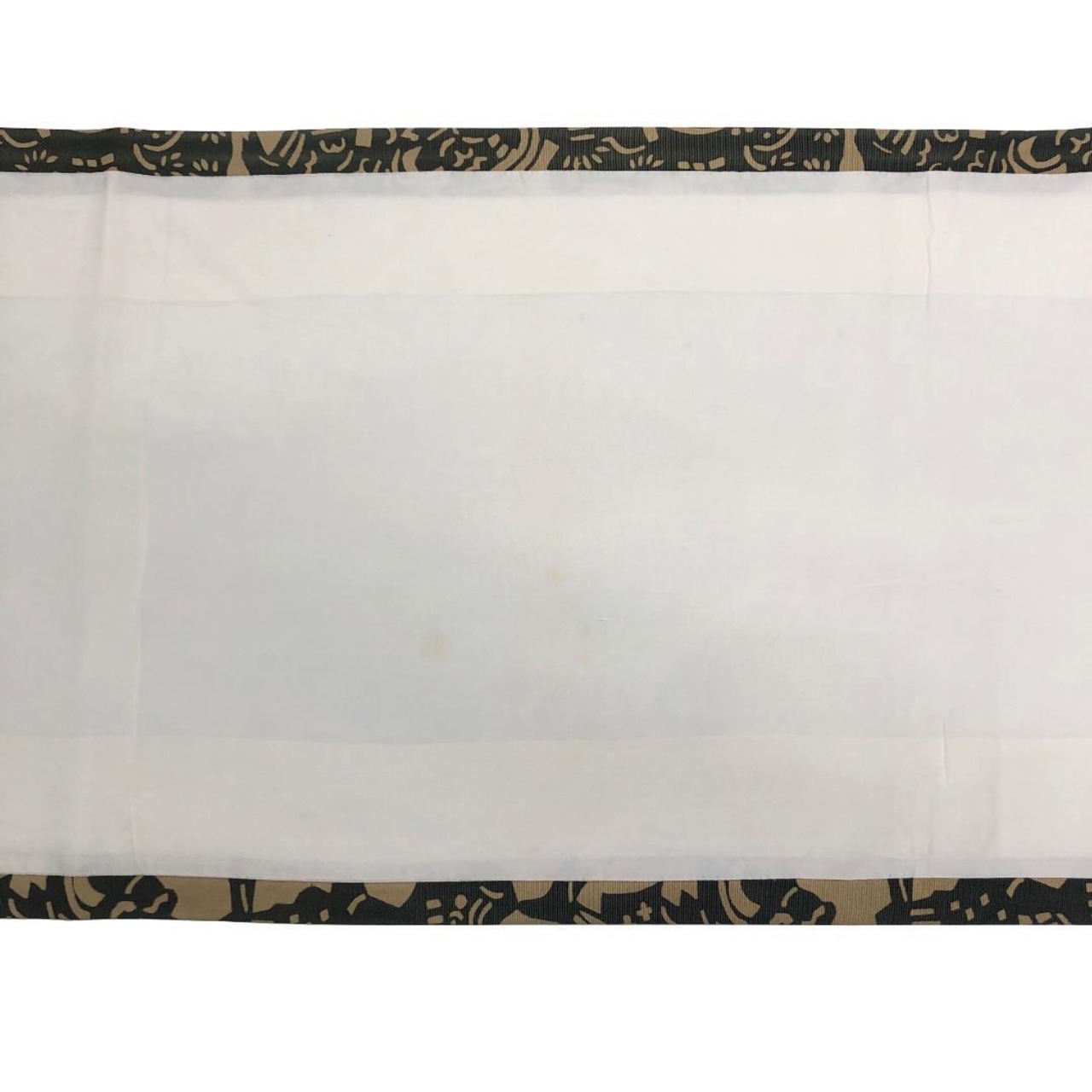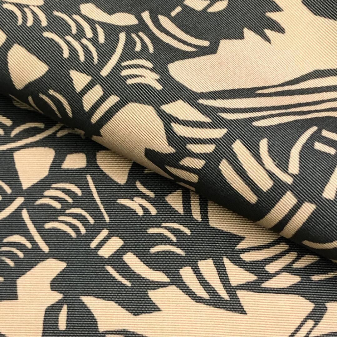 枯野色のお色味に天狗、獅子舞などの型染の柄裄がデザインされた雰囲気の良い素敵なお品でございます。