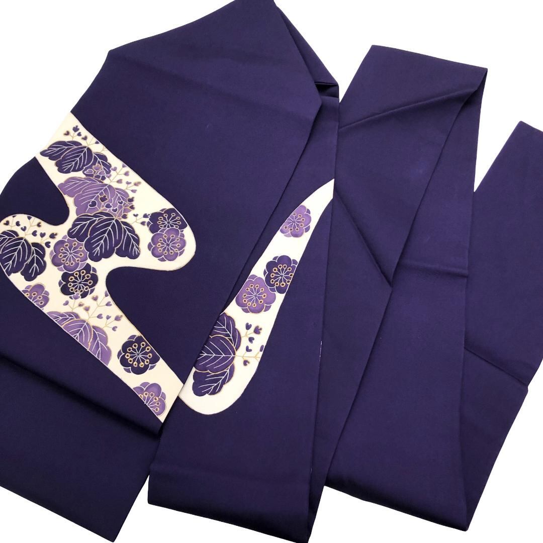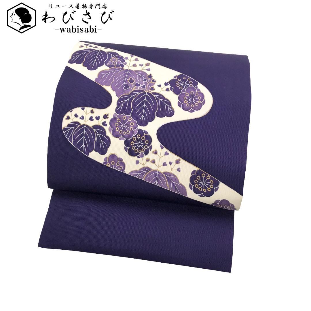 名古屋帯 塩瀬 桐 梅の花模様 金彩 紫色 O-5707 着物 きもの kimono 和服 和装 中古 リサイクル着物 【送料無料】