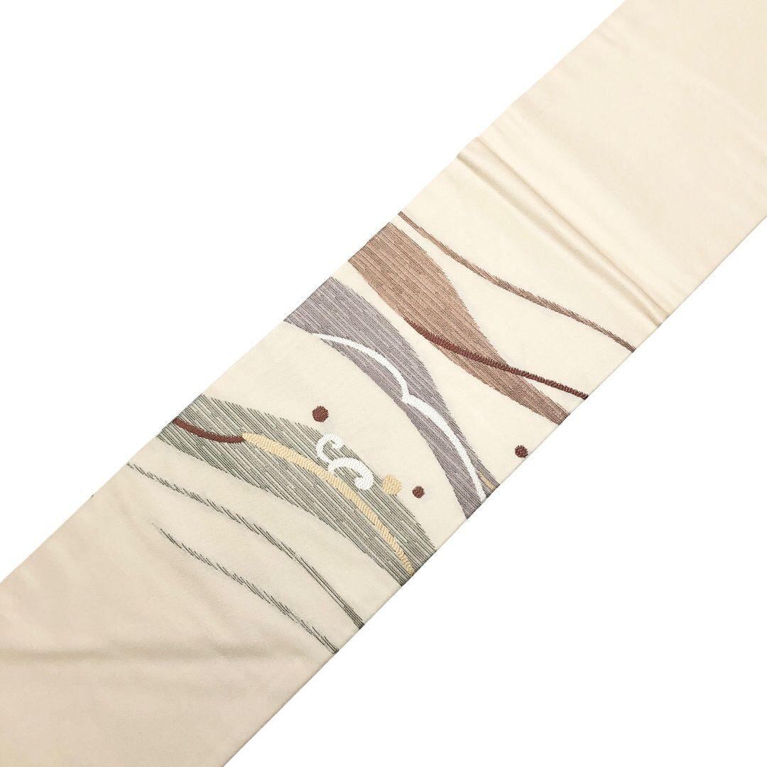 名古屋帯 西陣 三幸織物 波模様 乳白色 O-5709 着物 きもの kimono 和服 和装 中古 リサイクル着物 【送料無料】