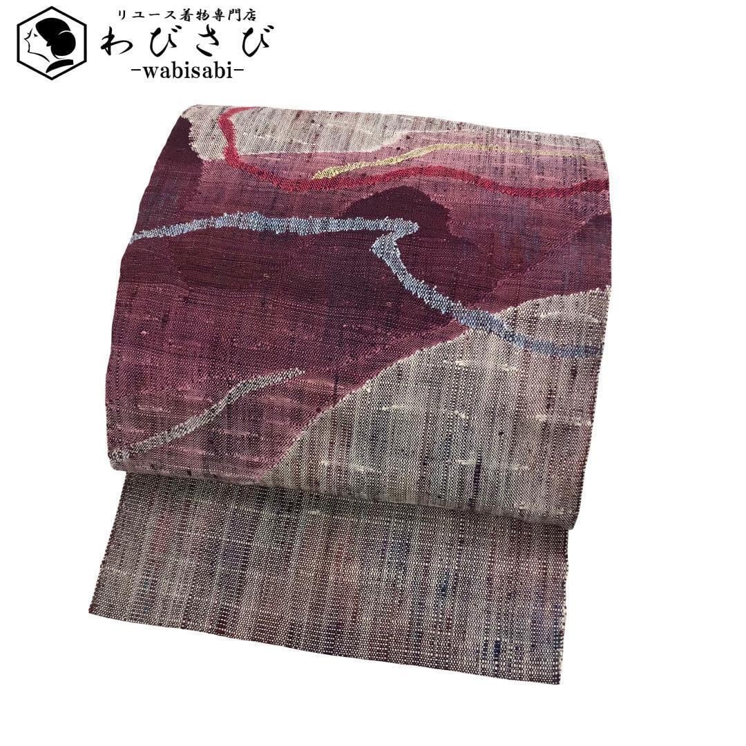 名古屋帯 真綿紬 抽象柄 O-5717 着物 きもの kimono 和服 和装 中古 リサイクル着物 【送料無料】
