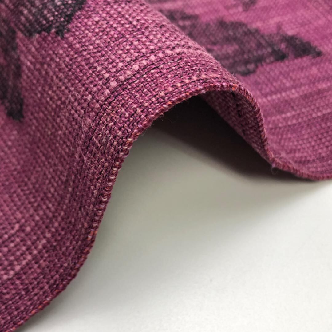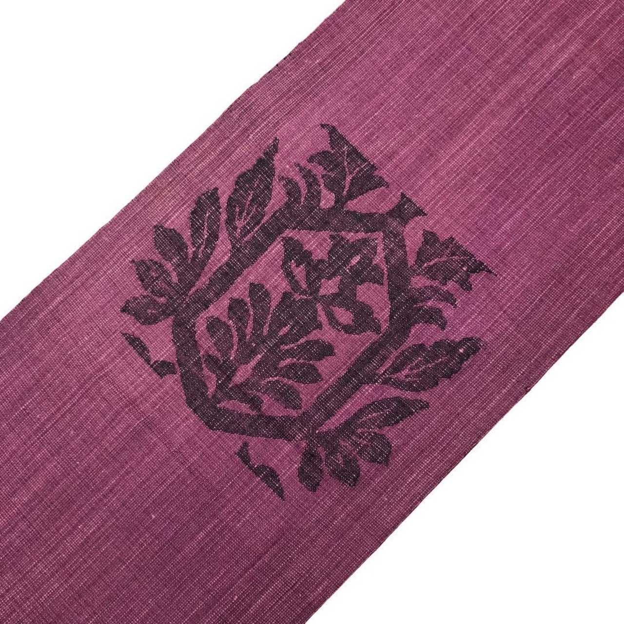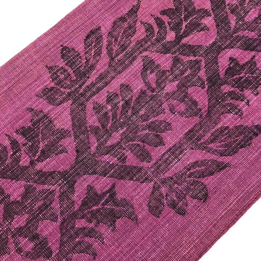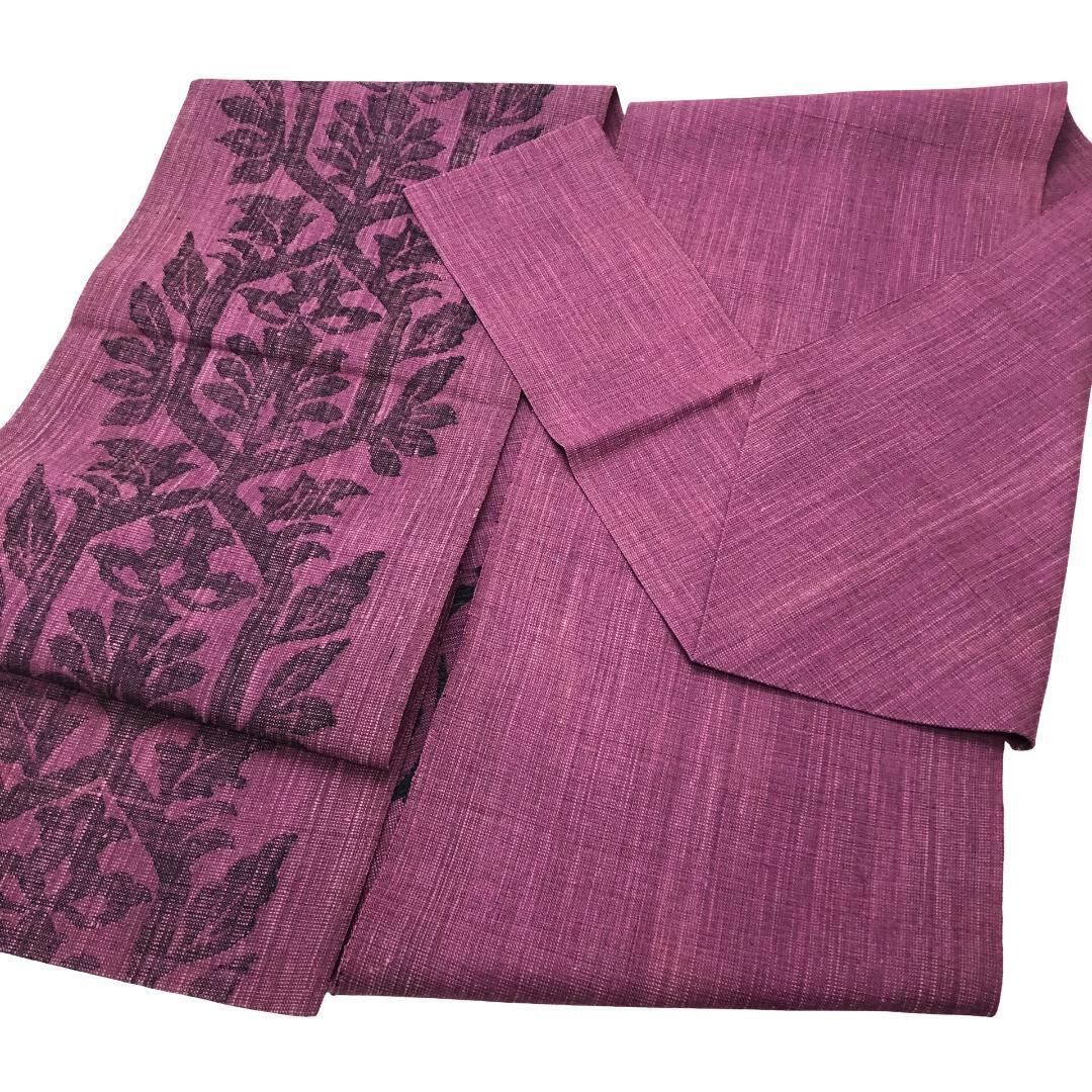 織葡萄色のお色味の紬地に抽象花模様の柄裄がデザインされた素敵なお品でございます。