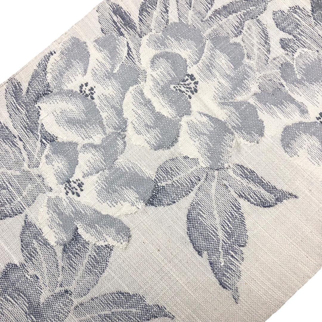 乳白色の上品なお色味に花模様がデザインされた真綿紬の素敵な柄裄のお品でございます。