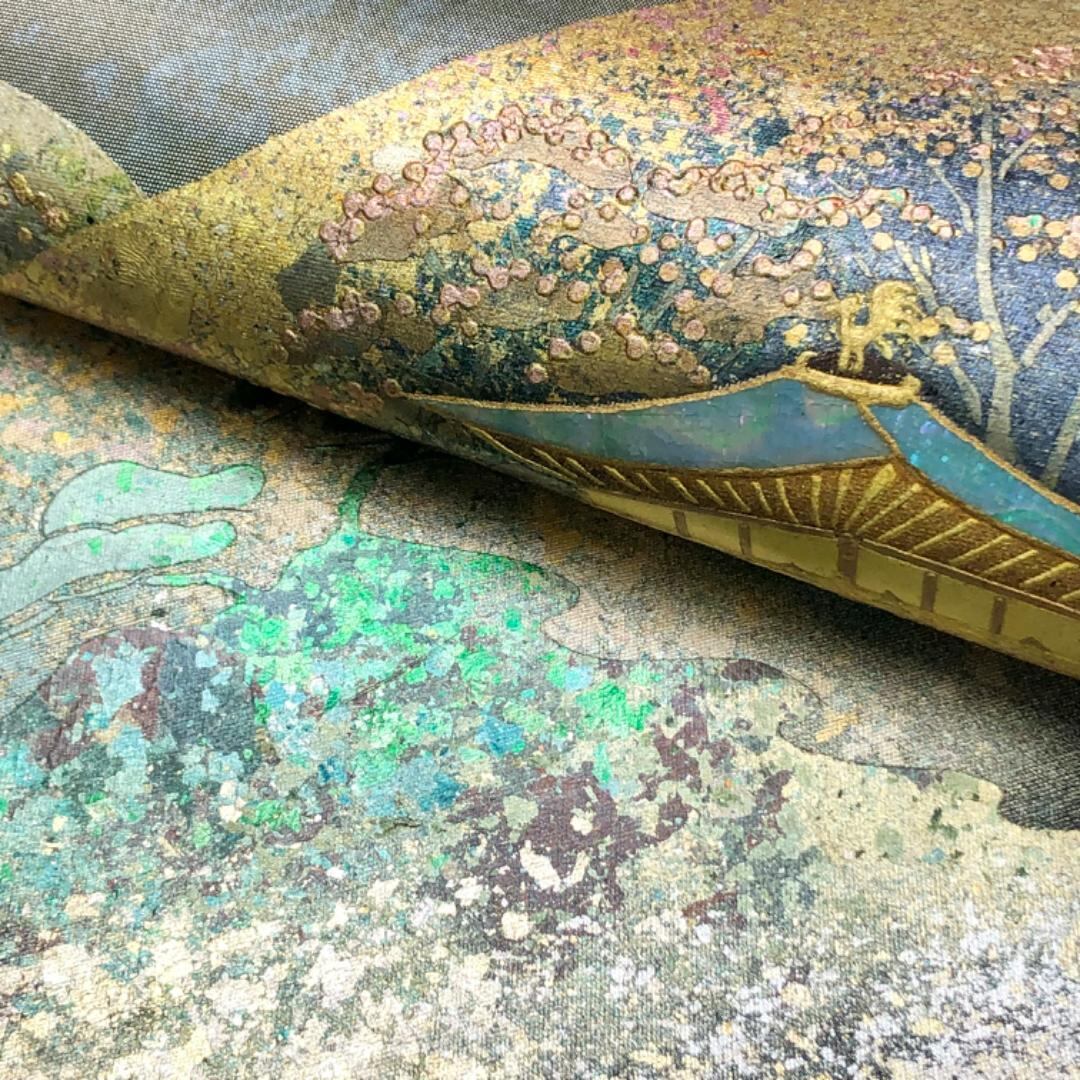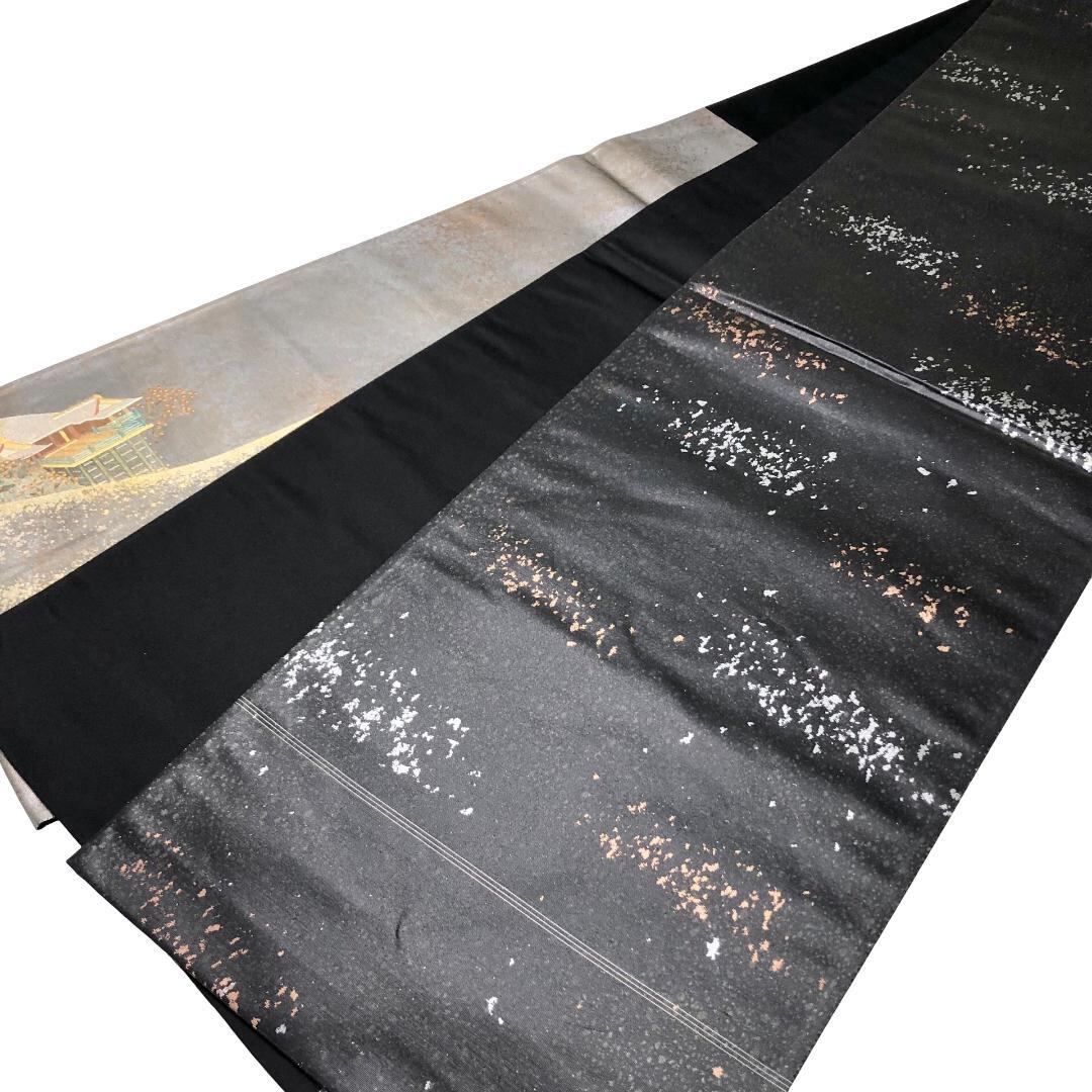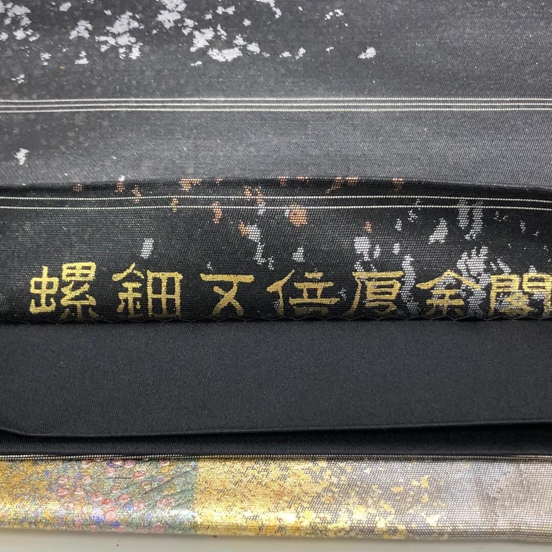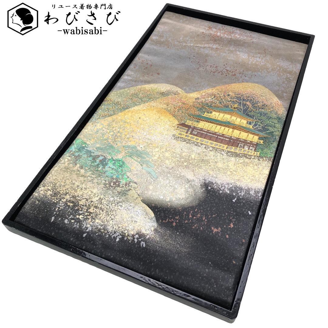 螺鈿、金銀彩が使われた煌びやかな金閣寺の京都の風景がデザインされた雰囲気の良い素敵な柄裄のお品でございます。