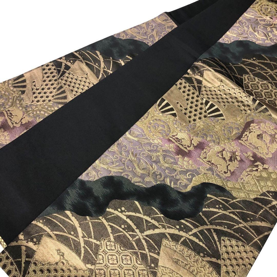 袋帯 花兎に雪芝 扇子に花菱 金糸 O-5727 着物 きもの kimono 和服 和装 中古 リサイクル着物 【送料無料】