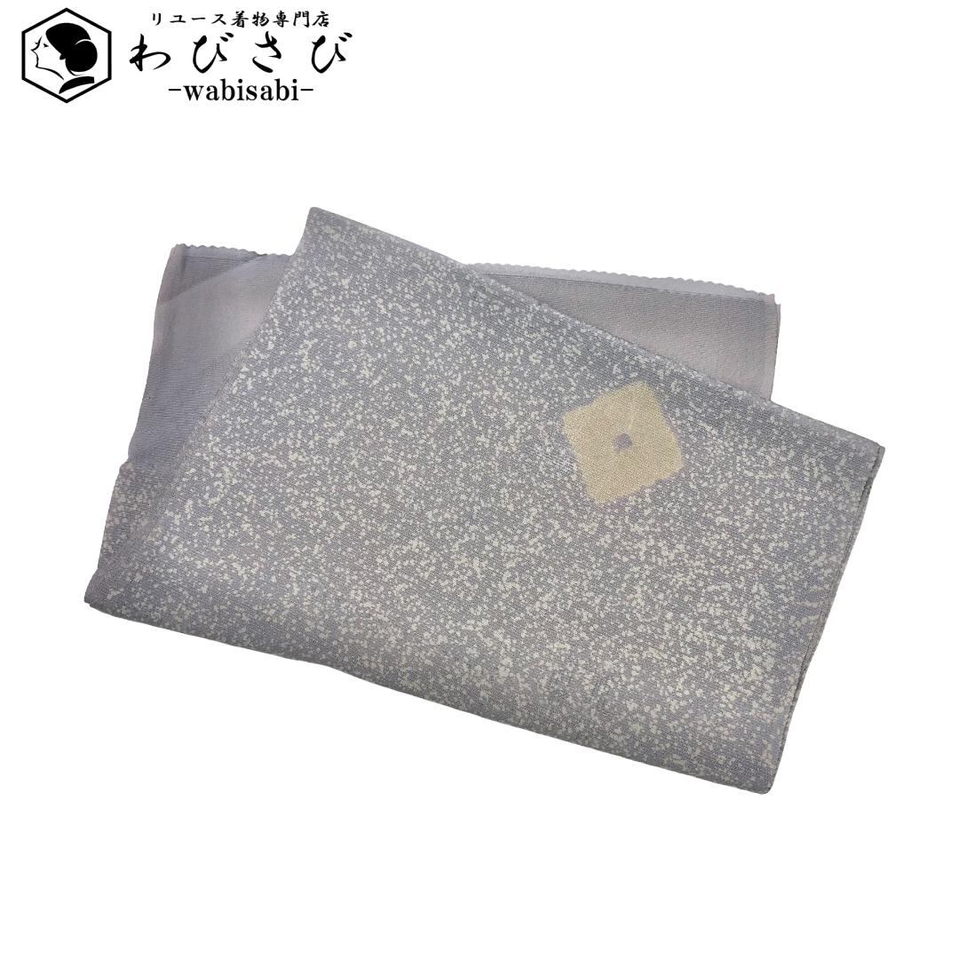 鈍紫色のお色味に叩き染、菱形の柄裄がデザインされた素敵なお品でございます。