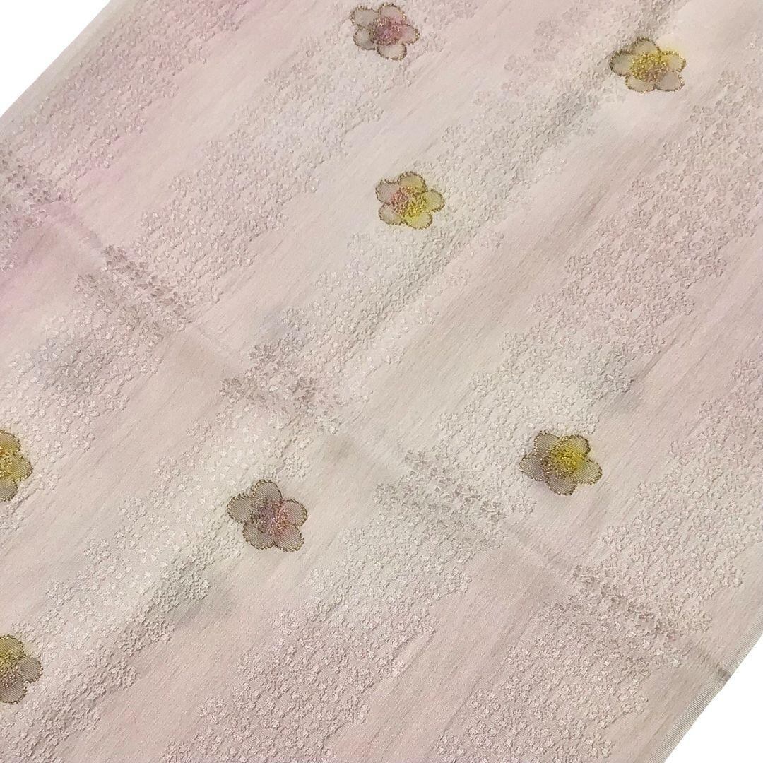 和装小物 帯揚げ 正絹 綸子 花模様 薄乙女色 金糸 C-6685 着物 きもの kimono 和服 和装 中古 リサイクル着物 【送料無料】
