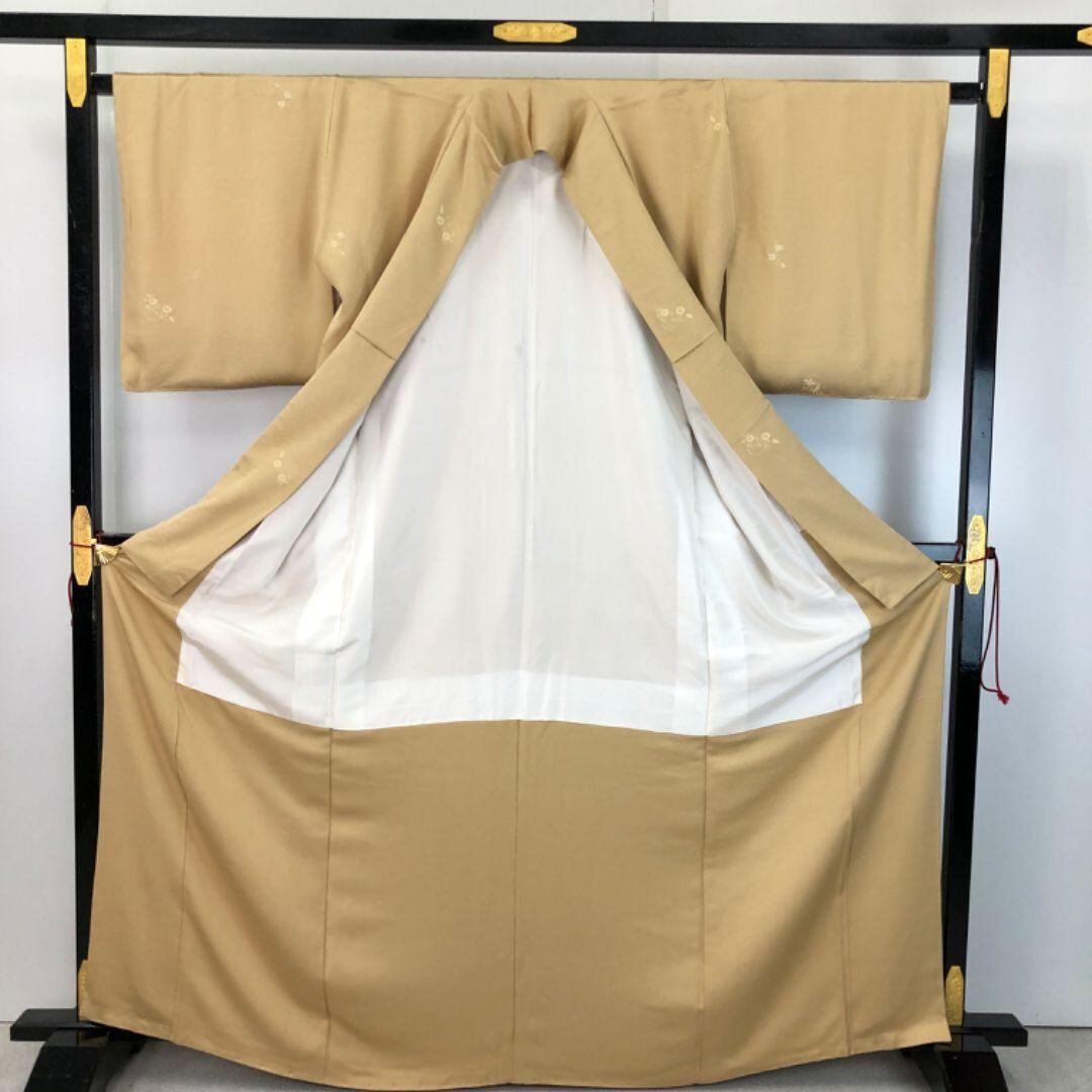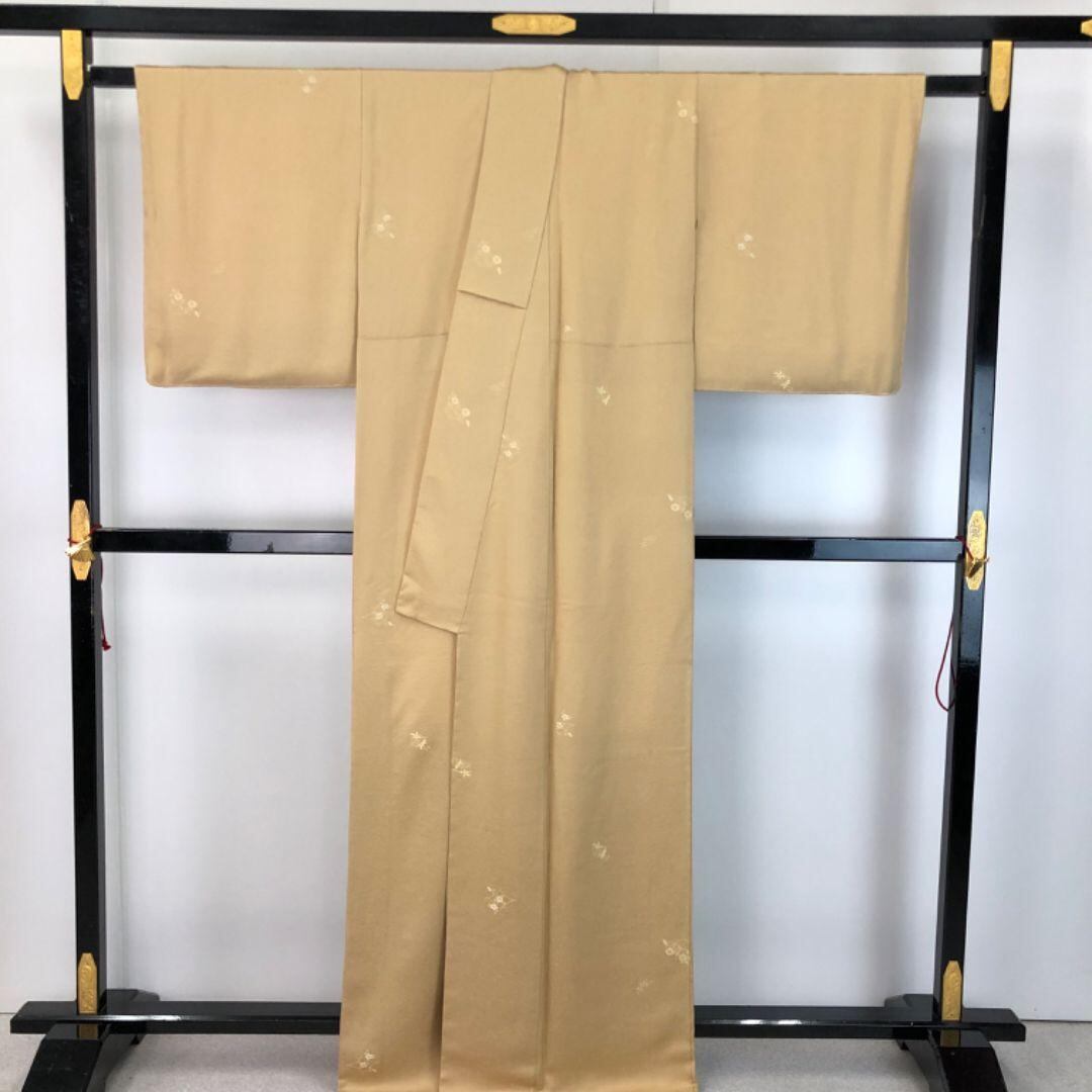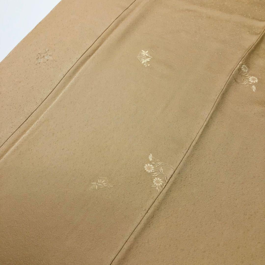色無地 柿本市郎 花模様 麦藁色 しつけ糸 トールサイズ K-5512 着物 きもの kimono 和服 和装 中古 リサイクル着物 【送料無料】