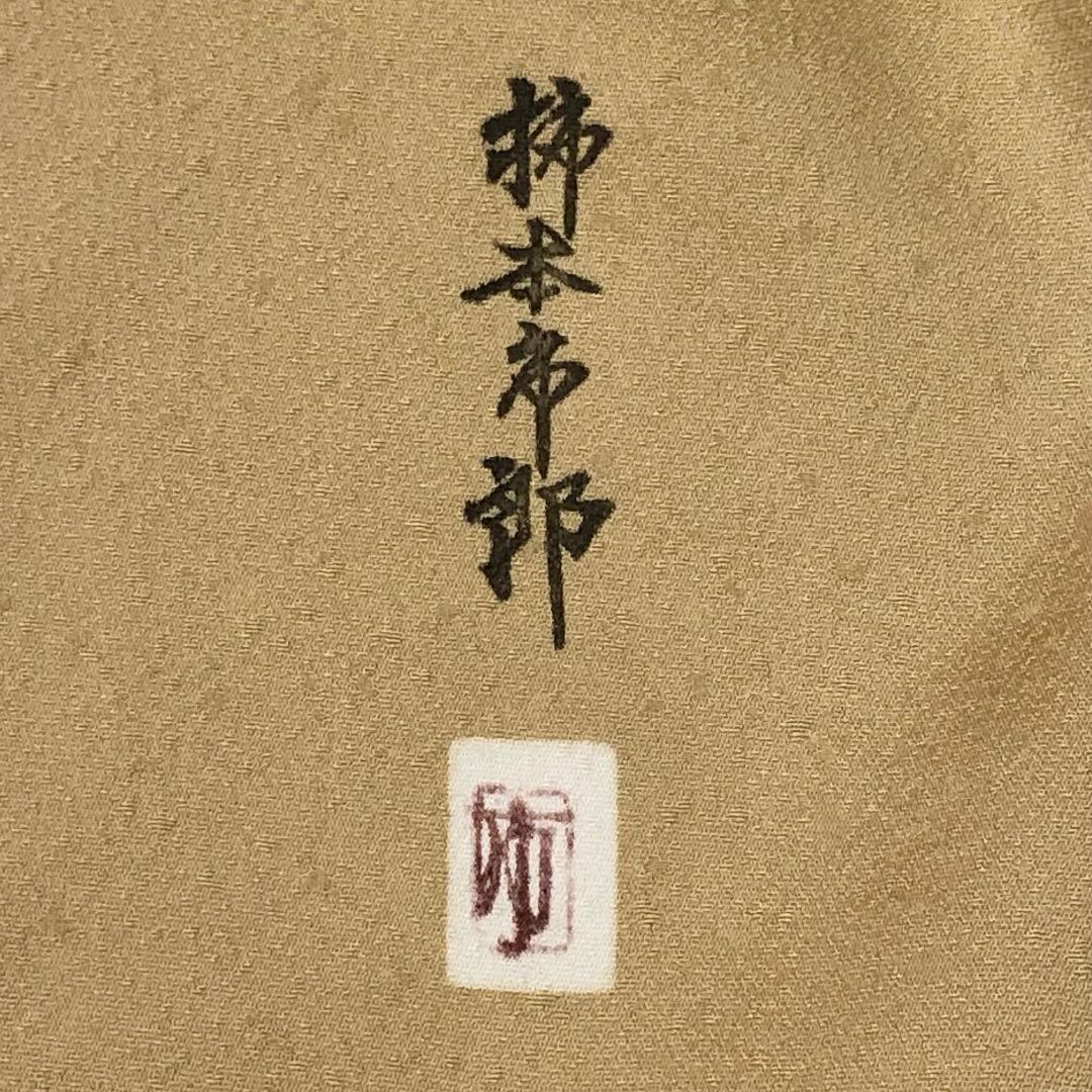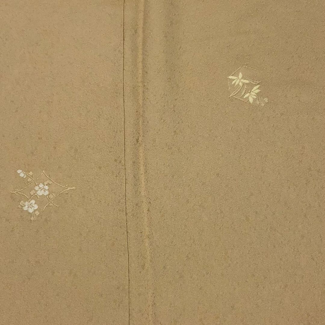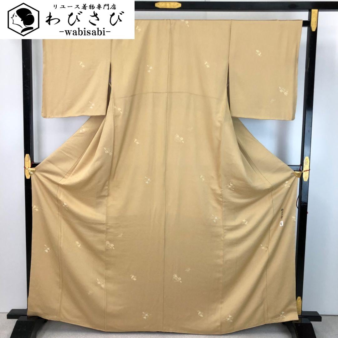 色無地 柿本市郎 花模様 麦藁色 しつけ糸 トールサイズ K-5512 着物 きもの kimono 和服 和装 中古 リサイクル着物 【送料無料】