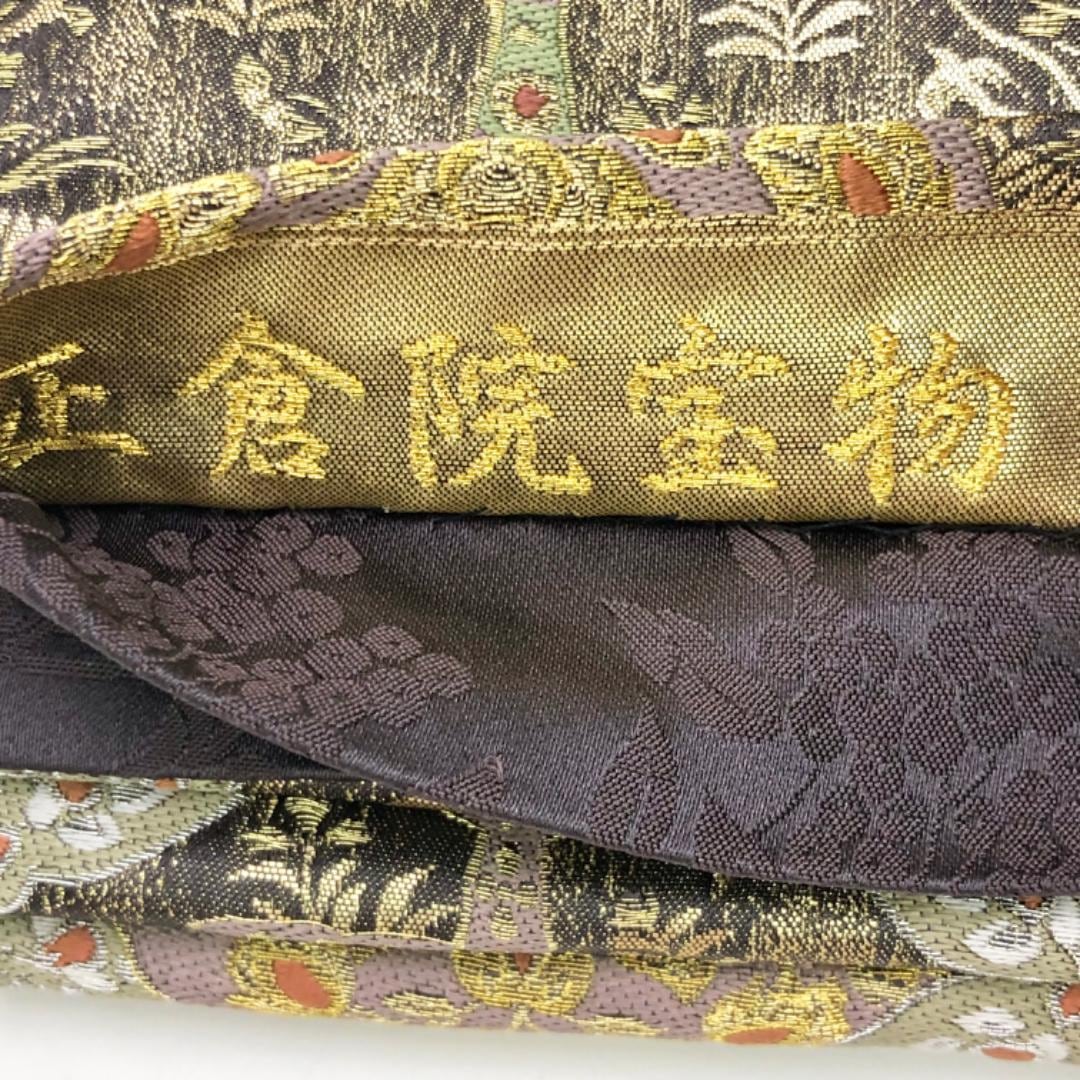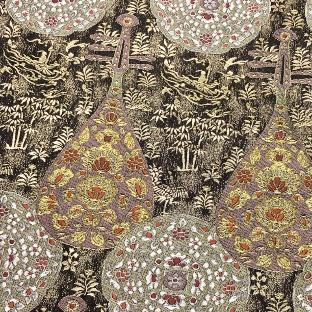 紺鼠色ベースの品のあるお色味に華柄模様に楽器柄がデザインされた上品で素敵なお品でございます。