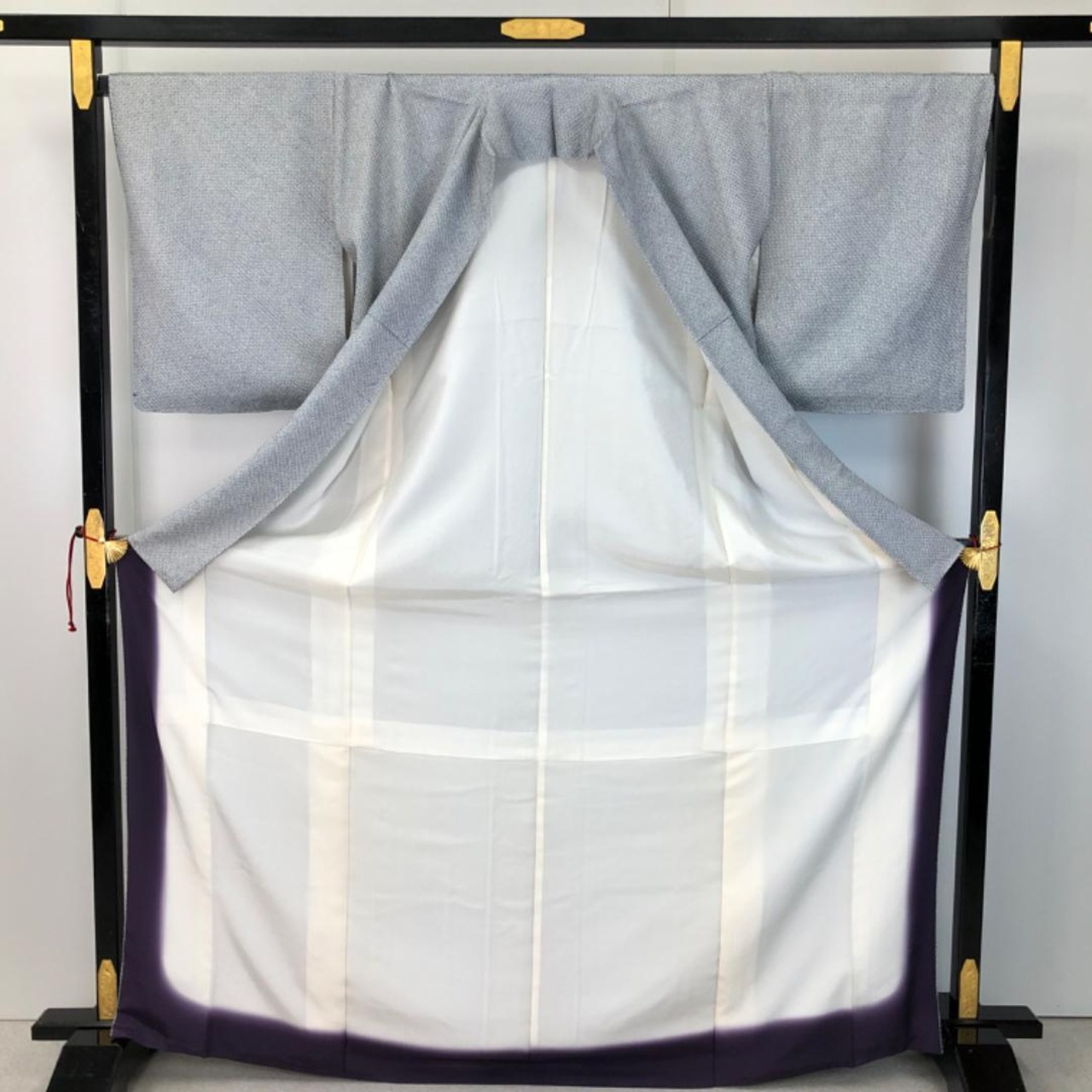 小紋 総絞り 白銅色 トールサイズ ガード加工 K-5552 着物 きもの kimono 和服 和装 中古 リサイクル着物 【送料無料】